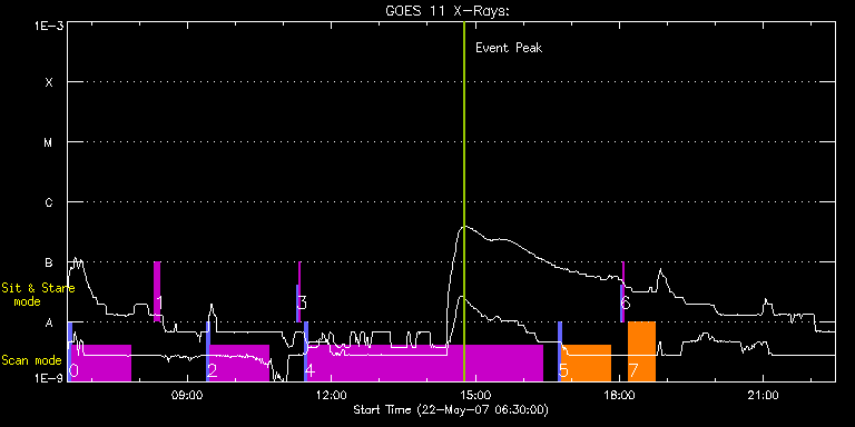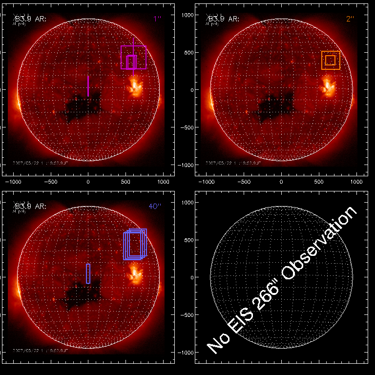 EIS Observation timeline overlay to GOES-Xray curve Code 1" 2" 40" 266" EIS Observations list for this event: STUDY ACRONYM ID DATE OBSERVED DESCRIPTION NOAA# TARGET 0 Eclipse_raster1 | 2811 | 2007/05/22 06:31:34 | Eclipse raster: takes 60percent of spe | | Active Region TIMELINE ID DATE OBSERVED FITS FILE XCEN (+W/-E) YCEN (+N/-S) DUR ----------------------------------------------------------------------------------------------------------------- 2811 | 2007/05/22 06:31:34.000 | eis_l0_20070522_063134.fits.gz | 588.96 | 410.37 | 3m33s 2811 | 2007/05/22 06:35:23.000 | eis_l0_20070522_063523.fits.gz | 565.96 | 359.20 | 1h14m8s 1 regcal018 | 2812 | 2007/05/22 08:19:12 | Flat fields, long exposures | | Engineering TIMELINE ID DATE OBSERVED FITS FILE XCEN (+W/-E) YCEN (+N/-S) DUR ----------------------------------------------------------------------------------------------------------------- 2812 | 2007/05/22 08:19:12.000 | eis_l0_20070522_081912.fits.gz | 604.86 | 434.45 | 6m48s 2 Eclipse_raster1 | 2813 | 2007/05/22 09:24:34 | Eclipse raster: takes 60percent of spe | | Active Region TIMELINE ID DATE OBSERVED FITS FILE XCEN (+W/-E) YCEN (+N/-S) DUR ----------------------------------------------------------------------------------------------------------------- 2813 | 2007/05/22 09:24:34.000 | eis_l0_20070522_092434.fits.gz | 609.96 | 419.88 | 3m33s 2813 | 2007/05/22 09:28:23.000 | eis_l0_20070522_092823.fits.gz | 586.39 | 368.59 | 1h14m7s 3 SYNOP001 | 2814 | 2007/05/22 11:16:34 | SYNOP001_40arcsec_1arcsec_30s_90s | | Quiet Sun TIMELINE ID DATE OBSERVED FITS FILE XCEN (+W/-E) YCEN (+N/-S) DUR ----------------------------------------------------------------------------------------------------------------- 2814 | 2007/05/22 11:16:34.000 | eis_l0_20070522_111634.fits.gz | 0.44 | 45.57 | 2m2s 2814 | 2007/05/22 11:18:50.000 | eis_l0_20070522_111850.fits.gz | 0.48 | 45.55 | 2m1s 4 AR_velocity_map | 2819 | 2007/05/22 11:26:34 | Detailed raster to produce active regi | | Active Region TIMELINE ID DATE OBSERVED FITS FILE XCEN (+W/-E) YCEN (+N/-S) DUR ----------------------------------------------------------------------------------------------------------------- 2819 | 2007/05/22 11:26:34.000 | eis_l0_20070522_112634.fits.gz | 635.71 | 443.10 | 3m33s 2819 | 2007/05/22 11:30:24.000 | eis_l0_20070522_113024.fits.gz | 607.17 | 429.74 | 4h54m17s 5 AR_spectral_atlas_3 | 2820 | 2007/05/22 16:43:34 | Spectral Atlas 3, with slot context ra | | Active Region TIMELINE ID DATE OBSERVED FITS FILE XCEN (+W/-E) YCEN (+N/-S) DUR ----------------------------------------------------------------------------------------------------------------- 2820 | 2007/05/22 16:43:34.000 | eis_l0_20070522_164334.fits.gz | 667.28 | 459.13 | 3m33s 2820 | 2007/05/22 16:47:38.000 | eis_l0_20070522_164738.fits.gz | 654.69 | 390.34 | 1h1m13s 6 SYNOP001 | 2815 | 2007/05/22 18:01:20 | SYNOP001_40arcsec_1arcsec_30s_90s | | Quiet Sun TIMELINE ID DATE OBSERVED FITS FILE XCEN (+W/-E) YCEN (+N/-S) DUR ----------------------------------------------------------------------------------------------------------------- 2815 | 2007/05/22 18:01:20.000 | eis_l0_20070522_180120.fits.gz | 0.27 | 45.49 | 2m1s 2815 | 2007/05/22 18:03:35.000 | eis_l0_20070522_180335.fits.gz | 0.47 | 45.60 | 2m1s 7 CAM_ARTB_RHESSI_a_1 | 2821 | 2007/05/22 18:11:27 | AR microflares and TR response - joint | | Active Region TIMELINE ID DATE OBSERVED FITS FILE XCEN (+W/-E) YCEN (+N/-S) DUR ----------------------------------------------------------------------------------------------------------------- 2821 | 2007/05/22 18:11:27.000 | eis_l0_20070522_181127.fits.gz | 661.25 | 388.54 | 33m7s : Check study information : Download file : View thumbnails For this event, also check for: