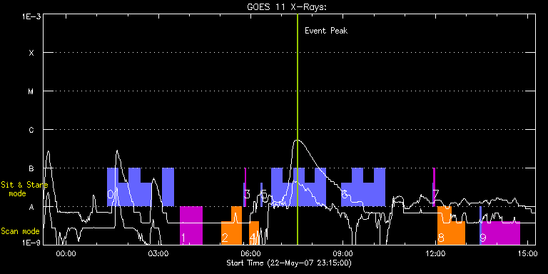 EIS Observation timeline overlay to GOES-Xray curve Code 1" 2" 40" 266" EIS Observations list for this event: STUDY ACRONYM ID DATE OBSERVED DESCRIPTION NOAA# TARGET 0 cam_artb_cds_b | 2824 | 2007/05/23 01:20:03 | Active Region Transient Brightenings ( | | Active Region TIMELINE ID DATE OBSERVED FITS FILE XCEN (+W/-E) YCEN (+N/-S) DUR ----------------------------------------------------------------------------------------------------------------- 2824 | 2007/05/23 01:20:03.000 | eis_l0_20070523_012003.fits.gz | 694.04 | 405.35 | 21m10s 2824 | 2007/05/23 01:41:16.000 | eis_l0_20070523_014116.fits.gz | 707.23 | 400.37 | 21m10s 2824 | 2007/05/23 02:02:29.000 | eis_l0_20070523_020229.fits.gz | 709.40 | 401.46 | 21m10s 2824 | 2007/05/23 02:23:43.000 | eis_l0_20070523_022343.fits.gz | 83016.04 | -6.31 | 22m54s 2824 | 2007/05/23 03:07:54.000 | eis_l0_20070523_030754.fits.gz | 716.02 | 404.58 | 21m10s 1 cam_artb_cds_c | 2825 | 2007/05/23 03:42:19 | Active_Region_Transient_Brightenings_v | | Active Region TIMELINE ID DATE OBSERVED FITS FILE XCEN (+W/-E) YCEN (+N/-S) DUR ----------------------------------------------------------------------------------------------------------------- 2825 | 2007/05/23 03:42:19.000 | eis_l0_20070523_034219.fits.gz | 721.37 | 407.18 | 43m9s 2 cam_artb_cds_a | 2826 | 2007/05/23 05:03:04 | Active Region Transient Brightenings | | Active Region TIMELINE ID DATE OBSERVED FITS FILE XCEN (+W/-E) YCEN (+N/-S) DUR ----------------------------------------------------------------------------------------------------------------- 2826 | 2007/05/23 05:03:04.000 | eis_l0_20070523_050304.fits.gz | 728.62 | 410.63 | 19m17s 2826 | 2007/05/23 05:22:24.000 | eis_l0_20070523_052224.fits.gz | 730.63 | 411.51 | 19m17s 3 SYNOP001 | 2818 | 2007/05/23 05:46:20 | SYNOP001_40arcsec_1arcsec_30s_90s | | Quiet Sun TIMELINE ID DATE OBSERVED FITS FILE XCEN (+W/-E) YCEN (+N/-S) DUR ----------------------------------------------------------------------------------------------------------------- 2818 | 2007/05/23 05:46:20.000 | eis_l0_20070523_054620.fits.gz | 0.38 | 45.47 | 2m1s 2818 | 2007/05/23 05:48:35.000 | eis_l0_20070523_054835.fits.gz | 0.41 | 45.55 | 2m2s 4 cam_artb_cds_a | 2829 | 2007/05/23 05:56:27 | Active Region Transient Brightenings | | Active Region TIMELINE ID DATE OBSERVED FITS FILE XCEN (+W/-E) YCEN (+N/-S) DUR ----------------------------------------------------------------------------------------------------------------- 2829 | 2007/05/23 05:56:27.000 | eis_l0_20070523_055627.fits.gz | 733.97 | 413.12 | 19m17s 5 cam_artb_cds_b | 2830 | 2007/05/23 06:19:19 | Active Region Transient Brightenings ( | | Active Region TIMELINE ID DATE OBSERVED FITS FILE XCEN (+W/-E) YCEN (+N/-S) DUR ----------------------------------------------------------------------------------------------------------------- 2830 | 2007/05/23 06:19:19.000 | eis_l0_20070523_061919.fits.gz | 734.10 | -7.29 | 3m10s 2830 | 2007/05/23 06:40:33.000 | eis_l0_20070523_064033.fits.gz | 736.91 | 414.66 | 21m10s 2830 | 2007/05/23 07:01:46.000 | eis_l0_20070523_070146.fits.gz | 739.08 | 415.53 | 21m10s 2830 | 2007/05/23 07:22:59.000 | eis_l0_20070523_072259.fits.gz | 741.13 | 416.48 | 21m10s 2830 | 2007/05/23 07:44:13.000 | eis_l0_20070523_074413.fits.gz | 743.10 | 417.46 | 21m10s 2830 | 2007/05/23 08:05:26.000 | eis_l0_20070523_080526.fits.gz | 745.11 | 418.50 | 21m10s 6 cam_artb_cds_b | 2831 | 2007/05/23 08:56:12 | Active Region Transient Brightenings ( | | Active Region TIMELINE ID DATE OBSERVED FITS FILE XCEN (+W/-E) YCEN (+N/-S) DUR ----------------------------------------------------------------------------------------------------------------- 2831 | 2007/05/23 08:56:12.000 | eis_l0_20070523_085612.fits.gz | 749.75 | 420.63 | 21m10s 2831 | 2007/05/23 09:17:25.000 | eis_l0_20070523_091725.fits.gz | 751.68 | 421.48 | 21m10s 2831 | 2007/05/23 09:38:38.000 | eis_l0_20070523_093838.fits.gz | 753.63 | 422.33 | 21m10s 2831 | 2007/05/23 09:59:52.000 | eis_l0_20070523_095952.fits.gz | 756.35 | 423.75 | 21m10s 7 SYNOP001 | 2832 | 2007/05/23 11:54:13 | SYNOP001_40arcsec_1arcsec_30s_90s | | Quiet Sun TIMELINE ID DATE OBSERVED FITS FILE XCEN (+W/-E) YCEN (+N/-S) DUR ----------------------------------------------------------------------------------------------------------------- 2832 | 2007/05/23 11:54:13.000 | eis_l0_20070523_115413.fits.gz | 0.34 | 45.48 | 2m1s 2832 | 2007/05/23 11:56:28.000 | eis_l0_20070523_115628.fits.gz | 0.44 | 45.53 | 2m2s 8 PRY_loop_footpoints | 2836 | 2007/05/23 12:04:27 | Cool lines for study of loop footpoint | | Active Region TIMELINE ID DATE OBSERVED FITS FILE XCEN (+W/-E) YCEN (+N/-S) DUR ----------------------------------------------------------------------------------------------------------------- 2836 | 2007/05/23 12:04:27.000 | eis_l0_20070523_120427.fits.gz | 717.39 | 476.97 | 26m17s 2836 | 2007/05/23 12:30:48.000 | eis_l0_20070523_123048.fits.gz | 719.78 | 478.07 | 26m18s 9 Eclipse_raster1 | 2835 | 2007/05/23 13:26:24 | Eclipse raster: takes 60percent of spe | | Active Region TIMELINE ID DATE OBSERVED FITS FILE XCEN (+W/-E) YCEN (+N/-S) DUR ----------------------------------------------------------------------------------------------------------------- 2835 | 2007/05/23 13:26:24.000 | eis_l0_20070523_132624.fits.gz | 769.34 | 501.77 | 3m33s 2835 | 2007/05/23 13:30:13.000 | eis_l0_20070523_133013.fits.gz | 726.59 | 479.87 | 1h14m8s : Check study information : Download file : View thumbnails For this event, also check for: