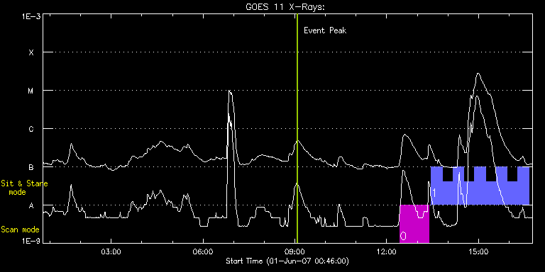 EIS Observation timeline overlay to GOES-Xray curve Code 1" 2" 40" 266" EIS Observations list for this event: STUDY ACRONYM ID DATE OBSERVED DESCRIPTION NOAA# TARGET 0 HPW008_FULLCCD_RAST | 2989 | 2007/06/01 12:25:51 | HPW008_FULLCCD_RAST_128x128_25s_SLIT1 | | Active Region TIMELINE ID DATE OBSERVED FITS FILE XCEN (+W/-E) YCEN (+N/-S) DUR ----------------------------------------------------------------------------------------------------------------- 2989 | 2007/06/01 12:25:51.000 | eis_l0_20070601_122551.fits.gz | -18.82 | -70.48 | 56m40s 1 cam_artb_cds_b | 2990 | 2007/06/01 13:27:34 | Active Region Transient Brightenings ( | | Active Region TIMELINE ID DATE OBSERVED FITS FILE XCEN (+W/-E) YCEN (+N/-S) DUR ----------------------------------------------------------------------------------------------------------------- 2990 | 2007/06/01 13:27:34.000 | eis_l0_20070601_132734.fits.gz | -13.01 | -49.74 | 21m10s 2990 | 2007/06/01 13:48:48.000 | eis_l0_20070601_134848.fits.gz | -9.81 | -48.07 | 21m10s 2990 | 2007/06/01 14:10:01.000 | eis_l0_20070601_141001.fits.gz | -6.66 | -46.48 | 21m10s 2990 | 2007/06/01 14:31:14.000 | eis_l0_20070601_143114.fits.gz | -3.53 | -44.90 | 21m10s 2990 | 2007/06/01 14:52:28.000 | eis_l0_20070601_145228.fits.gz | -0.39 | -43.32 | 21m10s 2990 | 2007/06/01 15:13:41.000 | eis_l0_20070601_151341.fits.gz | 2.72 | -41.79 | 21m10s 2990 | 2007/06/01 15:34:55.000 | eis_l0_20070601_153455.fits.gz | 5.92 | -40.18 | 21m9s 2990 | 2007/06/01 15:56:08.000 | eis_l0_20070601_155608.fits.gz | 9.12 | -38.65 | 21m10s 2990 | 2007/06/01 16:17:21.000 | eis_l0_20070601_161721.fits.gz | 12.26 | -37.09 | 21m10s : Check study information : Download file : View thumbnails For this event, also check for: