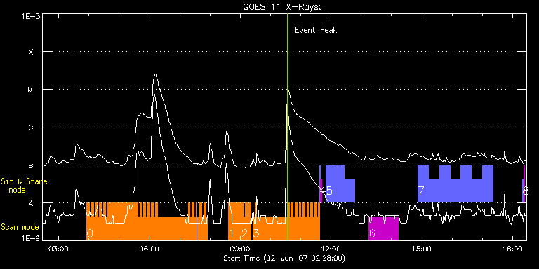 EIS Observation timeline overlay to GOES-Xray curve Code 1" 2" 40" 266" EIS Observations list for this event: STUDY ACRONYM ID DATE OBSERVED DESCRIPTION NOAA# TARGET 0 CAM_ARTB_RHESSI_b_1 | 2997 | 2007/06/02 03:56:13 | AR microflares and TR response - joint | 958 | Active Region TIMELINE ID DATE OBSERVED FITS FILE XCEN (+W/-E) YCEN (+N/-S) DUR ----------------------------------------------------------------------------------------------------------------- 2997 | 2007/06/02 03:56:13.000 | eis_l0_20070602_035613.fits.gz | -383.14 | -272.90 | 5m32s 2997 | 2007/06/02 04:01:48.000 | eis_l0_20070602_040148.fits.gz | -382.46 | -272.61 | 3m50s 2997 | 2007/06/02 04:05:41.000 | eis_l0_20070602_040541.fits.gz | -381.90 | -272.28 | 3m50s 2997 | 2007/06/02 04:09:33.000 | eis_l0_20070602_040933.fits.gz | -381.40 | -272.03 | 3m50s 2997 | 2007/06/02 04:13:26.000 | eis_l0_20070602_041326.fits.gz | -380.87 | -271.87 | 3m50s 2997 | 2007/06/02 04:17:18.000 | eis_l0_20070602_041718.fits.gz | -380.34 | -271.50 | 3m50s 2997 | 2007/06/02 04:21:11.000 | eis_l0_20070602_042111.fits.gz | -379.88 | -271.27 | 3m50s 2997 | 2007/06/02 04:25:03.000 | eis_l0_20070602_042503.fits.gz | -379.33 | -270.98 | 3m50s 2997 | 2007/06/02 04:28:56.000 | eis_l0_20070602_042856.fits.gz | -378.83 | -270.75 | 3m50s 2997 | 2007/06/02 04:32:49.000 | eis_l0_20070602_043249.fits.gz | -378.26 | -270.46 | 3m50s 2997 | 2007/06/02 04:36:42.000 | eis_l0_20070602_043642.fits.gz | -374.82 | -268.74 | 1h0m22s 2997 | 2007/06/02 05:37:06.000 | eis_l0_20070602_053706.fits.gz | -369.64 | -266.11 | 3m50s 2997 | 2007/06/02 05:40:59.000 | eis_l0_20070602_054059.fits.gz | -369.01 | -265.88 | 3m50s 2997 | 2007/06/02 05:44:52.000 | eis_l0_20070602_054452.fits.gz | -368.47 | -265.63 | 3m50s 2997 | 2007/06/02 05:48:44.000 | eis_l0_20070602_054844.fits.gz | -367.98 | -265.36 | 3m50s 2997 | 2007/06/02 05:52:37.000 | eis_l0_20070602_055237.fits.gz | -367.50 | -265.14 | 3m50s 2997 | 2007/06/02 05:56:30.000 | eis_l0_20070602_055630.fits.gz | -342.59 | -252.62 | 3m50s 2997 | 2007/06/02 06:00:22.000 | eis_l0_20070602_060022.fits.gz | -40.24 | 1.28 | 3m50s 2997 | 2007/06/02 06:04:15.000 | eis_l0_20070602_060415.fits.gz | 1.69 | 27.26 | 3m50s 2997 | 2007/06/02 06:08:08.000 | eis_l0_20070602_060808.fits.gz | -181.78 | -64.54 | 3m50s 2997 | 2007/06/02 06:12:00.000 | eis_l0_20070602_061200.fits.gz | -364.91 | -263.79 | 3m51s 2997 | 2007/06/02 06:15:53.000 | eis_l0_20070602_061553.fits.gz | -360.54 | -261.60 | 1h0m49s 2997 | 2007/06/02 07:16:45.000 | eis_l0_20070602_071645.fits.gz | -356.08 | -259.48 | 3m49s 2997 | 2007/06/02 07:20:37.000 | eis_l0_20070602_072037.fits.gz | -355.53 | -259.15 | 3m50s 2997 | 2007/06/02 07:24:30.000 | eis_l0_20070602_072430.fits.gz | -354.93 | -258.87 | 3m50s 2997 | 2007/06/02 07:28:23.000 | eis_l0_20070602_072823.fits.gz | -354.50 | -258.66 | 3m50s 2997 | 2007/06/02 07:32:15.000 | eis_l0_20070602_073215.fits.gz | -335.28 | -249.00 | 10s 2997 | 2007/06/02 07:36:08.000 | eis_l0_20070602_073608.fits.gz | -353.35 | -258.08 | 3m50s 2997 | 2007/06/02 07:40:00.000 | eis_l0_20070602_074000.fits.gz | -352.88 | -257.86 | 3m51s 2997 | 2007/06/02 07:43:53.000 | eis_l0_20070602_074353.fits.gz | -352.45 | -257.59 | 3m51s 2997 | 2007/06/02 07:47:46.000 | eis_l0_20070602_074746.fits.gz | -351.83 | -257.25 | 3m50s 2997 | 2007/06/02 07:51:39.000 | eis_l0_20070602_075139.fits.gz | -350.30 | -256.54 | 3m38s 1 SK_AR2_8x200p | 2985 | 2007/06/02 08:37:13 | SK_AR2_8x200p | 958 | Active Region TIMELINE ID DATE OBSERVED FITS FILE XCEN (+W/-E) YCEN (+N/-S) DUR ----------------------------------------------------------------------------------------------------------------- 2985 | 2007/06/02 08:37:13.000 | eis_l0_20070602_083713.fits.gz | -344.23 | -248.58 | 16m28s 2985 | 2007/06/02 08:53:44.000 | eis_l0_20070602_085344.fits.gz | -343.06 | -247.95 | 11s 2985 | 2007/06/02 08:53:57.000 | eis_l0_20070602_085357.fits.gz | -343.05 | -247.93 | 11s 2985 | 2007/06/02 08:54:11.000 | eis_l0_20070602_085411.fits.gz | -343.03 | -247.92 | 11s 2985 | 2007/06/02 08:54:25.000 | eis_l0_20070602_085425.fits.gz | -343.02 | -247.84 | 10s 2985 | 2007/06/02 08:54:38.000 | eis_l0_20070602_085438.fits.gz | -342.95 | -247.90 | 11s 2985 | 2007/06/02 08:54:51.000 | eis_l0_20070602_085451.fits.gz | -342.87 | -247.88 | 11s 2985 | 2007/06/02 08:55:05.000 | eis_l0_20070602_085505.fits.gz | -342.86 | -247.93 | 11s 2985 | 2007/06/02 08:55:19.000 | eis_l0_20070602_085519.fits.gz | -342.85 | -247.82 | 10s 2985 | 2007/06/02 08:55:32.000 | eis_l0_20070602_085532.fits.gz | -342.85 | -247.84 | 11s 2985 | 2007/06/02 08:55:46.000 | eis_l0_20070602_085546.fits.gz | -342.77 | -247.81 | 11s 2985 | 2007/06/02 08:55:59.000 | eis_l0_20070602_085559.fits.gz | -342.72 | -247.85 | 11s 2985 | 2007/06/02 08:56:13.000 | eis_l0_20070602_085613.fits.gz | -342.70 | -247.80 | 11s 2985 | 2007/06/02 08:56:27.000 | eis_l0_20070602_085627.fits.gz | -342.66 | -247.78 | 11s 2985 | 2007/06/02 08:56:40.000 | eis_l0_20070602_085640.fits.gz | -342.67 | -247.67 | 11s 2985 | 2007/06/02 08:56:54.000 | eis_l0_20070602_085654.fits.gz | -342.63 | -247.72 | 11s 2985 | 2007/06/02 08:57:08.000 | eis_l0_20070602_085708.fits.gz | -342.54 | -247.72 | 10s 2985 | 2007/06/02 08:57:21.000 | eis_l0_20070602_085721.fits.gz | -342.57 | -247.74 | 11s 2985 | 2007/06/02 08:57:34.000 | eis_l0_20070602_085734.fits.gz | -342.46 | -247.81 | 11s 2985 | 2007/06/02 08:57:48.000 | eis_l0_20070602_085748.fits.gz | -342.49 | -247.67 | 11s 2985 | 2007/06/02 08:58:02.000 | eis_l0_20070602_085802.fits.gz | -342.45 | -247.64 | 10s 2985 | 2007/06/02 08:58:15.000 | eis_l0_20070602_085815.fits.gz | -342.39 | -247.60 | 11s 2985 | 2007/06/02 08:58:29.000 | eis_l0_20070602_085829.fits.gz | -342.42 | -247.54 | 11s 2985 | 2007/06/02 08:58:42.000 | eis_l0_20070602_085842.fits.gz | -342.35 | -247.60 | 11s 2985 | 2007/06/02 08:58:56.000 | eis_l0_20070602_085856.fits.gz | -342.40 | -247.63 | 11s 2985 | 2007/06/02 08:59:09.000 | eis_l0_20070602_085909.fits.gz | -342.32 | -247.57 | 11