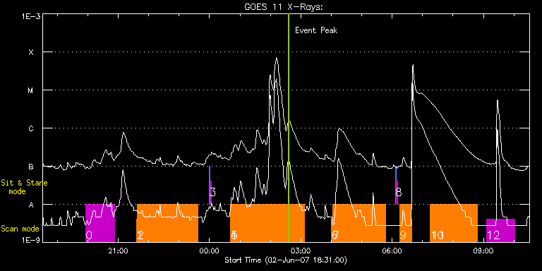 EIS Observation timeline overlay to GOES-Xray curve Code 1" 2" 40" 266" EIS Observations list for this event: STUDY ACRONYM ID DATE OBSERVED DESCRIPTION NOAA# TARGET 0 HPW008_FULLCCD_RAST | 3010 | 2007/06/02 19:56:12 | HPW008_FULLCCD_RAST_128x128_25s_SLIT1 | | Active Region TIMELINE ID DATE OBSERVED FITS FILE XCEN (+W/-E) YCEN (+N/-S) DUR ----------------------------------------------------------------------------------------------------------------- 3010 | 2007/06/02 19:56:12.000 | eis_l0_20070602_195612.fits.gz | -851.43 | -477.58 | 56m40s 1 SK_AR2_50x240p | 3011 | 2007/06/02 21:35:27 | SK_AR2_50x240p | | Active Region TIMELINE ID DATE OBSERVED FITS FILE XCEN (+W/-E) YCEN (+N/-S) DUR ----------------------------------------------------------------------------------------------------------------- 3011 | 2007/06/02 21:35:27.000 | eis_l0_20070602_213527.fits.gz | -579.88 | -329.18 | 1m28s 2 SK_AR2_8x200p | 3012 | 2007/06/02 21:37:42 | SK_AR2_8x200p | | Active Region TIMELINE ID DATE OBSERVED FITS FILE XCEN (+W/-E) YCEN (+N/-S) DUR ----------------------------------------------------------------------------------------------------------------- 3012 | 2007/06/02 21:37:42.000 | eis_l0_20070602_213742.fits.gz | -579.64 | -339.05 | 11s 3012 | 2007/06/02 21:37:56.000 | eis_l0_20070602_213756.fits.gz | -579.68 | -339.13 | 10s 3012 | 2007/06/02 21:38:09.000 | eis_l0_20070602_213809.fits.gz | -579.61 | -339.10 | 11s 3012 | 2007/06/02 21:38:23.000 | eis_l0_20070602_213823.fits.gz | -579.56 | -339.03 | 11s 3012 | 2007/06/02 21:38:36.000 | eis_l0_20070602_213836.fits.gz | -579.54 | -339.06 | 11s 3012 | 2007/06/02 21:38:50.000 | eis_l0_20070602_213850.fits.gz | -579.52 | -339.12 | 11s 3012 | 2007/06/02 21:39:04.000 | eis_l0_20070602_213904.fits.gz | -579.55 | -339.11 | 11s 3012 | 2007/06/02 21:39:17.000 | eis_l0_20070602_213917.fits.gz | -579.46 | -339.02 | 11s 3012 | 2007/06/02 21:39:31.000 | eis_l0_20070602_213931.fits.gz | -579.45 | -339.02 | 11s 3012 | 2007/06/02 21:39:45.000 | eis_l0_20070602_213945.fits.gz | -579.41 | -339.00 | 11s 3012 | 2007/06/02 21:39:58.000 | eis_l0_20070602_213958.fits.gz | -579.41 | -339.00 | 11s 3012 | 2007/06/02 21:40:12.000 | eis_l0_20070602_214012.fits.gz | -579.40 | -339.02 | 11s 3012 | 2007/06/02 21:40:26.000 | eis_l0_20070602_214026.fits.gz | -579.33 | -339.00 | 10s 3012 | 2007/06/02 21:40:39.000 | eis_l0_20070602_214039.fits.gz | -579.33 | -339.00 | 11s 3012 | 2007/06/02 21:40:53.000 | eis_l0_20070602_214053.fits.gz | -579.26 | -338.97 | 10s 3012 | 2007/06/02 21:41:06.000 | eis_l0_20070602_214106.fits.gz | -579.39 | -338.99 | 11s 3012 | 2007/06/02 21:41:20.000 | eis_l0_20070602_214120.fits.gz | -579.25 | -338.94 | 10s 3012 | 2007/06/02 21:41:33.000 | eis_l0_20070602_214133.fits.gz | -579.24 | -338.92 | 11s 3012 | 2007/06/02 21:41:47.000 | eis_l0_20070602_214147.fits.gz | -579.24 | -338.96 | 11s 3012 | 2007/06/02 21:42:00.000 | eis_l0_20070602_214200.fits.gz | -579.19 | -338.84 | 11s 3012 | 2007/06/02 21:42:14.000 | eis_l0_20070602_214214.fits.gz | -579.19 | -338.91 | 11s 3012 | 2007/06/02 21:42:28.000 | eis_l0_20070602_214228.fits.gz | -579.11 | -338.88 | 11s 3012 | 2007/06/02 21:42:41.000 | eis_l0_20070602_214241.fits.gz | -579.09 | -338.88 | 11s 3012 | 2007/06/02 21:42:55.000 | eis_l0_20070602_214255.fits.gz | -579.12 | -338.82 | 11s 3012 | 2007/06/02 21:43:09.000 | eis_l0_20070602_214309.fits.gz | -579.01 | -338.85 | 10s 3012 | 2007/06/02 21:43:22.000 | eis_l0_20070602_214322.fits.gz | -579.00 | -338.78 | 11s 3012 | 2007/06/02 21:43:36.000 | eis_l0_20070602_214336.fits.gz | -579.02 | -338.81 | 10s 3012 | 2007/06/02 21:43:49.000 | eis_l0_20070602_214349.fits.gz | -578.93 | -338.76 | 11s 3012 | 2007/06/02 21:44:03.000 | eis_l0_20070602_214403.fits.gz | -578.94 | -338.76 | 11s 3012 | 2007/06/02 21:44:16.000 | eis_l0_20070602_214416.fits.gz | -578.89 | -338.80 | 11s 3012 | 2007/06/02 21:44:30.000 | eis_l0_20070602_214430.fits.gz | -578.91 | -338.75 | 11s 3012 | 2007/06/02 21:44:43.000 | eis_l0_20070602_214443.fits.gz | -578.87 | -338.80 | 11s 3012 | 2007/06/02 21:44:57.000 | eis_l0_20070602_214457.fits.gz | -578.85 | -338.72 | 11s 3012 | 2007/06/02 21:45:10.000 | eis_l0_20070602_214510.fits.gz | -578.88 | -338.73 | 11s 3012 | 2007/06/02 21:45:24.000 | eis_l0_20070602_214524.fits.gz | -578.80 | -338.71 | 11s 3012 | 2007/06/02 21:45:37.000 | eis_l0_20070602_214537.fits.gz | -578.78 | -338.66 | 11s 3012 | 2007/06/02 21:45:51.000 | eis_l0_20070602_214551.fits.gz | -578.69 | -338.68 | 11s 3012 | 2007/06/02 21:46:05.000 | eis_l0_20070602_214605.fits.gz | -578.76 | -338.67 | 11s 3012 | 2007/06/02 21:46:18.000 | eis_l0_20070602_214618.fits.gz | -578.71 | -338.65 | 11s 3012 | 2007/06/02 21:46:32.000 | eis_l0_20070602_214632.fits.gz | -578.69 | -338.64 | 11s 3012 | 2007/06/02 21:46:46.000 | eis_l0_20070602_214646.fits.gz | -578.66 | -338.63 | 11s 3012 | 2007/06/02 21:46:59.000 | eis_l0_20070602_214659.fits.gz | -578.67 | -338.63 | 11s 3012 | 2007/06/02 21:47:13.000 | eis_l0_20070602_214713.fits.gz | -578.55 | -338.61 | 11s 3012 | 2007/06/02 21:47:26.000 | eis_l0_20070602_214726.fits.gz | -578.53 | -338.50 | 11s 3012 | 2007/06/02 21:47:40.000 | eis_l0_20070602_214740.fits.gz | -578.52 | -338.56 | 11s 3012 | 2007/06/02 21:47:54.000 | eis_l0_20070602_214754.fits.gz | -578.48 | -338.58 | 11s 3012 | 2007/06/02 21:48:08.000 | eis_l0_20070602_214808.fits.gz | -578.48 | -338.57 | 10s 3012 | 2007/06/02 21:48:21.000 | eis_l0_20070602_214821.fits.gz | -578.48 | -338.54 | 11s 3012 | 2007/06/02 21:48:35.000 | eis_l0_20070602_214835.fits.gz | -578.50 | -338.54 | 11s 3012 | 2007/06/02 21:48:48.000 | eis_l0_20070602_214848.fits.gz | -578.45 | -338.51 | 11s 3012 | 2007/06/02 21:49:02.000 | eis_l0_20070602_214902.fits.gz | -578.37 | -338.52 | 11s 3012 | 2007/06/02 21:49:16.000 | eis_l0_20070602_214916.fits.gz | -578.33 | -338.47 | 11s 3012 | 2007/06/02 21:49:29.000 | eis_l0_20070602_214929.fits.gz | -578.39 | -338.53 | 11s 3012 | 2007/06/02 21:49:43.000 | eis_l0_20070602_214943.fits.gz | -578
