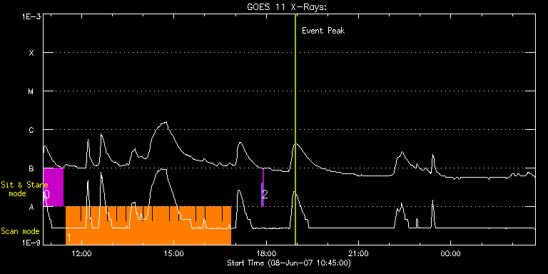 EIS Observation timeline overlay to GOES-Xray curve Code 1" 2" 40" 266" EIS Observations list for this event: STUDY ACRONYM ID DATE OBSERVED DESCRIPTION NOAA# TARGET 0 regcal016 | 3087 | 2007/06/08 10:45:21 | Dark current, hot pixels and column de | | Engineering TIMELINE ID DATE OBSERVED FITS FILE XCEN (+W/-E) YCEN (+N/-S) DUR ----------------------------------------------------------------------------------------------------------------- 3087 | 2007/06/08 10:45:21.000 | eis_l0_20070608_104521.fits.gz | 139.62 | 110.99 | 38m33s 1 SK_AR2_50x240p | 3088 | 2007/06/08 11:29:12 | SK_AR2_50x240p | | Active Region TIMELINE ID DATE OBSERVED FITS FILE XCEN (+W/-E) YCEN (+N/-S) DUR ----------------------------------------------------------------------------------------------------------------- 3088 | 2007/06/08 11:29:12.000 | eis_l0_20070608_112912.fits.gz | 130.65 | 28.46 | 1m28s 3088 | 2007/06/08 11:30:43.000 | eis_l0_20070608_113043.fits.gz | 130.90 | 28.63 | 1m28s 3088 | 2007/06/08 11:32:14.000 | eis_l0_20070608_113214.fits.gz | 131.08 | 28.72 | 1m27s 3088 | 2007/06/08 11:33:44.000 | eis_l0_20070608_113344.fits.gz | 131.34 | 28.85 | 1m29s 3088 | 2007/06/08 11:35:15.000 | eis_l0_20070608_113515.fits.gz | 131.54 | 28.91 | 1m28s 3088 | 2007/06/08 11:36:46.000 | eis_l0_20070608_113646.fits.gz | 131.79 | 29.03 | 1m28s 3088 | 2007/06/08 11:38:17.000 | eis_l0_20070608_113817.fits.gz | 132.02 | 29.20 | 1m28s 3088 | 2007/06/08 11:39:48.000 | eis_l0_20070608_113948.fits.gz | 132.20 | 29.24 | 1m27s 3088 | 2007/06/08 11:41:18.000 | eis_l0_20070608_114118.fits.gz | 132.50 | 29.38 | 1m28s 3088 | 2007/06/08 11:42:49.000 | eis_l0_20070608_114249.fits.gz | 132.70 | 29.53 | 1m28s 3088 | 2007/06/08 11:44:20.000 | eis_l0_20070608_114420.fits.gz | 132.90 | 29.63 | 1m28s 3088 | 2007/06/08 11:45:50.000 | eis_l0_20070608_114550.fits.gz | 133.14 | 29.73 | 1m28s 3088 | 2007/06/08 11:47:21.000 | eis_l0_20070608_114721.fits.gz | 133.32 | 29.80 | 1m28s 3088 | 2007/06/08 11:48:52.000 | eis_l0_20070608_114852.fits.gz | 133.62 | 29.96 | 1m28s 3088 | 2007/06/08 11:50:23.000 | eis_l0_20070608_115023.fits.gz | 133.80 | 30.04 | 1m28s 3088 | 2007/06/08 11:51:53.000 | eis_l0_20070608_115153.fits.gz | 133.98 | 30.17 | 1m28s 3088 | 2007/06/08 11:53:24.000 | eis_l0_20070608_115324.fits.gz | 134.24 | 30.28 | 1m28s 3088 | 2007/06/08 11:54:55.000 | eis_l0_20070608_115455.fits.gz | 134.54 | 30.37 | 1m28s 3088 | 2007/06/08 11:56:26.000 | eis_l0_20070608_115626.fits.gz | 134.70 | 30.53 | 1m28s 3088 | 2007/06/08 11:57:57.000 | eis_l0_20070608_115757.fits.gz | 135.04 | 30.69 | 1m28s 3088 | 2007/06/08 11:59:28.000 | eis_l0_20070608_115928.fits.gz | 135.15 | 30.76 | 1m28s 3088 | 2007/06/08 12:00:59.000 | eis_l0_20070608_120059.fits.gz | 135.44 | 30.90 | 1m28s 3088 | 2007/06/08 12:02:30.000 | eis_l0_20070608_120230.fits.gz | 135.71 | 31.00 | 1m28s 3088 | 2007/06/08 12:04:01.000 | eis_l0_20070608_120401.fits.gz | 135.86 | 31.07 | 1m28s 3088 | 2007/06/08 12:05:32.000 | eis_l0_20070608_120532.fits.gz | 136.11 | 31.22 | 1m28s 3088 | 2007/06/08 12:07:02.000 | eis_l0_20070608_120702.fits.gz | 136.29 | 31.27 | 1m28s 3088 | 2007/06/08 12:08:33.000 | eis_l0_20070608_120833.fits.gz | 136.49 | 31.38 | 1m28s 3088 | 2007/06/08 12:10:04.000 | eis_l0_20070608_121004.fits.gz | 136.78 | 31.53 | 1m28s 3088 | 2007/06/08 12:11:35.000 | eis_l0_20070608_121135.fits.gz | 137.01 | 31.57 | 1m28s 3088 | 2007/06/08 12:13:05.000 | eis_l0_20070608_121305.fits.gz | 137.18 | 31.73 | 1m28s 3088 | 2007/06/08 12:14:36.000 | eis_l0_20070608_121436.fits.gz | 137.46 | 31.87 | 1m28s 3088 | 2007/06/08 12:16:07.000 | eis_l0_20070608_121607.fits.gz | 137.74 | 32.02 | 1m28s 3088 | 2007/06/08 12:17:38.000 | eis_l0_20070608_121738.fits.gz | 137.95 | 32.07 | 1m28s 3088 | 2007/06/08 12:19:08.000 | eis_l0_20070608_121908.fits.gz | 138.14 | 32.17 | 1m28s 3088 | 2007/06/08 12:20:39.000 | eis_l0_20070608_122039.fits.gz | 138.31 | 32.24 | 1m28s 3088 | 2007/06/08 12:22:10.000 | eis_l0_20070608_122210.fits.gz | 138.58 | 32.41 | 1m28s 3088 | 2007/06/08 12:23:41.000 | eis_l0_20070608_122341.fits.gz | 138.76 | 32.49 | 1m28s 3088 | 2007/06/08 12:25:12.000 | eis_l0_20070608_122512.fits.gz | 139.00 | 32.58 | 1m28s 3088 | 2007/06/08 12:26:43.000 | eis_l0_20070608_122643.fits.gz | 139.28 | 32.72 | 1m28s 3088 | 2007/06/08 12:28:14.000 | eis_l0_20070608_122814.fits.gz | 139.46 | 32.87 | 1m28s 3088 | 2007/06/08 12:29:44.000 | eis_l0_20070608_122944.fits.gz | 139.70 | 32.97 | 1m28s 3088 | 2007/06/08 12:31:15.000 | eis_l0_20070608_123115.fits.gz | 139.90 | 33.00 | 1m28s 3088 | 2007/06/08 12:32:46.000 | eis_l0_20070608_123246.fits.gz | 140.16 | 33.15 | 1m28s 3088 | 2007/06/08 12:34:17.000 | eis_l0_20070608_123417.fits.gz | 140.34 | 33.27 | 1m28s 3088 | 2007/06/08 12:35:48.000 | eis_l0_20070608_123548.fits.gz | 140.59 | 33.42 | 1m28s 3088 | 2007/06/08 12:37:19.000 | eis_l0_20070608_123719.fits.gz | 140.88 | 33.54 | 1m28s 3088 | 2007/06/08 12:38:50.000 | eis_l0_20070608_123850.fits.gz | 141.01 | 33.60 | 1m28s 3088 | 2007/06/08 12:40:20.000 | eis_l0_20070608_124020.fits.gz | 141.29 | 33.69 | 1m28s 3088 | 2007/06/08 12:41:51.000 | eis_l0_20070608_124151.fits.gz | 141.49 | 33.90 | 1m28s 3088 | 2007/06/08 12:43:22.000 | eis_l0_20070608_124322.fits.gz | 141.67 | 33.93 | 1m28s 3088 | 2007/06/08 12:44:52.000 | eis_l0_20070608_124452.fits.gz | 141.97 | 34.08 | 1m28s 3088 | 2007/06/08 12:46:23.000 | eis_l0_20070608_124623.fits.gz | 142.16 | 34.18 | 1m28s 3088 | 2007/06/08 12:47:54.000 | eis_l0_20070608_124754.fits.gz | 142.43 | 34.32 | 1m28s 3088 | 2007/06/08 12:49:25.000 | eis_l0_20070608_124925.fits.gz | 142.67 | 34.47 | 1m28s 3088 | 2007/06/08 12:50:56.000 | eis_l0_20070608_125056.fits.gz | 142.87 | 34.53 | 1m28s 3088 | 2007/06/08 12:52:27.000 | eis_l0_20070608_125227.fits.gz | 143.11 | 34.58 | 1m27s 3088 | 2007/06/08 12:53:57.000 | eis_l0_20070608_125357.fits.gz | 143.32 | 34.76 | 1m28s 3088 | 2007/06/08 12:55:28.000 | eis_l0_20070608_125528.fits.gz | 143.55 | 34.89 | 1m28s 3088 | 2007/06/08 12:56:59.000 | eis_l0_20