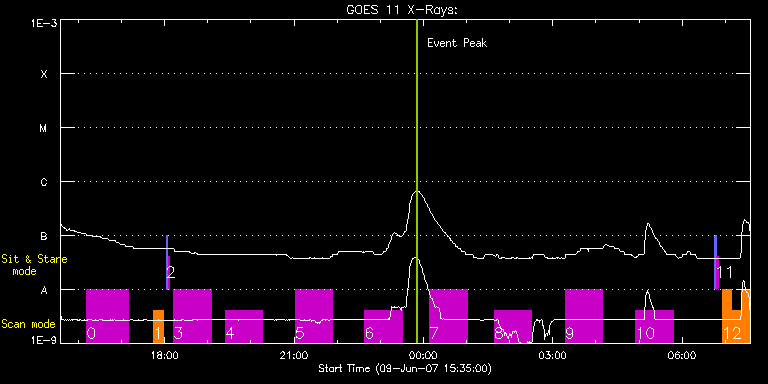 EIS Observation timeline overlay to GOES-Xray curve Code 1" 2" 40" 266" EIS Observations list for this event: STUDY ACRONYM ID DATE OBSERVED DESCRIPTION NOAA# TARGET 0 kpd01_qs_slit_60s | 3095 | 2007/06/09 16:11:43 | kpd01_qs_1slit_55stp_1ac_60s | | Quiet Sun TIMELINE ID DATE OBSERVED FITS FILE XCEN (+W/-E) YCEN (+N/-S) DUR ----------------------------------------------------------------------------------------------------------------- 3095 | 2007/06/09 16:11:43.000 | eis_l0_20070609_161143.fits.gz | 382.92 | 221.67 | 57m44s 1 HH_AR+FLR_RAS_N03 | 3096 | 2007/06/09 17:44:57 | HH_AR+FLR_RAS_N03 (EWxNS=240"x240", 5. | | Active Region TIMELINE ID DATE OBSERVED FITS FILE XCEN (+W/-E) YCEN (+N/-S) DUR ----------------------------------------------------------------------------------------------------------------- 3096 | 2007/06/09 17:44:57.000 | eis_l0_20070609_174457.fits.gz | 393.27 | 158.78 | 13m7s 2 SYNOP001 | 3097 | 2007/06/09 18:02:20 | SYNOP001_40arcsec_1arcsec_30s_90s | | Quiet Sun TIMELINE ID DATE OBSERVED FITS FILE XCEN (+W/-E) YCEN (+N/-S) DUR ----------------------------------------------------------------------------------------------------------------- 3097 | 2007/06/09 18:02:20.000 | eis_l0_20070609_180220.fits.gz | 0.43 | 70.60 | 2m2s 3097 | 2007/06/09 18:04:36.000 | eis_l0_20070609_180436.fits.gz | 0.40 | 70.54 | 2m1s 3 el_loop_diagn_sumer | 3098 | 2007/06/09 18:12:13 | AR loop diagnostics with SUMER | | Active Region TIMELINE ID DATE OBSERVED FITS FILE XCEN (+W/-E) YCEN (+N/-S) DUR ----------------------------------------------------------------------------------------------------------------- 3098 | 2007/06/09 18:12:13.000 | eis_l0_20070609_181213.fits.gz | 338.99 | 166.61 | 52m25s 4 el_loop_diagn_sumer | 3099 | 2007/06/09 19:24:13 | AR loop diagnostics with SUMER | | Active Region TIMELINE ID DATE OBSERVED FITS FILE XCEN (+W/-E) YCEN (+N/-S) DUR ----------------------------------------------------------------------------------------------------------------- 3099 | 2007/06/09 19:24:13.000 | eis_l0_20070609_192413.fits.gz | 408.94 | 201.52 | 52m24s 5 el_loop_diagn_sumer | 3100 | 2007/06/09 21:01:43 | AR loop diagnostics with SUMER | | Active Region TIMELINE ID DATE OBSERVED FITS FILE XCEN (+W/-E) YCEN (+N/-S) DUR ----------------------------------------------------------------------------------------------------------------- 3100 | 2007/06/09 21:01:43.000 | eis_l0_20070609_210143.fits.gz | 481.98 | 238.01 | 52m24s 6 el_loop_diagn_sumer | 3101 | 2007/06/09 22:38:13 | AR loop diagnostics with SUMER | | Active Region TIMELINE ID DATE OBSERVED FITS FILE XCEN (+W/-E) YCEN (+N/-S) DUR ----------------------------------------------------------------------------------------------------------------- 3101 | 2007/06/09 22:38:13.000 | eis_l0_20070609_223813.fits.gz | 374.84 | 184.48 | 52m25s 7 el_loop_diagn_sumer | 3102 | 2007/06/10 00:08:43 | AR loop diagnostics with SUMER | | Active Region TIMELINE ID DATE OBSERVED FITS FILE XCEN (+W/-E) YCEN (+N/-S) DUR ----------------------------------------------------------------------------------------------------------------- 3102 | 2007/06/10 00:08:43.000 | eis_l0_20070610_000843.fits.gz | 447.05 | 220.04 | 52m25s 8 el_loop_diagn_sumer | 3103 | 2007/06/10 01:38:12 | AR loop diagnostics with SUMER | | Active Region TIMELINE ID DATE OBSERVED FITS FILE XCEN (+W/-E) YCEN (+N/-S) DUR ----------------------------------------------------------------------------------------------------------------- 3103 | 2007/06/10 01:38:12.000 | eis_l0_20070610_013812.fits.gz | 518.72 | 255.84 | 52m25s 9 el_loop_diagn_sumer | 3104 | 2007/06/10 03:17:12 | AR loop diagnostics with SUMER | | Active Region TIMELINE ID DATE OBSERVED FITS FILE XCEN (+W/-E) YCEN (+N/-S) DUR ----------------------------------------------------------------------------------------------------------------- 3104 | 2007/06/10 03:17:12.000 | eis_l0_20070610_031712.fits.gz | 411.65 | 202.23 | 52m25s 10 el_loop_diagn_sumer | 3105 | 2007/06/10 04:55:12 | AR loop diagnostics with SUMER | | Active Region TIMELINE ID DATE OBSERVED FITS FILE XCEN (+W/-E) YCEN (+N/-S) DUR ----------------------------------------------------------------------------------------------------------------- 3105 | 2007/06/10 04:55:12.000 | eis_l0_20070610_045512.fits.gz | 484.42 | 238.72 | 52m25s 11 SYNOP001 | 3106 | 2007/06/10 06:45:34 | SYNOP001_40arcsec_1arcsec_30s_90s | | Quiet Sun TIMELINE ID DATE OBSERVED FITS FILE XCEN (+W/-E) YCEN (+N/-S) DUR ----------------------------------------------------------------------------------------------------------------- 3106 | 2007/06/10 06:45:34.000 | eis_l0_20070610_064534.fits.gz | 0.41 | 70.60 | 2m2s 3106 | 2007/06/10 06:47:50.000 | eis_l0_20070610_064750.fits.gz | 0.41 | 70.51 | 2m1s 12 HH_AR+FLR_RAS_N03 | 3107 | 2007/06/10 06:55:27 | HH_AR+FLR_RAS_N03 (EWxNS=240"x240", 5. | | Active Region TIMELINE ID DATE OBSERVED FITS FILE XCEN (+W/-E) YCEN (+N/-S) DUR ----------------------------------------------------------------------------------------------------------------- 3107 | 2007/06/10 06:55:27.000 | eis_l0_20070610_065527.fits.gz | 497.97 | 235.79 | 13m8s 3107 | 2007/06/10 07:08:38.000 | eis_l0_20070610_070838.fits.gz | 499.57 | 236.66 | 13m7s 3107 | 2007/06/10 07:21:48.000 | eis_l0_20070610_072148.fits.gz | 501.34 | 237.48 | 13m7s : Check study information : Download file : View thumbnails For this event, also check for: