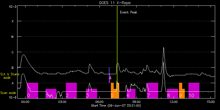EIS Observation timeline overlay to GOES-Xray curve Code 1" 2" 40" 266" EIS Observations list for this event: STUDY ACRONYM ID DATE OBSERVED DESCRIPTION NOAA# TARGET 0 el_loop_diagn_sumer | 3102 | 2007/06/10 00:08:43 | AR loop diagnostics with SUMER | | Active Region TIMELINE ID DATE OBSERVED FITS FILE XCEN (+W/-E) YCEN (+N/-S) DUR ----------------------------------------------------------------------------------------------------------------- 3102 | 2007/06/10 00:08:43.000 | eis_l0_20070610_000843.fits.gz | 447.05 | 220.04 | 52m25s 1 el_loop_diagn_sumer | 3103 | 2007/06/10 01:38:12 | AR loop diagnostics with SUMER | | Active Region TIMELINE ID DATE OBSERVED FITS FILE XCEN (+W/-E) YCEN (+N/-S) DUR ----------------------------------------------------------------------------------------------------------------- 3103 | 2007/06/10 01:38:12.000 | eis_l0_20070610_013812.fits.gz | 518.72 | 255.84 | 52m25s 2 el_loop_diagn_sumer | 3104 | 2007/06/10 03:17:12 | AR loop diagnostics with SUMER | | Active Region TIMELINE ID DATE OBSERVED FITS FILE XCEN (+W/-E) YCEN (+N/-S) DUR ----------------------------------------------------------------------------------------------------------------- 3104 | 2007/06/10 03:17:12.000 | eis_l0_20070610_031712.fits.gz | 411.65 | 202.23 | 52m25s 3 el_loop_diagn_sumer | 3105 | 2007/06/10 04:55:12 | AR loop diagnostics with SUMER | | Active Region TIMELINE ID DATE OBSERVED FITS FILE XCEN (+W/-E) YCEN (+N/-S) DUR ----------------------------------------------------------------------------------------------------------------- 3105 | 2007/06/10 04:55:12.000 | eis_l0_20070610_045512.fits.gz | 484.42 | 238.72 | 52m25s 4 SYNOP001 | 3106 | 2007/06/10 06:45:34 | SYNOP001_40arcsec_1arcsec_30s_90s | | Quiet Sun TIMELINE ID DATE OBSERVED FITS FILE XCEN (+W/-E) YCEN (+N/-S) DUR ----------------------------------------------------------------------------------------------------------------- 3106 | 2007/06/10 06:45:34.000 | eis_l0_20070610_064534.fits.gz | 0.41 | 70.60 | 2m2s 3106 | 2007/06/10 06:47:50.000 | eis_l0_20070610_064750.fits.gz | 0.41 | 70.51 | 2m1s 5 HH_AR+FLR_RAS_N03 | 3107 | 2007/06/10 06:55:27 | HH_AR+FLR_RAS_N03 (EWxNS=240"x240", 5. | | Active Region TIMELINE ID DATE OBSERVED FITS FILE XCEN (+W/-E) YCEN (+N/-S) DUR ----------------------------------------------------------------------------------------------------------------- 3107 | 2007/06/10 06:55:27.000 | eis_l0_20070610_065527.fits.gz | 497.97 | 235.79 | 13m8s 3107 | 2007/06/10 07:08:38.000 | eis_l0_20070610_070838.fits.gz | 499.57 | 236.66 | 13m7s 3107 | 2007/06/10 07:21:48.000 | eis_l0_20070610_072148.fits.gz | 501.34 | 237.48 | 13m7s 6 el_loop_diagn_sumer | 3108 | 2007/06/10 08:12:27 | AR loop diagnostics with SUMER | 960 | Active Region TIMELINE ID DATE OBSERVED FITS FILE XCEN (+W/-E) YCEN (+N/-S) DUR ----------------------------------------------------------------------------------------------------------------- 3108 | 2007/06/10 08:12:27.000 | eis_l0_20070610_081227.fits.gz | 694.60 | -145.78 | 42m6s 7 el_loop_diagn_sumer | 3109 | 2007/06/10 09:51:12 | AR loop diagnostics with SUMER | | Active Region TIMELINE ID DATE OBSERVED FITS FILE XCEN (+W/-E) YCEN (+N/-S) DUR ----------------------------------------------------------------------------------------------------------------- 3109 | 2007/06/10 09:51:12.000 | eis_l0_20070610_095112.fits.gz | 522.58 | 257.65 | 52m25s 8 el_loop_diagn_sumer | 3110 | 2007/06/10 11:29:12 | AR loop diagnostics with SUMER | | Active Region TIMELINE ID DATE OBSERVED FITS FILE XCEN (+W/-E) YCEN (+N/-S) DUR ----------------------------------------------------------------------------------------------------------------- 3110 | 2007/06/10 11:29:12.000 | eis_l0_20070610_112912.fits.gz | 594.10 | 293.88 | 52m25s 9 HH_AR+FLR_RAS_N03 | 3111 | 2007/06/10 12:27:11 | HH_AR+FLR_RAS_N03 (EWxNS=240"x240", 5. | | Active Region TIMELINE ID DATE OBSERVED FITS FILE XCEN (+W/-E) YCEN (+N/-S) DUR ----------------------------------------------------------------------------------------------------------------- 3111 | 2007/06/10 12:27:11.000 | eis_l0_20070610_122711.fits.gz | 539.52 | 256.49 | 13m7s 3111 | 2007/06/10 12:40:21.000 | eis_l0_20070610_124021.fits.gz | 541.13 | 257.35 | 13m7s 10 el_loop_diagn_sumer | 3112 | 2007/06/10 13:12:27 | AR loop diagnostics with SUMER | | Active Region TIMELINE ID DATE OBSERVED FITS FILE XCEN (+W/-E) YCEN (+N/-S) DUR ----------------------------------------------------------------------------------------------------------------- 3112 | 2007/06/10 13:12:27.000 | eis_l0_20070610_131227.fits.gz | 486.72 | 240.14 | 52m24s : Check study information : Download file : View thumbnails For this event, also check for:
