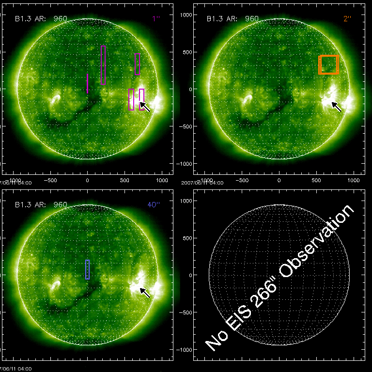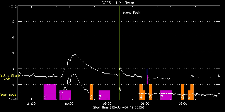 EIS Observation timeline overlay to GOES-Xray curve Code 1" 2" 40" 266" EIS Observations list for this event: STUDY ACRONYM ID DATE OBSERVED DESCRIPTION NOAA# TARGET 0 kpd01_qs_slit_60s | 3117 | 2007/06/10 21:58:52 | kpd01_qs_1slit_55stp_1ac_60s | | Quiet Sun TIMELINE ID DATE OBSERVED FITS FILE XCEN (+W/-E) YCEN (+N/-S) DUR ----------------------------------------------------------------------------------------------------------------- 3117 | 2007/06/10 21:58:52.000 | eis_l0_20070610_215852.fits.gz | 212.82 | 316.18 | 57m44s 1 el_loop_diagn_sumer | 3118 | 2007/06/10 23:14:12 | AR loop diagnostics with SUMER | | Active Region TIMELINE ID DATE OBSERVED FITS FILE XCEN (+W/-E) YCEN (+N/-S) DUR ----------------------------------------------------------------------------------------------------------------- 3118 | 2007/06/10 23:14:12.000 | eis_l0_20070610_231412.fits.gz | 589.01 | -145.13 | 52m25s 2 HH_AR+FLR_RAS_N03 | 3120 | 2007/06/11 01:37:40 | HH_AR+FLR_RAS_N03 (EWxNS=240"x240", 5. | | Active Region TIMELINE ID DATE OBSERVED FITS FILE XCEN (+W/-E) YCEN (+N/-S) DUR ----------------------------------------------------------------------------------------------------------------- 3120 | 2007/06/11 01:37:40.000 | eis_l0_20070611_013740.fits.gz | 663.26 | 319.28 | 13m8s 3 el_loop_diagn_sumer | 3121 | 2007/06/11 02:20:26 | AR loop diagnostics with SUMER | | Active Region TIMELINE ID DATE OBSERVED FITS FILE XCEN (+W/-E) YCEN (+N/-S) DUR ----------------------------------------------------------------------------------------------------------------- 3121 | 2007/06/11 02:20:26.000 | eis_l0_20070611_022026.fits.gz | 729.34 | -145.02 | 52m25s 4 HH_AR+FLR_RAS_N03 | 3123 | 2007/06/11 05:34:26 | HH_AR+FLR_RAS_N03 (EWxNS=240"x240", 5. | | Active Region TIMELINE ID DATE OBSERVED FITS FILE XCEN (+W/-E) YCEN (+N/-S) DUR ----------------------------------------------------------------------------------------------------------------- 3123 | 2007/06/11 05:34:26.000 | eis_l0_20070611_053426.fits.gz | 656.44 | 319.41 | 13m8s 3123 | 2007/06/11 05:47:37.000 | eis_l0_20070611_054737.fits.gz | 657.82 | 320.15 | 13m7s 5 SYNOP001 | 3124 | 2007/06/11 06:08:19 | SYNOP001_40arcsec_1arcsec_30s_90s | | Quiet Sun TIMELINE ID DATE OBSERVED FITS FILE XCEN (+W/-E) YCEN (+N/-S) DUR ----------------------------------------------------------------------------------------------------------------- 3124 | 2007/06/11 06:08:19.000 | eis_l0_20070611_060819.fits.gz | 0.38 | 70.58 | 2m2s 3124 | 2007/06/11 06:10:35.000 | eis_l0_20070611_061035.fits.gz | 0.40 | 70.57 | 2m1s 6 HH_AR+FLR_RAS_N03 | 3125 | 2007/06/11 06:18:27 | HH_AR+FLR_RAS_N03 (EWxNS=240"x240", 5. | | Active Region TIMELINE ID DATE OBSERVED FITS FILE XCEN (+W/-E) YCEN (+N/-S) DUR ----------------------------------------------------------------------------------------------------------------- 3125 | 2007/06/11 06:18:27.000 | eis_l0_20070611_061827.fits.gz | 662.65 | 318.44 | 13m7s 7 el_loop_diagn_sumer | 3126 | 2007/06/11 07:12:56 | AR loop diagnostics with SUMER | | Active Region TIMELINE ID DATE OBSERVED FITS FILE XCEN (+W/-E) YCEN (+N/-S) DUR ----------------------------------------------------------------------------------------------------------------- 3126 | 2007/06/11 07:12:56.000 | eis_l0_20070611_071256.fits.gz | 669.92 | 332.64 | 52m25s 8 HH_AR+FLR_RAS_N03 | 3127 | 2007/06/11 08:51:26 | HH_AR+FLR_RAS_N03 (EWxNS=240"x240", 5. | | Active Region TIMELINE ID DATE OBSERVED FITS FILE XCEN (+W/-E) YCEN (+N/-S) DUR ----------------------------------------------------------------------------------------------------------------- 3127 | 2007/06/11 08:51:26.000 | eis_l0_20070611_085126.fits.gz | 678.69 | 326.46 | 13m7s 9 HH_AR+FLR_RAS_N03 | 3129 | 2007/06/11 09:23:12 | HH_AR+FLR_RAS_N03 (EWxNS=240"x240", 5. | | Active Region TIMELINE ID DATE OBSERVED FITS FILE XCEN (+W/-E) YCEN (+N/-S) DUR ----------------------------------------------------------------------------------------------------------------- 3129 | 2007/06/11 09:23:12.000 | eis_l0_20070611_092312.fits.gz | 681.99 | 328.61 | 13m7s 3129 | 2007/06/11 09:36:22.000 | eis_l0_20070611_093622.fits.gz | 683.35 | 329.29 | 13m7s : Check study information : Download file : View thumbnails For this event, also check for: