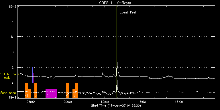 EIS Observation timeline overlay to GOES-Xray curve Code 1" 2" 40" 266" EIS Observations list for this event: STUDY ACRONYM ID DATE OBSERVED DESCRIPTION NOAA# TARGET 0 HH_AR+FLR_RAS_N03 | 3123 | 2007/06/11 05:34:26 | HH_AR+FLR_RAS_N03 (EWxNS=240"x240", 5. | | Active Region TIMELINE ID DATE OBSERVED FITS FILE XCEN (+W/-E) YCEN (+N/-S) DUR ----------------------------------------------------------------------------------------------------------------- 3123 | 2007/06/11 05:34:26.000 | eis_l0_20070611_053426.fits.gz | 656.44 | 319.41 | 13m8s 3123 | 2007/06/11 05:47:37.000 | eis_l0_20070611_054737.fits.gz | 657.82 | 320.15 | 13m7s 1 SYNOP001 | 3124 | 2007/06/11 06:08:19 | SYNOP001_40arcsec_1arcsec_30s_90s | | Quiet Sun TIMELINE ID DATE OBSERVED FITS FILE XCEN (+W/-E) YCEN (+N/-S) DUR ----------------------------------------------------------------------------------------------------------------- 3124 | 2007/06/11 06:08:19.000 | eis_l0_20070611_060819.fits.gz | 0.38 | 70.58 | 2m2s 3124 | 2007/06/11 06:10:35.000 | eis_l0_20070611_061035.fits.gz | 0.40 | 70.57 | 2m1s 2 HH_AR+FLR_RAS_N03 | 3125 | 2007/06/11 06:18:27 | HH_AR+FLR_RAS_N03 (EWxNS=240"x240", 5. | | Active Region TIMELINE ID DATE OBSERVED FITS FILE XCEN (+W/-E) YCEN (+N/-S) DUR ----------------------------------------------------------------------------------------------------------------- 3125 | 2007/06/11 06:18:27.000 | eis_l0_20070611_061827.fits.gz | 662.65 | 318.44 | 13m7s 3 el_loop_diagn_sumer | 3126 | 2007/06/11 07:12:56 | AR loop diagnostics with SUMER | | Active Region TIMELINE ID DATE OBSERVED FITS FILE XCEN (+W/-E) YCEN (+N/-S) DUR ----------------------------------------------------------------------------------------------------------------- 3126 | 2007/06/11 07:12:56.000 | eis_l0_20070611_071256.fits.gz | 669.92 | 332.64 | 52m25s 4 HH_AR+FLR_RAS_N03 | 3127 | 2007/06/11 08:51:26 | HH_AR+FLR_RAS_N03 (EWxNS=240"x240", 5. | | Active Region TIMELINE ID DATE OBSERVED FITS FILE XCEN (+W/-E) YCEN (+N/-S) DUR ----------------------------------------------------------------------------------------------------------------- 3127 | 2007/06/11 08:51:26.000 | eis_l0_20070611_085126.fits.gz | 678.69 | 326.46 | 13m7s 5 HH_AR+FLR_RAS_N03 | 3129 | 2007/06/11 09:23:12 | HH_AR+FLR_RAS_N03 (EWxNS=240"x240", 5. | | Active Region TIMELINE ID DATE OBSERVED FITS FILE XCEN (+W/-E) YCEN (+N/-S) DUR ----------------------------------------------------------------------------------------------------------------- 3129 | 2007/06/11 09:23:12.000 | eis_l0_20070611_092312.fits.gz | 681.99 | 328.61 | 13m7s 3129 | 2007/06/11 09:36:22.000 | eis_l0_20070611_093622.fits.gz | 683.35 | 329.29 | 13m7s : Check study information : Download file : View thumbnails For this event, also check for: