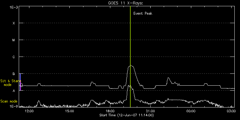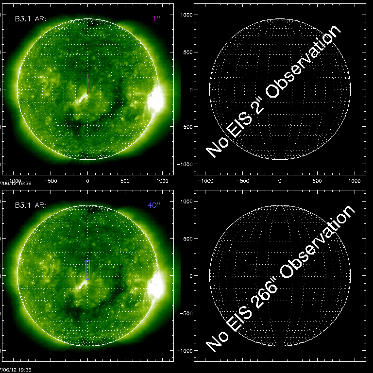 EIS Observation timeline overlay to GOES-Xray curve Code 1" 2" 40" 266" EIS Observations list for this event: STUDY ACRONYM ID DATE OBSERVED DESCRIPTION NOAA# TARGET 0 SYNOP001 | 3137 | 2007/06/12 11:18:34 | SYNOP001_40arcsec_1arcsec_30s_90s | | Quiet Sun TIMELINE ID DATE OBSERVED FITS FILE XCEN (+W/-E) YCEN (+N/-S) DUR ----------------------------------------------------------------------------------------------------------------- 3137 | 2007/06/12 11:18:34.000 | eis_l0_20070612_111834.fits.gz | 0.50 | 70.60 | 2m2s 3137 | 2007/06/12 11:20:50.000 | eis_l0_20070612_112050.fits.gz | 0.40 | 70.59 | 2m1s : Check study information : Download file : View thumbnails For this event, also check for: