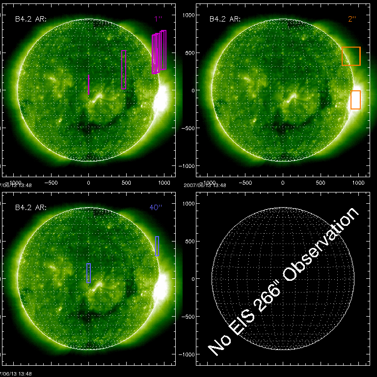 EIS Observation timeline overlay to GOES-Xray curve Code 1" 2" 40" 266" EIS Observations list for this event: STUDY ACRONYM ID DATE OBSERVED DESCRIPTION NOAA# TARGET 0 HH_AR+FLR_RAS_N03 | 3139 | 2007/06/13 08:27:26 | HH_AR+FLR_RAS_N03 (EWxNS=240"x240", 5. | | Active Region TIMELINE ID DATE OBSERVED FITS FILE XCEN (+W/-E) YCEN (+N/-S) DUR ----------------------------------------------------------------------------------------------------------------- 3139 | 2007/06/13 08:27:26.000 | eis_l0_20070613_082726.fits.gz | 905.17 | 445.35 | 13m8s 1 HH_AR+FLR_RAS_N03 | 3140 | 2007/06/13 08:55:46 | HH_AR+FLR_RAS_N03 (EWxNS=240"x240", 5. | 960 | Active Region TIMELINE ID DATE OBSERVED FITS FILE XCEN (+W/-E) YCEN (+N/-S) DUR ----------------------------------------------------------------------------------------------------------------- 3140 | 2007/06/13 08:55:46.000 | eis_l0_20070613_085546.fits.gz | 965.52 | -134.04 | 6m33s 2 HH_AR+FLR_RAS_N03 | 3141 | 2007/06/13 10:04:12 | HH_AR+FLR_RAS_N03 (EWxNS=240"x240", 5. | | Active Region TIMELINE ID DATE OBSERVED FITS FILE XCEN (+W/-E) YCEN (+N/-S) DUR ----------------------------------------------------------------------------------------------------------------- 3141 | 2007/06/13 10:04:12.000 | eis_l0_20070613_100412.fits.gz | 908.32 | 447.00 | 13m8s 3141 | 2007/06/13 10:17:23.000 | eis_l0_20070613_101723.fits.gz | 908.81 | 447.20 | 13m8s 3141 | 2007/06/13 10:30:34.000 | eis_l0_20070613_103034.fits.gz | 909.27 | 447.41 | 13m7s 3 FILL001 | 3145 | 2007/06/13 11:45:20 | FILL001_40arcsec_1arcsec_30s_90s | | Quiet Sun TIMELINE ID DATE OBSERVED FITS FILE XCEN (+W/-E) YCEN (+N/-S) DUR ----------------------------------------------------------------------------------------------------------------- 3145 | 2007/06/13 11:45:20.000 | eis_l0_20070613_114520.fits.gz | 910.32 | 427.05 | 2m1s 3145 | 2007/06/13 11:47:35.000 | eis_l0_20070613_114735.fits.gz | 910.44 | 427.18 | 2m2s 3145 | 2007/06/13 11:49:51.000 | eis_l0_20070613_114951.fits.gz | 910.51 | 427.14 | 2m1s 4 SYNOP001 | 3146 | 2007/06/13 11:56:05 | SYNOP001_40arcsec_1arcsec_30s_90s | | Quiet Sun TIMELINE ID DATE OBSERVED FITS FILE XCEN (+W/-E) YCEN (+N/-S) DUR ----------------------------------------------------------------------------------------------------------------- 3146 | 2007/06/13 11:56:05.000 | eis_l0_20070613_115605.fits.gz | 0.33 | 70.55 | 2m1s 3146 | 2007/06/13 11:58:20.000 | eis_l0_20070613_115820.fits.gz | 0.37 | 70.50 | 2m2s 5 kpd01_qs_slit_60s | 3147 | 2007/06/13 12:07:12 | kpd01_qs_1slit_55stp_1ac_60s | | Quiet Sun TIMELINE ID DATE OBSERVED FITS FILE XCEN (+W/-E) YCEN (+N/-S) DUR ----------------------------------------------------------------------------------------------------------------- 3147 | 2007/06/13 12:07:12.000 | eis_l0_20070613_120712.fits.gz | 894.86 | 483.32 | 57m45s 6 kpd01_qs_slit_60s | 3148 | 2007/06/13 13:23:12 | kpd01_qs_1slit_55stp_1ac_60s | | Quiet Sun TIMELINE ID DATE OBSERVED FITS FILE XCEN (+W/-E) YCEN (+N/-S) DUR ----------------------------------------------------------------------------------------------------------------- 3148 | 2007/06/13 13:23:12.000 | eis_l0_20070613_132312.fits.gz | 915.18 | 493.56 | 57m44s 7 kpd01_qs_slit_60s | 3149 | 2007/06/13 14:26:12 | kpd01_qs_1slit_55stp_1ac_60s | | Quiet Sun TIMELINE ID DATE OBSERVED FITS FILE XCEN (+W/-E) YCEN (+N/-S) DUR ----------------------------------------------------------------------------------------------------------------- 3149 | 2007/06/13 14:26:12.000 | eis_l0_20070613_142612.fits.gz | 994.70 | 533.38 | 57m44s 8 kpd01_qs_slit_60s | 3150 | 2007/06/13 15:29:12 | kpd01_qs_1slit_55stp_1ac_60s | | Quiet Sun TIMELINE ID DATE OBSERVED FITS FILE XCEN (+W/-E) YCEN (+N/-S) DUR ----------------------------------------------------------------------------------------------------------------- 3150 | 2007/06/13 15:29:12.000 | eis_l0_20070613_152912.fits.gz | 868.71 | 470.46 | 57m45s 9 kpd01_qs_slit_60s | 3151 | 2007/06/13 16:58:12 | kpd01_qs_1slit_55stp_1ac_60s | | Quiet Sun TIMELINE ID DATE OBSERVED FITS FILE XCEN (+W/-E) YCEN (+N/-S) DUR ----------------------------------------------------------------------------------------------------------------- 3151 | 2007/06/13 16:58:12.000 | eis_l0_20070613_165812.fits.gz | 464.35 | 268.27 | 57m44s 10 kpd01_qs_slit_60s | 3152 | 2007/06/13 18:35:12 | kpd01_qs_1slit_55stp_1ac_60s | | Quiet Sun TIMELINE ID DATE OBSERVED FITS FILE XCEN (+W/-E) YCEN (+N/-S) DUR ----------------------------------------------------------------------------------------------------------------- 3152 | 2007/06/13 18:35:12.000 | eis_l0_20070613_183512.fits.gz | 973.56 | 523.02 | 57m44s 11 kpd01_qs_slit_60s | 3153 | 2007/06/13 20:12:12 | kpd01_qs_1slit_55stp_1ac_60s | | Quiet Sun TIMELINE ID DATE OBSERVED FITS FILE XCEN (+W/-E) YCEN (+N/-S) DUR ----------------------------------------------------------------------------------------------------------------- 3153 | 2007/06/13 20:12:12.000 | eis_l0_20070613_201212.fits.gz | 875.70 | 474.15 | 57m44s : Check study information : Download file : View thumbnails For this event, also check for: