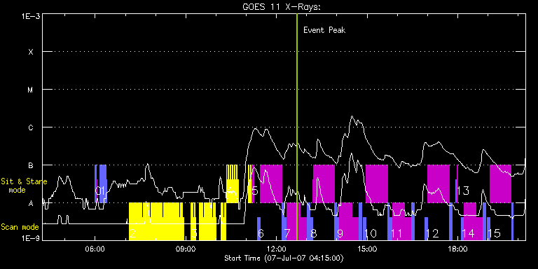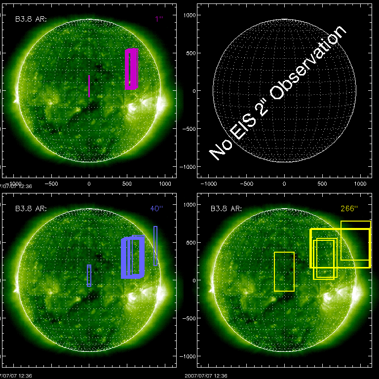 EIS Observation timeline overlay to GOES-Xray curve Code 1" 2" 40" 266" EIS Observations list for this event: STUDY ACRONYM ID DATE OBSERVED DESCRIPTION NOAA# TARGET 0 SYNOP001 | 3598 | 2007/07/07 05:59:34 | SYNOP001_40arcsec_1arcsec_30s_90s | | Quiet Sun TIMELINE ID DATE OBSERVED FITS FILE XCEN (+W/-E) YCEN (+N/-S) DUR ----------------------------------------------------------------------------------------------------------------- 3598 | 2007/07/07 05:59:34.000 | eis_l0_20070707_055934.fits.gz | 0.34 | 70.60 | 2m2s 3598 | 2007/07/07 06:01:50.000 | eis_l0_20070707_060150.fits.gz | 0.33 | 70.62 | 2m1s 1 IUU_SLOT_cntxt_AR_01 | 3599 | 2007/07/07 06:09:34 | Active Region context SLOT images. | | Active Region TIMELINE ID DATE OBSERVED FITS FILE XCEN (+W/-E) YCEN (+N/-S) DUR ----------------------------------------------------------------------------------------------------------------- 3599 | 2007/07/07 06:09:34.000 | eis_l0_20070707_060934.fits.gz | 876.80 | 446.80 | 1m7s 3599 | 2007/07/07 06:10:53.000 | eis_l0_20070707_061053.fits.gz | 876.82 | 446.80 | 1m7s 3599 | 2007/07/07 06:12:12.000 | eis_l0_20070707_061212.fits.gz | 876.91 | 446.88 | 1m7s 3599 | 2007/07/07 06:13:31.000 | eis_l0_20070707_061331.fits.gz | 876.97 | 446.91 | 1m7s 3599 | 2007/07/07 06:14:49.000 | eis_l0_20070707_061449.fits.gz | 877.06 | 446.95 | 1m7s 3599 | 2007/07/07 06:16:08.000 | eis_l0_20070707_061608.fits.gz | 877.09 | 447.04 | 1m7s 3599 | 2007/07/07 06:17:27.000 | eis_l0_20070707_061727.fits.gz | 877.24 | 447.05 | 1m7s 3599 | 2007/07/07 06:18:46.000 | eis_l0_20070707_061846.fits.gz | 877.24 | 447.05 | 1m7s 3599 | 2007/07/07 06:20:05.000 | eis_l0_20070707_062005.fits.gz | 877.35 | 447.10 | 1m7s 3599 | 2007/07/07 06:21:23.000 | eis_l0_20070707_062123.fits.gz | 877.38 | 447.11 | 1m7s 2 DHB_DRW_001 | 3600 | 2007/07/07 07:07:27 | Wide Slot Full FOV Fast Raster | | Coronal Hole TIMELINE ID DATE OBSERVED FITS FILE XCEN (+W/-E) YCEN (+N/-S) DUR ----------------------------------------------------------------------------------------------------------------- 3600 | 2007/07/07 07:07:27.000 | eis_l0_20070707_070727.fits.gz | 730.51 | 411.34 | 1m26s 3600 | 2007/07/07 07:08:58.000 | eis_l0_20070707_070858.fits.gz | 730.62 | 411.40 | 1m26s 3600 | 2007/07/07 07:10:29.000 | eis_l0_20070707_071029.fits.gz | 730.87 | 411.48 | 1m26s 3600 | 2007/07/07 07:12:00.000 | eis_l0_20070707_071200.fits.gz | 730.98 | 411.53 | 1m26s 3600 | 2007/07/07 07:13:31.000 | eis_l0_20070707_071331.fits.gz | 731.09 | 411.56 | 1m26s 3600 | 2007/07/07 07:15:02.000 | eis_l0_20070707_071502.fits.gz | 731.26 | 411.67 | 1m26s 3600 | 2007/07/07 07:16:33.000 | eis_l0_20070707_071633.fits.gz | 731.37 | 411.69 | 1m26s 3600 | 2007/07/07 07:18:05.000 | eis_l0_20070707_071805.fits.gz | 731.57 | 411.83 | 1m25s 3600 | 2007/07/07 07:19:36.000 | eis_l0_20070707_071936.fits.gz | 731.71 | 411.96 | 1m26s 3600 | 2007/07/07 07:21:07.000 | eis_l0_20070707_072107.fits.gz | 731.84 | 412.00 | 1m26s 3600 | 2007/07/07 07:22:38.000 | eis_l0_20070707_072238.fits.gz | 732.03 | 412.11 | 1m26s 3600 | 2007/07/07 07:24:09.000 | eis_l0_20070707_072409.fits.gz | 732.12 | 412.14 | 1m26s 3600 | 2007/07/07 07:25:40.000 | eis_l0_20070707_072540.fits.gz | 732.36 | 412.19 | 1m26s 3600 | 2007/07/07 07:27:11.000 | eis_l0_20070707_072711.fits.gz | 732.42 | 412.33 | 1m26s 3600 | 2007/07/07 07:28:42.000 | eis_l0_20070707_072842.fits.gz | 732.59 | 412.34 | 1m26s 3600 | 2007/07/07 07:30:13.000 | eis_l0_20070707_073013.fits.gz | 732.76 | 412.43 | 1m26s 3600 | 2007/07/07 07:31:44.000 | eis_l0_20070707_073144.fits.gz | 732.89 | 412.51 | 1m26s 3600 | 2007/07/07 07:33:15.000 | eis_l0_20070707_073315.fits.gz | 733.03 | 412.56 | 1m26s 3600 | 2007/07/07 07:34:46.000 | eis_l0_20070707_073446.fits.gz | 733.15 | 412.66 | 1m26s 3600 | 2007/07/07 07:36:17.000 | eis_l0_20070707_073617.fits.gz | 733.30 | 412.70 | 1m26s 3600 | 2007/07/07 07:37:48.000 | eis_l0_20070707_073748.fits.gz | 733.42 | 412.83 | 1m26s 3600 | 2007/07/07 07:39:19.000 | eis_l0_20070707_073919.fits.gz | 733.61 | 412.92 | 1m26s 3600 | 2007/07/07 07:40:50.000 | eis_l0_20070707_074050.fits.gz | 733.73 | 413.00 | 1m26s 3600 | 2007/07/07 07:42:21.000 | eis_l0_20070707_074221.fits.gz | 733.88 | 413.07 | 1m26s 3600 | 2007/07/07 07:43:52.000 | eis_l0_20070707_074352.fits.gz | 734.02 | 413.19 | 1m26s 3600 | 2007/07/07 07:45:23.000 | eis_l0_20070707_074523.fits.gz | 734.15 | 413.17 | 1m26s 3600 | 2007/07/07 07:46:55.000 | eis_l0_20070707_074655.fits.gz | 734.35 | 413.30 | 1m25s 3600 | 2007/07/07 07:49:19.000 | eis_l0_20070707_074919.fits.gz | 734.54 | 413.39 | 1m26s 3600 | 2007/07/07 07:50:50.000 | eis_l0_20070707_075050.fits.gz | 734.72 | 413.48 | 1m26s 3600 | 2007/07/07 07:52:21.000 | eis_l0_20070707_075221.fits.gz | 734.88 | 413.60 | 1m26s 3600 | 2007/07/07 07:53:52.000 | eis_l0_20070707_075352.fits.gz | 735.03 | 413.68 | 1m26s 3600 | 2007/07/07 07:55:23.000 | eis_l0_20070707_075523.fits.gz | 735.10 | 413.67 | 1m26s 3600 | 2007/07/07 07:56:54.000 | eis_l0_20070707_075654.fits.gz | 735.34 | 413.85 | 1m26s 3600 | 2007/07/07 07:58:25.000 | eis_l0_20070707_075825.fits.gz | 735.43 | 413.88 | 1m26s 3600 | 2007/07/07 07:59:56.000 | eis_l0_20070707_075956.fits.gz | 735.62 | 413.97 | 1m26s 3600 | 2007/07/07 08:01:27.000 | eis_l0_20070707_080127.fits.gz | 735.73 | 414.03 | 1m26s 3600 | 2007/07/07 08:02:58.000 | eis_l0_20070707_080258.fits.gz | 735.83 | 414.08 | 1m26s 3600 | 2007/07/07 08:04:29.000 | eis_l0_20070707_080429.fits.gz | 736.04 | 414.18 | 1m26s 3600 | 2007/07/07 08:06:00.000 | eis_l0_20070707_080600.fits.gz | 736.18 | 414.25 | 1m26s 3600 | 2007/07/07 08:07:31.000 | eis_l0_20070707_080731.fits.gz | 736.32 | 414.39 | 1m26s 3600 | 2007/07/07 08:09:02.000 | eis_l0_20070707_080902.fits.gz | 736.49 | 414.46 | 1m26s 3600 | 2007/07/07 08:10:33.000 | eis_l0_20070707_081033.fits.gz | 736.70 | 414.51 | 1m26s 3600 | 2007/07/07 08:12:04.000 | eis_l0_20070707_081204.fits.gz | 736.68 | 414.54 | 1m26s 3600 | 2007/07/07 08:13:35.000 | eis_l0_20070707_081335.fits.gz | 736.89