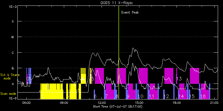 EIS Observation timeline overlay to GOES-Xray curve Code 1" 2" 40" 266" EIS Observations list for this event: STUDY ACRONYM ID DATE OBSERVED DESCRIPTION NOAA# TARGET 0 SYNOP001 | 3598 | 2007/07/07 05:59:34 | SYNOP001_40arcsec_1arcsec_30s_90s | | Quiet Sun TIMELINE ID DATE OBSERVED FITS FILE XCEN (+W/-E) YCEN (+N/-S) DUR ----------------------------------------------------------------------------------------------------------------- 3598 | 2007/07/07 05:59:34.000 | eis_l0_20070707_055934.fits.gz | 0.34 | 70.60 | 2m2s 3598 | 2007/07/07 06:01:50.000 | eis_l0_20070707_060150.fits.gz | 0.33 | 70.62 | 2m1s 1 IUU_SLOT_cntxt_AR_01 | 3599 | 2007/07/07 06:09:34 | Active Region context SLOT images. | | Active Region TIMELINE ID DATE OBSERVED FITS FILE XCEN (+W/-E) YCEN (+N/-S) DUR ----------------------------------------------------------------------------------------------------------------- 3599 | 2007/07/07 06:09:34.000 | eis_l0_20070707_060934.fits.gz | 876.80 | 446.80 | 1m7s 3599 | 2007/07/07 06:10:53.000 | eis_l0_20070707_061053.fits.gz | 876.82 | 446.80 | 1m7s 3599 | 2007/07/07 06:12:12.000 | eis_l0_20070707_061212.fits.gz | 876.91 | 446.88 | 1m7s 3599 | 2007/07/07 06:13:31.000 | eis_l0_20070707_061331.fits.gz | 876.97 | 446.91 | 1m7s 3599 | 2007/07/07 06:14:49.000 | eis_l0_20070707_061449.fits.gz | 877.06 | 446.95 | 1m7s 3599 | 2007/07/07 06:16:08.000 | eis_l0_20070707_061608.fits.gz | 877.09 | 447.04 | 1m7s 3599 | 2007/07/07 06:17:27.000 | eis_l0_20070707_061727.fits.gz | 877.24 | 447.05 | 1m7s 3599 | 2007/07/07 06:18:46.000 | eis_l0_20070707_061846.fits.gz | 877.24 | 447.05 | 1m7s 3599 | 2007/07/07 06:20:05.000 | eis_l0_20070707_062005.fits.gz | 877.35 | 447.10 | 1m7s 3599 | 2007/07/07 06:21:23.000 | eis_l0_20070707_062123.fits.gz | 877.38 | 447.11 | 1m7s 2 DHB_DRW_001 | 3600 | 2007/07/07 07:07:27 | Wide Slot Full FOV Fast Raster | | Coronal Hole TIMELINE ID DATE OBSERVED FITS FILE XCEN (+W/-E) YCEN (+N/-S) DUR ----------------------------------------------------------------------------------------------------------------- 3600 | 2007/07/07 07:07:27.000 | eis_l0_20070707_070727.fits.gz | 730.51 | 411.34 | 1m26s 3600 | 2007/07/07 07:08:58.000 | eis_l0_20070707_070858.fits.gz | 730.62 | 411.40 | 1m26s 3600 | 2007/07/07 07:10:29.000 | eis_l0_20070707_071029.fits.gz | 730.87 | 411.48 | 1m26s 3600 | 2007/07/07 07:12:00.000 | eis_l0_20070707_071200.fits.gz | 730.98 | 411.53 | 1m26s 3600 | 2007/07/07 07:13:31.000 | eis_l0_20070707_071331.fits.gz | 731.09 | 411.56 | 1m26s 3600 | 2007/07/07 07:15:02.000 | eis_l0_20070707_071502.fits.gz | 731.26 | 411.67 | 1m26s 3600 | 2007/07/07 07:16:33.000 | eis_l0_20070707_071633.fits.gz | 731.37 | 411.69 | 1m26s 3600 | 2007/07/07 07:18:05.000 | eis_l0_20070707_071805.fits.gz | 731.57 | 411.83 | 1m25s 3600 | 2007/07/07 07:19:36.000 | eis_l0_20070707_071936.fits.gz | 731.71 | 411.96 | 1m26s 3600 | 2007/07/07 07:21:07.000 | eis_l0_20070707_072107.fits.gz | 731.84 | 412.00 | 1m26s 3600 | 2007/07/07 07:22:38.000 | eis_l0_20070707_072238.fits.gz | 732.03 | 412.11 | 1m26s 3600 | 2007/07/07 07:24:09.000 | eis_l0_20070707_072409.fits.gz | 732.12 | 412.14 | 1m26s 3600 | 2007/07/07 07:25:40.000 | eis_l0_20070707_072540.fits.gz | 732.36 | 412.19 | 1m26s 3600 | 2007/07/07 07:27:11.000 | eis_l0_20070707_072711.fits.gz | 732.42 | 412.33 | 1m26s 3600 | 2007/07/07 07:28:42.000 | eis_l0_20070707_072842.fits.gz | 732.59 | 412.34 | 1m26s 3600 | 2007/07/07 07:30:13.000 | eis_l0_20070707_073013.fits.gz | 732.76 | 412.43 | 1m26s 3600 | 2007/07/07 07:31:44.000 | eis_l0_20070707_073144.fits.gz | 732.89 | 412.51 | 1m26s 3600 | 2007/07/07 07:33:15.000 | eis_l0_20070707_073315.fits.gz | 733.03 | 412.56 | 1m26s 3600 | 2007/07/07 07:34:46.000 | eis_l0_20070707_073446.fits.gz | 733.15 | 412.66 | 1m26s 3600 | 2007/07/07 07:36:17.000 | eis_l0_20070707_073617.fits.gz | 733.30 | 412.70 | 1m26s 3600 | 2007/07/07 07:37:48.000 | eis_l0_20070707_073748.fits.gz | 733.42 | 412.83 | 1m26s 3600 | 2007/07/07 07:39:19.000 | eis_l0_20070707_073919.fits.gz | 733.61 | 412.92 | 1m26s 3600 | 2007/07/07 07:40:50.000 | eis_l0_20070707_074050.fits.gz | 733.73 | 413.00 | 1m26s 3600 | 2007/07/07 07:42:21.000 | eis_l0_20070707_074221.fits.gz | 733.88 | 413.07 | 1m26s 3600 | 2007/07/07 07:43:52.000 | eis_l0_20070707_074352.fits.gz | 734.02 | 413.19 | 1m26s 3600 | 2007/07/07 07:45:23.000 | eis_l0_20070707_074523.fits.gz | 734.15 | 413.17 | 1m26s 3600 | 2007/07/07 07:46:55.000 | eis_l0_20070707_074655.fits.gz | 734.35 | 413.30 | 1m25s 3600 | 2007/07/07 07:49:19.000 | eis_l0_20070707_074919.fits.gz | 734.54 | 413.39 | 1m26s 3600 | 2007/07/07 07:50:50.000 | eis_l0_20070707_075050.fits.gz | 734.72 | 413.48 | 1m26s 3600 | 2007/07/07 07:52:21.000 | eis_l0_20070707_075221.fits.gz | 734.88 | 413.60 | 1m26s 3600 | 2007/07/07 07:53:52.000 | eis_l0_20070707_075352.fits.gz | 735.03 | 413.68 | 1m26s 3600 | 2007/07/07 07:55:23.000 | eis_l0_20070707_075523.fits.gz | 735.10 | 413.67 | 1m26s 3600 | 2007/07/07 07:56:54.000 | eis_l0_20070707_075654.fits.gz | 735.34 | 413.85 | 1m26s 3600 | 2007/07/07 07:58:25.000 | eis_l0_20070707_075825.fits.gz | 735.43 | 413.88 | 1m26s 3600 | 2007/07/07 07:59:56.000 | eis_l0_20070707_075956.fits.gz | 735.62 | 413.97 | 1m26s 3600 | 2007/07/07 08:01:27.000 | eis_l0_20070707_080127.fits.gz | 735.73 | 414.03 | 1m26s 3600 | 2007/07/07 08:02:58.000 | eis_l0_20070707_080258.fits.gz | 735.83 | 414.08 | 1m26s 3600 | 2007/07/07 08:04:29.000 | eis_l0_20070707_080429.fits.gz | 736.04 | 414.18 | 1m26s 3600 | 2007/07/07 08:06:00.000 | eis_l0_20070707_080600.fits.gz | 736.18 | 414.25 | 1m26s 3600 | 2007/07/07 08:07:31.000 | eis_l0_20070707_080731.fits.gz | 736.32 | 414.39 | 1m26s 3600 | 2007/07/07 08:09:02.000 | eis_l0_20070707_080902.fits.gz | 736.49 | 414.46 | 1m26s 3600 | 2007/07/07 08:10:33.000 | eis_l0_20070707_081033.fits.gz | 736.70 | 414.51 | 1m26s 3600 | 2007/07/07 08:12:04.000 | eis_l0_20070707_081204.fits.gz | 736.68 | 414.54 | 1m26s 3600 | 2007/07/07 08:13:35.000 | eis_l0_20070707_081335.fits.gz | 736.89