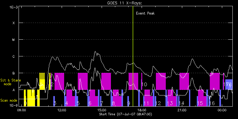 EIS Observation timeline overlay to GOES-Xray curve Code 1" 2" 40" 266" EIS Observations list for this event: STUDY ACRONYM ID DATE OBSERVED DESCRIPTION NOAA# TARGET 0 DHB_DRW_001 | 3601 | 2007/07/07 09:10:12 | Wide Slot Full FOV Fast Raster | | Coronal Hole TIMELINE ID DATE OBSERVED FITS FILE XCEN (+W/-E) YCEN (+N/-S) DUR ----------------------------------------------------------------------------------------------------------------- 3601 | 2007/07/07 09:10:12.000 | eis_l0_20070707_091012.fits.gz | 742.28 | 417.52 | 1m26s 3601 | 2007/07/07 09:11:43.000 | eis_l0_20070707_091143.fits.gz | 742.41 | 417.60 | 1m26s 3601 | 2007/07/07 09:13:14.000 | eis_l0_20070707_091314.fits.gz | 742.48 | 417.63 | 1m26s 3601 | 2007/07/07 09:14:45.000 | eis_l0_20070707_091445.fits.gz | 742.73 | 417.72 | 1m26s 3601 | 2007/07/07 09:16:17.000 | eis_l0_20070707_091617.fits.gz | 742.86 | 417.86 | 1m25s 3601 | 2007/07/07 09:17:48.000 | eis_l0_20070707_091748.fits.gz | 742.97 | 417.92 | 1m26s 3601 | 2007/07/07 09:26:37.000 | eis_l0_20070707_092637.fits.gz | 743.85 | 418.39 | 1m26s 3601 | 2007/07/07 09:28:08.000 | eis_l0_20070707_092808.fits.gz | 743.93 | 418.40 | 1m26s 3601 | 2007/07/07 09:29:39.000 | eis_l0_20070707_092939.fits.gz | 744.10 | 418.47 | 1m26s 3601 | 2007/07/07 09:31:10.000 | eis_l0_20070707_093110.fits.gz | 744.24 | 418.61 | 1m26s 3601 | 2007/07/07 09:32:41.000 | eis_l0_20070707_093241.fits.gz | 744.38 | 418.67 | 1m26s 3601 | 2007/07/07 09:34:12.000 | eis_l0_20070707_093412.fits.gz | 744.52 | 418.76 | 1m26s 3601 | 2007/07/07 09:35:43.000 | eis_l0_20070707_093543.fits.gz | 744.71 | 418.81 | 1m26s 3601 | 2007/07/07 09:37:14.000 | eis_l0_20070707_093714.fits.gz | 744.81 | 418.91 | 1m25s 3601 | 2007/07/07 09:38:45.000 | eis_l0_20070707_093845.fits.gz | 744.96 | 419.04 | 1m26s 3601 | 2007/07/07 09:40:16.000 | eis_l0_20070707_094016.fits.gz | 745.15 | 419.05 | 1m25s 3601 | 2007/07/07 09:41:47.000 | eis_l0_20070707_094147.fits.gz | 745.26 | 419.09 | 1m25s 3601 | 2007/07/07 09:43:18.000 | eis_l0_20070707_094318.fits.gz | 745.40 | 419.21 | 1m26s 3601 | 2007/07/07 09:44:49.000 | eis_l0_20070707_094449.fits.gz | 745.51 | 419.28 | 1m26s 3601 | 2007/07/07 09:46:20.000 | eis_l0_20070707_094620.fits.gz | 745.67 | 419.33 | 1m26s 3601 | 2007/07/07 09:47:51.000 | eis_l0_20070707_094751.fits.gz | 745.79 | 419.36 | 1m26s 3601 | 2007/07/07 09:49:22.000 | eis_l0_20070707_094922.fits.gz | 745.96 | 419.47 | 1m25s 3601 | 2007/07/07 09:50:53.000 | eis_l0_20070707_095053.fits.gz | 746.09 | 419.56 | 1m25s 3601 | 2007/07/07 09:52:24.000 | eis_l0_20070707_095224.fits.gz | 746.17 | 419.60 | 1m25s 3601 | 2007/07/07 09:53:55.000 | eis_l0_20070707_095355.fits.gz | 746.34 | 419.62 | 1m26s 3601 | 2007/07/07 09:55:26.000 | eis_l0_20070707_095526.fits.gz | 746.51 | 419.84 | 1m25s 3601 | 2007/07/07 09:56:57.000 | eis_l0_20070707_095657.fits.gz | 746.55 | 419.86 | 1m25s 3601 | 2007/07/07 09:58:28.000 | eis_l0_20070707_095828.fits.gz | 746.75 | 419.99 | 1m26s 3601 | 2007/07/07 10:10:08.000 | eis_l0_20070707_101008.fits.gz | 747.89 | 420.57 | 1m26s 3601 | 2007/07/07 10:11:39.000 | eis_l0_20070707_101139.fits.gz | 748.02 | 420.64 | 1m26s 3601 | 2007/07/07 10:13:10.000 | eis_l0_20070707_101310.fits.gz | 748.13 | 420.65 | 1m26s 3601 | 2007/07/07 10:14:41.000 | eis_l0_20070707_101441.fits.gz | 748.33 | 420.71 | 1m26s 3601 | 2007/07/07 10:16:12.000 | eis_l0_20070707_101612.fits.gz | 748.37 | 420.81 | 1m26s 3601 | 2007/07/07 10:17:43.000 | eis_l0_20070707_101743.fits.gz | 748.59 | 420.96 | 1m26s 3601 | 2007/07/07 10:19:14.000 | eis_l0_20070707_101914.fits.gz | 944.59 | 518.97 | 42s 1 Alignment_266 | 3602 | 2007/07/07 10:20:14 | Alignment slot 266 | | Quiet Sun TIMELINE ID DATE OBSERVED FITS FILE XCEN (+W/-E) YCEN (+N/-S) DUR ----------------------------------------------------------------------------------------------------------------- 3602 | 2007/07/07 10:20:14.000 | eis_l0_20070707_102014.fits.gz | 562.30 | 290.98 | 1m21s 3602 | 2007/07/07 10:22:17.000 | eis_l0_20070707_102217.fits.gz | 519.54 | 264.92 | 1m22s 3602 | 2007/07/07 10:24:21.000 | eis_l0_20070707_102421.fits.gz | 519.90 | 264.97 | 1m22s 3602 | 2007/07/07 10:26:25.000 | eis_l0_20070707_102625.fits.gz | 520.15 | 265.23 | 1m22s 3602 | 2007/07/07 10:28:29.000 | eis_l0_20070707_102829.fits.gz | 520.43 | 265.33 | 1m22s 3602 | 2007/07/07 10:30:33.000 | eis_l0_20070707_103033.fits.gz | 520.65 | 265.41 | 1m22s 3602 | 2007/07/07 10:32:36.000 | eis_l0_20070707_103236.fits.gz | 520.97 | 265.51 | 1m22s 3602 | 2007/07/07 10:34:40.000 | eis_l0_20070707_103440.fits.gz | 521.19 | 265.68 | 1m22s 3602 | 2007/07/07 10:36:44.000 | eis_l0_20070707_103644.fits.gz | 521.44 | 265.80 | 1m22s 3602 | 2007/07/07 10:38:48.000 | eis_l0_20070707_103848.fits.gz | 521.74 | 265.97 | 1m22s 3602 | 2007/07/07 10:40:52.000 | eis_l0_20070707_104052.fits.gz | 522.01 | 266.14 | 1m21s 3602 | 2007/07/07 10:42:55.000 | eis_l0_20070707_104255.fits.gz | 522.25 | 266.23 | 1m22s 3602 | 2007/07/07 11:03:44.000 | eis_l0_20070707_110344.fits.gz | 524.80 | 267.51 | 1m22s 3602 | 2007/07/07 11:05:47.000 | eis_l0_20070707_110547.fits.gz | 525.10 | 267.69 | 1m22s 3602 | 2007/07/07 11:07:51.000 | eis_l0_20070707_110751.fits.gz | 0.28 | 109.60 | 1m22s 2 SYNOP001 | 3603 | 2007/07/07 11:10:27 | SYNOP001_40arcsec_1arcsec_30s_90s | | Quiet Sun TIMELINE ID DATE OBSERVED FITS FILE XCEN (+W/-E) YCEN (+N/-S) DUR ----------------------------------------------------------------------------------------------------------------- 3603 | 2007/07/07 11:10:27.000 | eis_l0_20070707_111027.fits.gz | 0.38 | 45.61 | 2m2s 3603 | 2007/07/07 11:12:43.000 | eis_l0_20070707_111243.fits.gz | 0.47 | 45.58 | 2m1s 3 ARdiag_sns | 3604 | 2007/07/07 11:22:34 | AR loop temperature and density analys | | Active Region TIMELINE ID DATE OBSERVED FITS FILE XCEN (+W/-E) YCEN (+N/-S) DUR ----------------------------------------------------------------------------------------------------------------- 3604 | 2007/07/07 11:22:34.000 | eis_l0_20070707_112234.fits.gz | 547.64 | 278.96 