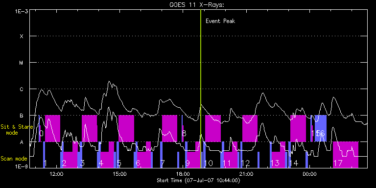 EIS Observation timeline overlay to GOES-Xray curve Code 1" 2" 40" 266" EIS Observations list for this event: STUDY ACRONYM ID DATE OBSERVED DESCRIPTION NOAA# TARGET 0 SYNOP001 | 3603 | 2007/07/07 11:10:27 | SYNOP001_40arcsec_1arcsec_30s_90s | | Quiet Sun TIMELINE ID DATE OBSERVED FITS FILE XCEN (+W/-E) YCEN (+N/-S) DUR ----------------------------------------------------------------------------------------------------------------- 3603 | 2007/07/07 11:10:27.000 | eis_l0_20070707_111027.fits.gz | 0.38 | 45.61 | 2m2s 3603 | 2007/07/07 11:12:43.000 | eis_l0_20070707_111243.fits.gz | 0.47 | 45.58 | 2m1s 1 ARdiag_sns | 3604 | 2007/07/07 11:22:34 | AR loop temperature and density analys | | Active Region TIMELINE ID DATE OBSERVED FITS FILE XCEN (+W/-E) YCEN (+N/-S) DUR ----------------------------------------------------------------------------------------------------------------- 3604 | 2007/07/07 11:22:34.000 | eis_l0_20070707_112234.fits.gz | 547.64 | 278.96 | 5m10s 3604 | 2007/07/07 11:27:55.000 | eis_l0_20070707_112755.fits.gz | 592.60 | 301.52 | 11s 3604 | 2007/07/07 11:28:08.000 | eis_l0_20070707_112808.fits.gz | 592.67 | 301.53 | 10s 3604 | 2007/07/07 11:28:21.000 | eis_l0_20070707_112821.fits.gz | 592.66 | 301.55 | 10s 3604 | 2007/07/07 11:28:34.000 | eis_l0_20070707_112834.fits.gz | 592.76 | 301.54 | 10s 3604 | 2007/07/07 11:28:47.000 | eis_l0_20070707_112847.fits.gz | 592.73 | 301.60 | 10s 3604 | 2007/07/07 11:29:00.000 | eis_l0_20070707_112900.fits.gz | 592.76 | 301.59 | 10s 3604 | 2007/07/07 11:29:13.000 | eis_l0_20070707_112913.fits.gz | 592.90 | 301.66 | 10s 3604 | 2007/07/07 11:29:25.000 | eis_l0_20070707_112925.fits.gz | 592.83 | 301.59 | 10s 3604 | 2007/07/07 11:29:38.000 | eis_l0_20070707_112938.fits.gz | 592.82 | 301.59 | 10s 3604 | 2007/07/07 11:29:51.000 | eis_l0_20070707_112951.fits.gz | 592.90 | 301.63 | 10s 3604 | 2007/07/07 11:30:04.000 | eis_l0_20070707_113004.fits.gz | 592.90 | 301.66 | 10s 3604 | 2007/07/07 11:30:17.000 | eis_l0_20070707_113017.fits.gz | 592.95 | 301.71 | 10s 3604 | 2007/07/07 11:30:30.000 | eis_l0_20070707_113030.fits.gz | 593.05 | 301.68 | 10s 3604 | 2007/07/07 11:30:43.000 | eis_l0_20070707_113043.fits.gz | 593.08 | 301.78 | 10s 3604 | 2007/07/07 11:30:55.000 | eis_l0_20070707_113055.fits.gz | 593.05 | 301.71 | 10s 3604 | 2007/07/07 11:31:08.000 | eis_l0_20070707_113108.fits.gz | 593.10 | 301.75 | 10s 3604 | 2007/07/07 11:31:21.000 | eis_l0_20070707_113121.fits.gz | 593.04 | 301.74 | 10s 3604 | 2007/07/07 11:31:34.000 | eis_l0_20070707_113134.fits.gz | 593.19 | 301.79 | 10s 3604 | 2007/07/07 11:31:46.000 | eis_l0_20070707_113146.fits.gz | 593.13 | 301.75 | 11s 3604 | 2007/07/07 11:31:59.000 | eis_l0_20070707_113159.fits.gz | 593.13 | 301.82 | 10s 3604 | 2007/07/07 11:32:12.000 | eis_l0_20070707_113212.fits.gz | 593.13 | 301.79 | 10s 3604 | 2007/07/07 11:32:25.000 | eis_l0_20070707_113225.fits.gz | 593.21 | 301.82 | 10s 3604 | 2007/07/07 11:32:38.000 | eis_l0_20070707_113238.fits.gz | 593.27 | 301.86 | 10s 3604 | 2007/07/07 11:32:50.000 | eis_l0_20070707_113250.fits.gz | 593.29 | 301.92 | 11s 3604 | 2007/07/07 11:33:03.000 | eis_l0_20070707_113303.fits.gz | 593.21 | 301.79 | 11s 3604 | 2007/07/07 11:33:16.000 | eis_l0_20070707_113316.fits.gz | 593.32 | 301.88 | 10s 3604 | 2007/07/07 11:33:29.000 | eis_l0_20070707_113329.fits.gz | 593.29 | 301.91 | 10s 3604 | 2007/07/07 11:33:42.000 | eis_l0_20070707_113342.fits.gz | 593.36 | 301.90 | 10s 3604 | 2007/07/07 11:33:55.000 | eis_l0_20070707_113355.fits.gz | 593.26 | 301.86 | 10s 3604 | 2007/07/07 11:34:08.000 | eis_l0_20070707_113408.fits.gz | 593.44 | 301.94 | 10s 3604 | 2007/07/07 11:34:20.000 | eis_l0_20070707_113420.fits.gz | 593.55 | 301.98 | 11s 3604 | 2007/07/07 11:34:33.000 | eis_l0_20070707_113433.fits.gz | 593.44 | 301.98 | 10s 3604 | 2007/07/07 11:34:46.000 | eis_l0_20070707_113446.fits.gz | 593.44 | 301.98 | 10s 3604 | 2007/07/07 11:34:59.000 | eis_l0_20070707_113459.fits.gz | 593.52 | 302.02 | 10s 3604 | 2007/07/07 11:35:12.000 | eis_l0_20070707_113512.fits.gz | 593.53 | 302.03 | 10s 3604 | 2007/07/07 11:35:25.000 | eis_l0_20070707_113525.fits.gz | 593.62 | 301.97 | 10s 3604 | 2007/07/07 11:35:37.000 | eis_l0_20070707_113537.fits.gz | 593.53 | 302.06 | 11s 3604 | 2007/07/07 11:35:50.000 | eis_l0_20070707_113550.fits.gz | 593.59 | 302.02 | 10s 3604 | 2007/07/07 11:36:03.000 | eis_l0_20070707_113603.fits.gz | 593.59 | 302.06 | 10s 3604 | 2007/07/07 11:36:16.000 | eis_l0_20070707_113616.fits.gz | 593.65 | 302.07 | 10s 3604 | 2007/07/07 11:36:29.000 | eis_l0_20070707_113629.fits.gz | 593.75 | 302.10 | 10s 3604 | 2007/07/07 11:36:42.000 | eis_l0_20070707_113642.fits.gz | 593.81 | 302.13 | 10s 3604 | 2007/07/07 11:36:54.000 | eis_l0_20070707_113654.fits.gz | 593.75 | 302.08 | 11s 3604 | 2007/07/07 11:37:07.000 | eis_l0_20070707_113707.fits.gz | 593.83 | 302.17 | 10s 3604 | 2007/07/07 11:37:20.000 | eis_l0_20070707_113720.fits.gz | 593.83 | 302.16 | 10s 3604 | 2007/07/07 11:37:33.000 | eis_l0_20070707_113733.fits.gz | 593.82 | 302.22 | 10s 3604 | 2007/07/07 11:37:46.000 | eis_l0_20070707_113746.fits.gz | 593.85 | 302.17 | 10s 3604 | 2007/07/07 11:37:59.000 | eis_l0_20070707_113759.fits.gz | 593.81 | 302.22 | 10s 3604 | 2007/07/07 11:38:12.000 | eis_l0_20070707_113812.fits.gz | 593.96 | 302.21 | 10s 3604 | 2007/07/07 11:38:24.000 | eis_l0_20070707_113824.fits.gz | 593.84 | 302.21 | 11s 3604 | 2007/07/07 11:38:37.000 | eis_l0_20070707_113837.fits.gz | 593.98 | 302.25 | 10s 3604 | 2007/07/07 11:38:50.000 | eis_l0_20070707_113850.fits.gz | 593.98 | 302.23 | 10s 3604 | 2007/07/07 11:39:03.000 | eis_l0_20070707_113903.fits.gz | 593.90 | 302.17 | 10s 3604 | 2007/07/07 11:39:16.000 | eis_l0_20070707_113916.fits.gz | 593.78 | 302.15 | 10s 3604 | 2007/07/07 11:39:29.000 | eis_l0_20070707_113929.fits.gz | 593.84 | 302.18 | 10s 3604 | 2007/07/07 11:39:42.000 | eis_l0_20070707_113942.fits.gz | 593.99 | 302.22 | 10s 3604 | 2007/07/07 11:39:54.000 | eis_l0_20070707_113954.fits.gz | 594.14 | 302.27 | 10s 3604 