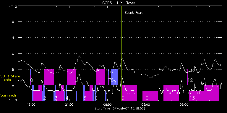 EIS Observation timeline overlay to GOES-Xray curve Code 1" 2" 40" 266" EIS Observations list for this event: STUDY ACRONYM ID DATE OBSERVED DESCRIPTION NOAA# TARGET 0 SYNOP001 | 3611 | 2007/07/07 17:56:13 | SYNOP001_40arcsec_1arcsec_30s_90s | | Quiet Sun TIMELINE ID DATE OBSERVED FITS FILE XCEN (+W/-E) YCEN (+N/-S) DUR ----------------------------------------------------------------------------------------------------------------- 3611 | 2007/07/07 17:56:13.000 | eis_l0_20070707_175613.fits.gz | 0.37 | 45.57 | 2m2s 3611 | 2007/07/07 17:58:29.000 | eis_l0_20070707_175829.fits.gz | 0.36 | 45.53 | 2m1s 1 ARdiagn_hcadrast | 3612 | 2007/07/07 18:06:34 | AR temperature and density diagnostics | | Active Region TIMELINE ID DATE OBSERVED FITS FILE XCEN (+W/-E) YCEN (+N/-S) DUR ----------------------------------------------------------------------------------------------------------------- 3612 | 2007/07/07 18:06:34.000 | eis_l0_20070707_180634.fits.gz | 596.47 | 304.34 | 5m10s 3612 | 2007/07/07 18:11:55.000 | eis_l0_20070707_181155.fits.gz | 578.63 | 295.43 | 23m57s 3612 | 2007/07/07 18:35:56.000 | eis_l0_20070707_183556.fits.gz | 580.87 | 284.62 | 13m40s 3612 | 2007/07/07 18:50:01.000 | eis_l0_20070707_185001.fits.gz | 601.52 | 306.95 | 5m10s 2 ARdiag_sns | 3613 | 2007/07/07 18:58:13 | AR loop temperature and density analys | | Active Region TIMELINE ID DATE OBSERVED FITS FILE XCEN (+W/-E) YCEN (+N/-S) DUR ----------------------------------------------------------------------------------------------------------------- 3613 | 2007/07/07 18:58:13.000 | eis_l0_20070707_185813.fits.gz | 602.48 | 307.46 | 5m9s 3613 | 2007/07/07 19:03:34.000 | eis_l0_20070707_190334.fits.gz | 552.71 | 282.60 | 10s 3613 | 2007/07/07 19:03:47.000 | eis_l0_20070707_190347.fits.gz | 552.73 | 282.59 | 10s 3613 | 2007/07/07 19:04:00.000 | eis_l0_20070707_190400.fits.gz | 552.66 | 282.60 | 10s 3613 | 2007/07/07 19:04:13.000 | eis_l0_20070707_190413.fits.gz | 552.74 | 282.68 | 10s 3613 | 2007/07/07 19:04:26.000 | eis_l0_20070707_190426.fits.gz | 552.88 | 282.66 | 10s 3613 | 2007/07/07 19:04:38.000 | eis_l0_20070707_190438.fits.gz | 552.72 | 282.63 | 10s 3613 | 2007/07/07 19:04:51.000 | eis_l0_20070707_190451.fits.gz | 552.90 | 282.67 | 10s 3613 | 2007/07/07 19:05:04.000 | eis_l0_20070707_190504.fits.gz | 552.85 | 282.67 | 10s 3613 | 2007/07/07 19:05:17.000 | eis_l0_20070707_190517.fits.gz | 552.79 | 282.71 | 10s 3613 | 2007/07/07 19:05:30.000 | eis_l0_20070707_190530.fits.gz | 552.97 | 282.74 | 10s 3613 | 2007/07/07 19:05:43.000 | eis_l0_20070707_190543.fits.gz | 552.97 | 282.71 | 10s 3613 | 2007/07/07 19:05:55.000 | eis_l0_20070707_190555.fits.gz | 553.02 | 282.74 | 11s 3613 | 2007/07/07 19:06:08.000 | eis_l0_20070707_190608.fits.gz | 553.08 | 282.73 | 10s 3613 | 2007/07/07 19:06:21.000 | eis_l0_20070707_190621.fits.gz | 553.05 | 282.75 | 10s 3613 | 2007/07/07 19:06:34.000 | eis_l0_20070707_190634.fits.gz | 553.04 | 282.76 | 10s 3613 | 2007/07/07 19:06:47.000 | eis_l0_20070707_190647.fits.gz | 553.04 | 282.75 | 10s 3613 | 2007/07/07 19:07:00.000 | eis_l0_20070707_190700.fits.gz | 553.30 | 282.88 | 10s 3613 | 2007/07/07 19:07:13.000 | eis_l0_20070707_190713.fits.gz | 553.13 | 282.83 | 10s 3613 | 2007/07/07 19:07:25.000 | eis_l0_20070707_190725.fits.gz | 553.13 | 282.76 | 10s 3613 | 2007/07/07 19:07:38.000 | eis_l0_20070707_190738.fits.gz | 553.21 | 282.81 | 10s 3613 | 2007/07/07 19:07:51.000 | eis_l0_20070707_190751.fits.gz | 553.21 | 282.87 | 10s 3613 | 2007/07/07 19:08:04.000 | eis_l0_20070707_190804.fits.gz | 553.28 | 282.84 | 10s 3613 | 2007/07/07 19:08:17.000 | eis_l0_20070707_190817.fits.gz | 553.38 | 282.91 | 10s 3613 | 2007/07/07 19:08:29.000 | eis_l0_20070707_190829.fits.gz | 553.35 | 282.94 | 10s 3613 | 2007/07/07 19:08:42.000 | eis_l0_20070707_190842.fits.gz | 553.40 | 282.88 | 10s 3613 | 2007/07/07 19:08:55.000 | eis_l0_20070707_190855.fits.gz | 553.28 | 282.82 | 10s 3613 | 2007/07/07 19:09:08.000 | eis_l0_20070707_190908.fits.gz | 553.34 | 282.89 | 10s 3613 | 2007/07/07 19:09:21.000 | eis_l0_20070707_190921.fits.gz | 553.36 | 282.85 | 10s 3613 | 2007/07/07 19:09:33.000 | eis_l0_20070707_190933.fits.gz | 553.44 | 282.94 | 11s 3613 | 2007/07/07 19:09:46.000 | eis_l0_20070707_190946.fits.gz | 553.33 | 282.94 | 10s 3613 | 2007/07/07 19:09:59.000 | eis_l0_20070707_190959.fits.gz | 553.43 | 282.98 | 10s 3613 | 2007/07/07 19:10:12.000 | eis_l0_20070707_191012.fits.gz | 553.48 | 282.98 | 10s 3613 | 2007/07/07 19:10:25.000 | eis_l0_20070707_191025.fits.gz | 553.52 | 282.98 | 10s 3613 | 2007/07/07 19:10:38.000 | eis_l0_20070707_191038.fits.gz | 553.52 | 283.04 | 10s 3613 | 2007/07/07 19:10:51.000 | eis_l0_20070707_191051.fits.gz | 553.49 | 282.97 | 10s 3613 | 2007/07/07 19:11:03.000 | eis_l0_20070707_191103.fits.gz | 553.54 | 283.06 | 11s 3613 | 2007/07/07 19:11:16.000 | eis_l0_20070707_191116.fits.gz | 553.48 | 283.00 | 10s 3613 | 2007/07/07 19:11:29.000 | eis_l0_20070707_191129.fits.gz | 553.67 | 283.06 | 10s 3613 | 2007/07/07 19:11:42.000 | eis_l0_20070707_191142.fits.gz | 553.71 | 283.12 | 10s 3613 | 2007/07/07 19:11:55.000 | eis_l0_20070707_191155.fits.gz | 553.66 | 283.06 | 10s 3613 | 2007/07/07 19:12:08.000 | eis_l0_20070707_191208.fits.gz | 553.75 | 283.07 | 10s 3613 | 2007/07/07 19:12:21.000 | eis_l0_20070707_191221.fits.gz | 553.77 | 283.14 | 10s 3613 | 2007/07/07 19:12:33.000 | eis_l0_20070707_191233.fits.gz | 553.88 | 283.17 | 11s 3613 | 2007/07/07 19:12:46.000 | eis_l0_20070707_191246.fits.gz | 553.75 | 283.14 | 10s 3613 | 2007/07/07 19:12:59.000 | eis_l0_20070707_191259.fits.gz | 553.82 | 283.14 | 10s 3613 | 2007/07/07 19:13:12.000 | eis_l0_20070707_191312.fits.gz | 553.82 | 283.16 | 10s 3613 | 2007/07/07 19:13:25.000 | eis_l0_20070707_191325.fits.gz | 554.01 | 283.27 | 10s 3613 | 2007/07/07 19:13:37.000 | eis_l0_20070707_191337.fits.gz | 553.90 | 283.17 | 10s 3613 | 2007/07/07 19:13:50.000 | eis_l0_20070707_191350.fits.gz | 554.01 | 283.28 | 10s 3613 | 2007/07/07 19:14:03.000 | eis_l0_20070707_191403.fits.