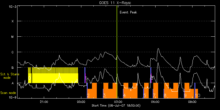 EIS Observation timeline overlay to GOES-Xray curve Code 1" 2" 40" 266" EIS Observations list for this event: STUDY ACRONYM ID DATE OBSERVED DESCRIPTION NOAA# TARGET 0 Alignment_266 | 3632 | 2007/07/08 19:42:19 | Alignment slot 266 | 963 | Quiet Sun TIMELINE ID DATE OBSERVED FITS FILE XCEN (+W/-E) YCEN (+N/-S) DUR ----------------------------------------------------------------------------------------------------------------- 3632 | 2007/07/08 19:42:19.000 | eis_l0_20070708_194219.fits.gz | 14.35 | 116.66 | 1m23s 3632 | 2007/07/08 19:44:23.000 | eis_l0_20070708_194423.fits.gz | 14.68 | 116.82 | 1m22s 3632 | 2007/07/08 19:46:27.000 | eis_l0_20070708_194627.fits.gz | 14.97 | 116.95 | 1m22s 3632 | 2007/07/08 19:48:31.000 | eis_l0_20070708_194831.fits.gz | 15.33 | 117.13 | 1m22s 3632 | 2007/07/08 19:50:35.000 | eis_l0_20070708_195035.fits.gz | 15.62 | 117.31 | 1m21s 3632 | 2007/07/08 19:52:38.000 | eis_l0_20070708_195238.fits.gz | 15.92 | 117.51 | 1m22s 3632 | 2007/07/08 19:54:42.000 | eis_l0_20070708_195442.fits.gz | 16.23 | 117.63 | 1m22s 3632 | 2007/07/08 19:56:46.000 | eis_l0_20070708_195646.fits.gz | 16.56 | 117.78 | 1m22s 3632 | 2007/07/08 20:02:57.000 | eis_l0_20070708_200257.fits.gz | 0.36 | 574.52 | 1m22s 3632 | 2007/07/08 20:05:01.000 | eis_l0_20070708_200501.fits.gz | 0.35 | 574.47 | 1m22s 3632 | 2007/07/08 20:07:05.000 | eis_l0_20070708_200705.fits.gz | 0.41 | 574.50 | 1m22s 3632 | 2007/07/08 20:09:09.000 | eis_l0_20070708_200909.fits.gz | 0.49 | 574.47 | 1m22s 3632 | 2007/07/08 20:11:13.000 | eis_l0_20070708_201113.fits.gz | 0.48 | 574.51 | 1m22s 3632 | 2007/07/08 20:13:16.000 | eis_l0_20070708_201316.fits.gz | 0.47 | 574.50 | 1m22s 3632 | 2007/07/08 20:15:20.000 | eis_l0_20070708_201520.fits.gz | 0.41 | 574.51 | 1m22s 3632 | 2007/07/08 20:17:24.000 | eis_l0_20070708_201724.fits.gz | 0.48 | 574.54 | 1m22s 3632 | 2007/07/08 20:19:28.000 | eis_l0_20070708_201928.fits.gz | 0.46 | 574.48 | 1m21s 3632 | 2007/07/08 20:21:31.000 | eis_l0_20070708_202131.fits.gz | 0.50 | 574.49 | 1m22s 3632 | 2007/07/08 20:23:35.000 | eis_l0_20070708_202335.fits.gz | 0.44 | 574.54 | 1m22s 3632 | 2007/07/08 20:25:39.000 | eis_l0_20070708_202539.fits.gz | 0.45 | 574.49 | 1m22s 3632 | 2007/07/08 20:27:43.000 | eis_l0_20070708_202743.fits.gz | 0.43 | 574.45 | 1m22s 3632 | 2007/07/08 20:29:47.000 | eis_l0_20070708_202947.fits.gz | 0.38 | 574.50 | 1m22s 3632 | 2007/07/08 20:31:51.000 | eis_l0_20070708_203151.fits.gz | 0.37 | 574.48 | 1m22s 3632 | 2007/07/08 20:33:54.000 | eis_l0_20070708_203354.fits.gz | 0.40 | 574.46 | 1m22s 3632 | 2007/07/08 20:35:58.000 | eis_l0_20070708_203558.fits.gz | 0.53 | 574.52 | 1m22s 3632 | 2007/07/08 20:38:02.000 | eis_l0_20070708_203802.fits.gz | 0.45 | 574.48 | 1m22s 3632 | 2007/07/08 20:40:06.000 | eis_l0_20070708_204006.fits.gz | 0.41 | 574.58 | 1m22s 3632 | 2007/07/08 20:42:10.000 | eis_l0_20070708_204210.fits.gz | 0.42 | 574.57 | 1m22s 3632 | 2007/07/08 20:44:13.000 | eis_l0_20070708_204413.fits.gz | 0.46 | 574.51 | 1m22s 3632 | 2007/07/08 20:46:17.000 | eis_l0_20070708_204617.fits.gz | 0.48 | 574.52 | 1m22s 3632 | 2007/07/08 20:48:21.000 | eis_l0_20070708_204821.fits.gz | 0.47 | 574.48 | 1m22s 3632 | 2007/07/08 20:50:25.000 | eis_l0_20070708_205025.fits.gz | 0.29 | 574.52 | 1m22s 3632 | 2007/07/08 20:52:28.000 | eis_l0_20070708_205228.fits.gz | 0.44 | 574.52 | 1m22s 3632 | 2007/07/08 20:54:32.000 | eis_l0_20070708_205432.fits.gz | 0.40 | 574.50 | 1m22s 3632 | 2007/07/08 20:56:36.000 | eis_l0_20070708_205636.fits.gz | 0.45 | 574.47 | 1m22s 3632 | 2007/07/08 20:58:40.000 | eis_l0_20070708_205840.fits.gz | 0.46 | 574.54 | 1m22s 3632 | 2007/07/08 21:00:44.000 | eis_l0_20070708_210044.fits.gz | 0.44 | 574.51 | 1m22s 3632 | 2007/07/08 21:02:47.000 | eis_l0_20070708_210247.fits.gz | 0.46 | 574.48 | 1m22s 3632 | 2007/07/08 21:04:51.000 | eis_l0_20070708_210451.fits.gz | 0.43 | 574.50 | 1m22s 3632 | 2007/07/08 21:06:55.000 | eis_l0_20070708_210655.fits.gz | 0.46 | 574.51 | 1m22s 3632 | 2007/07/08 21:08:59.000 | eis_l0_20070708_210859.fits.gz | 0.37 | 574.52 | 1m22s 3632 | 2007/07/08 21:11:03.000 | eis_l0_20070708_211103.fits.gz | 0.44 | 574.52 | 1m22s 3632 | 2007/07/08 21:13:06.000 | eis_l0_20070708_211306.fits.gz | 0.43 | 574.56 | 1m22s 3632 | 2007/07/08 21:15:10.000 | eis_l0_20070708_211510.fits.gz | 0.40 | 574.51 | 1m22s 3632 | 2007/07/08 21:17:14.000 | eis_l0_20070708_211714.fits.gz | 0.45 | 574.49 | 1m22s 3632 | 2007/07/08 21:19:18.000 | eis_l0_20070708_211918.fits.gz | 0.42 | 574.46 | 1m22s 3632 | 2007/07/08 21:21:22.000 | eis_l0_20070708_212122.fits.gz | 0.42 | 574.51 | 1m22s 3632 | 2007/07/08 21:23:26.000 | eis_l0_20070708_212326.fits.gz | 0.44 | 574.52 | 1m21s 3632 | 2007/07/08 21:25:29.000 | eis_l0_20070708_212529.fits.gz | 0.37 | 574.49 | 1m22s 3632 | 2007/07/08 21:27:33.000 | eis_l0_20070708_212733.fits.gz | 0.44 | 574.49 | 1m22s 3632 | 2007/07/08 21:29:37.000 | eis_l0_20070708_212937.fits.gz | 0.41 | 574.51 | 1m22s 3632 | 2007/07/08 21:31:41.000 | eis_l0_20070708_213141.fits.gz | 0.44 | 574.48 | 1m22s 3632 | 2007/07/08 21:33:44.000 | eis_l0_20070708_213344.fits.gz | 0.48 | 574.46 | 1m22s 3632 | 2007/07/08 21:35:48.000 | eis_l0_20070708_213548.fits.gz | 0.40 | 574.47 | 1m22s 3632 | 2007/07/08 21:37:52.000 | eis_l0_20070708_213752.fits.gz | 0.41 | 574.46 | 1m22s 3632 | 2007/07/08 21:39:56.000 | eis_l0_20070708_213956.fits.gz | 0.37 | 574.57 | 1m22s 3632 | 2007/07/08 21:41:59.000 | eis_l0_20070708_214159.fits.gz | 0.44 | 574.52 | 1m23s 3632 | 2007/07/08 21:44:03.000 | eis_l0_20070708_214403.fits.gz | 0.48 | 574.54 | 1m22s 3632 | 2007/07/08 21:46:07.000 | eis_l0_20070708_214607.fits.gz | 0.47 | 574.50 | 1m22s 3632 | 2007/07/08 21:48:11.000 | eis_l0_20070708_214811.fits.gz | 0.44 | 574.49 | 1m22s 3632 | 2007/07/08 21:50:15.000 | eis_l0_20070708_215015.fits.gz | 0.45 | 574.53 | 1m22s 3632 | 2007/07/08 21:52:19.000 | eis_l0_20070708_215219.fits.gz | 0.41 | 574.47 | 1m22s 3632 | 2007/07/08 21:54:22.000 | eis_l0_20070708_215422.fits.gz | 0.48 | 574.47 | 1m22s 3632 | 2007/07/08 