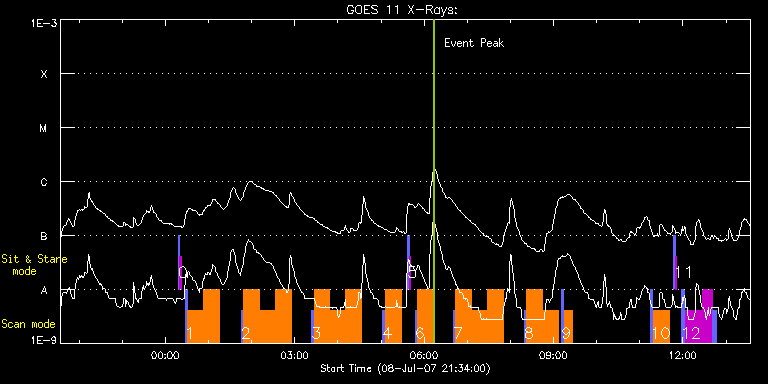EIS Observation timeline overlay to GOES-Xray curve Code 1" 2" 40" 266" EIS Observations list for this event: STUDY ACRONYM ID DATE OBSERVED DESCRIPTION NOAA# TARGET 0 SYNOP001 | 3633 | 2007/07/09 00:17:29 | SYNOP001_40arcsec_1arcsec_30s_90s | | Quiet Sun TIMELINE ID DATE OBSERVED FITS FILE XCEN (+W/-E) YCEN (+N/-S) DUR ----------------------------------------------------------------------------------------------------------------- 3633 | 2007/07/09 00:17:29.000 | eis_l0_20070709_001729.fits.gz | 0.51 | 45.60 | 2m1s 3633 | 2007/07/09 00:19:44.000 | eis_l0_20070709_001944.fits.gz | 0.48 | 45.67 | 2m2s 1 PRY_footpoints_v2 | 3634 | 2007/07/09 00:27:33 | Loop footpoints study - many cool line | | Active Region TIMELINE ID DATE OBSERVED FITS FILE XCEN (+W/-E) YCEN (+N/-S) DUR ----------------------------------------------------------------------------------------------------------------- 3634 | 2007/07/09 00:27:33.000 | eis_l0_20070709_002733.fits.gz | 396.33 | 661.27 | 2m57s 3634 | 2007/07/09 00:30:56.000 | eis_l0_20070709_003056.fits.gz | 378.35 | 584.24 | 22m7s 3634 | 2007/07/09 00:53:08.000 | eis_l0_20070709_005308.fits.gz | 379.73 | 584.92 | 22m7s 2 PRY_footpoints_v2 | 3635 | 2007/07/09 01:45:19 | Loop footpoints study - many cool line | | Active Region TIMELINE ID DATE OBSERVED FITS FILE XCEN (+W/-E) YCEN (+N/-S) DUR ----------------------------------------------------------------------------------------------------------------- 3635 | 2007/07/09 01:45:19.000 | eis_l0_20070709_014519.fits.gz | 404.24 | 663.77 | 2m57s 3635 | 2007/07/09 01:48:42.000 | eis_l0_20070709_014842.fits.gz | 383.20 | 586.77 | 22m7s 3635 | 2007/07/09 02:10:54.000 | eis_l0_20070709_021054.fits.gz | 384.63 | 587.49 | 22m7s 3635 | 2007/07/09 02:33:05.000 | eis_l0_20070709_023305.fits.gz | 386.00 | 588.27 | 22m8s 3 PRY_footpoints_v2 | 3636 | 2007/07/09 03:23:19 | Loop footpoints study - many cool line | | Active Region TIMELINE ID DATE OBSERVED FITS FILE XCEN (+W/-E) YCEN (+N/-S) DUR ----------------------------------------------------------------------------------------------------------------- 3636 | 2007/07/09 03:23:19.000 | eis_l0_20070709_032319.fits.gz | 407.24 | 666.89 | 2m57s 3636 | 2007/07/09 03:26:42.000 | eis_l0_20070709_032642.fits.gz | 389.28 | 589.94 | 22m7s 3636 | 2007/07/09 03:48:53.000 | eis_l0_20070709_034853.fits.gz | 390.68 | 590.66 | 22m8s 3636 | 2007/07/09 04:11:05.000 | eis_l0_20070709_041105.fits.gz | 392.05 | 591.40 | 22m8s 4 PRY_footpoints_v2 | 3637 | 2007/07/09 05:02:19 | Loop footpoints study - many cool line | | Active Region TIMELINE ID DATE OBSERVED FITS FILE XCEN (+W/-E) YCEN (+N/-S) DUR ----------------------------------------------------------------------------------------------------------------- 3637 | 2007/07/09 05:02:19.000 | eis_l0_20070709_050219.fits.gz | 413.09 | 669.96 | 2m57s 3637 | 2007/07/09 05:05:42.000 | eis_l0_20070709_050542.fits.gz | 395.37 | 593.16 | 22m7s 5 SYNOP001 | 3638 | 2007/07/09 05:37:19 | SYNOP001_40arcsec_1arcsec_30s_90s | | Quiet Sun TIMELINE ID DATE OBSERVED FITS FILE XCEN (+W/-E) YCEN (+N/-S) DUR ----------------------------------------------------------------------------------------------------------------- 3638 | 2007/07/09 05:37:19.000 | eis_l0_20070709_053719.fits.gz | 0.42 | 45.52 | 2m1s 3638 | 2007/07/09 05:39:34.000 | eis_l0_20070709_053934.fits.gz | 0.42 | 45.56 | 2m2s 6 PRY_footpoints_v2 | 3639 | 2007/07/09 05:47:33 | Loop footpoints study - many cool line | | Active Region TIMELINE ID DATE OBSERVED FITS FILE XCEN (+W/-E) YCEN (+N/-S) DUR ----------------------------------------------------------------------------------------------------------------- 3639 | 2007/07/09 05:47:33.000 | eis_l0_20070709_054733.fits.gz | 416.07 | 671.59 | 2m57s 3639 | 2007/07/09 05:50:56.000 | eis_l0_20070709_055056.fits.gz | 398.12 | 594.60 | 22m7s 7 PRY_footpoints_v2 | 3640 | 2007/07/09 06:40:19 | Loop footpoints study - many cool line | | Active Region TIMELINE ID DATE OBSERVED FITS FILE XCEN (+W/-E) YCEN (+N/-S) DUR ----------------------------------------------------------------------------------------------------------------- 3640 | 2007/07/09 06:40:19.000 | eis_l0_20070709_064019.fits.gz | 419.22 | 673.18 | 2m57s 3640 | 2007/07/09 06:43:42.000 | eis_l0_20070709_064342.fits.gz | 401.33 | 596.23 | 22m7s 3640 | 2007/07/09 07:05:53.000 | eis_l0_20070709_070553.fits.gz | 402.68 | 596.93 | 22m7s 3640 | 2007/07/09 07:28:05.000 | eis_l0_20070709_072805.fits.gz | 403.98 | 597.63 | 22m7s 8 PRY_footpoints_v2 | 3641 | 2007/07/09 08:19:19 | Loop footpoints study - many cool line | | Active Region TIMELINE ID DATE OBSERVED FITS FILE XCEN (+W/-E) YCEN (+N/-S) DUR ----------------------------------------------------------------------------------------------------------------- 3641 | 2007/07/09 08:19:19.000 | eis_l0_20070709_081919.fits.gz | 425.12 | 676.54 | 2m56s 3641 | 2007/07/09 08:22:41.000 | eis_l0_20070709_082241.fits.gz | 407.23 | 599.34 | 22m7s 3641 | 2007/07/09 08:44:53.000 | eis_l0_20070709_084453.fits.gz | 408.48 | 599.98 | 22m6s 9 PRY_footpoints_v2 | 3642 | 2007/07/09 09:11:19 | Loop footpoints study - many cool line | | Active Region TIMELINE ID DATE OBSERVED FITS FILE XCEN (+W/-E) YCEN (+N/-S) DUR ----------------------------------------------------------------------------------------------------------------- 3642 | 2007/07/09 09:11:19.000 | eis_l0_20070709_091119.fits.gz | 428.33 | 677.93 | 2m57s 3642 | 2007/07/09 09:14:42.000 | eis_l0_20070709_091442.fits.gz | 432.94 | 612.27 | 11m56s 10 PRY_footpoints_v2 | 3643 | 2007/07/09 11:15:20 | Loop footpoints study - many cool line | 963 | Active Region TIMELINE ID DATE OBSERVED FITS FILE XCEN (+W/-E) YCEN (+N/-S) DUR ----------------------------------------------------------------------------------------------------------------- 3643 | 2007/07/09 11:15:20.000 | eis_l0_20070709_111520.fits.gz | -843.54 | -376.13 | 2m56s 3643 | 2007/07/09 11:18:42.000 | eis_l0_20070709_111842.fits.gz | -861.56 | -453.19 | 22m7s 11 SYNOP