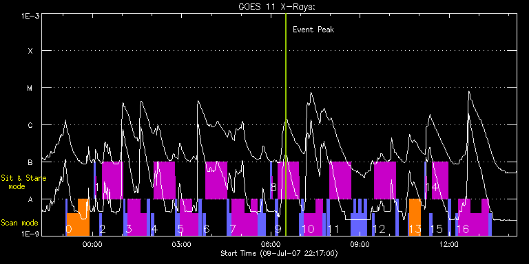 EIS Observation timeline overlay to GOES-Xray curve Code 1" 2" 40" 266" EIS Observations list for this event: STUDY ACRONYM ID DATE OBSERVED DESCRIPTION NOAA# TARGET 0 PRY_footpoints_v2 | 3656 | 2007/07/09 23:05:20 | Loop footpoints study - many cool line | | Active Region TIMELINE ID DATE OBSERVED FITS FILE XCEN (+W/-E) YCEN (+N/-S) DUR ----------------------------------------------------------------------------------------------------------------- 3656 | 2007/07/09 23:05:20.000 | eis_l0_20070709_230520.fits.gz | 474.63 | 702.35 | 2m56s 3656 | 2007/07/09 23:08:42.000 | eis_l0_20070709_230842.fits.gz | 456.64 | 625.40 | 22m7s 3656 | 2007/07/09 23:30:54.000 | eis_l0_20070709_233054.fits.gz | 457.84 | 626.00 | 22m7s 1 SYNOP001 | 3657 | 2007/07/10 00:03:20 | SYNOP001_40arcsec_1arcsec_30s_90s | | Quiet Sun TIMELINE ID DATE OBSERVED FITS FILE XCEN (+W/-E) YCEN (+N/-S) DUR ----------------------------------------------------------------------------------------------------------------- 3657 | 2007/07/10 00:03:20.000 | eis_l0_20070710_000320.fits.gz | 0.37 | 45.57 | 2m1s 3657 | 2007/07/10 00:05:35.000 | eis_l0_20070710_000535.fits.gz | 0.41 | 45.55 | 2m1s 2 ARdiag_sns | 3658 | 2007/07/10 00:13:34 | AR loop temperature and density analys | 963 | Active Region TIMELINE ID DATE OBSERVED FITS FILE XCEN (+W/-E) YCEN (+N/-S) DUR ----------------------------------------------------------------------------------------------------------------- 3658 | 2007/07/10 00:13:34.000 | eis_l0_20070710_001334.fits.gz | -790.52 | -353.42 | 5m9s 3658 | 2007/07/10 00:18:55.000 | eis_l0_20070710_001855.fits.gz | -805.12 | -360.65 | 10s 3658 | 2007/07/10 00:19:08.000 | eis_l0_20070710_001908.fits.gz | -805.05 | -360.67 | 10s 3658 | 2007/07/10 00:19:20.000 | eis_l0_20070710_001920.fits.gz | -804.97 | -360.61 | 11s 3658 | 2007/07/10 00:19:33.000 | eis_l0_20070710_001933.fits.gz | -805.00 | -360.61 | 10s 3658 | 2007/07/10 00:19:46.000 | eis_l0_20070710_001946.fits.gz | -804.96 | -360.57 | 10s 3658 | 2007/07/10 00:19:59.000 | eis_l0_20070710_001959.fits.gz | -804.97 | -360.61 | 10s 3658 | 2007/07/10 00:20:12.000 | eis_l0_20070710_002012.fits.gz | -804.88 | -360.56 | 10s 3658 | 2007/07/10 00:20:25.000 | eis_l0_20070710_002025.fits.gz | -804.97 | -360.57 | 10s 3658 | 2007/07/10 00:20:38.000 | eis_l0_20070710_002038.fits.gz | -804.90 | -360.52 | 10s 3658 | 2007/07/10 00:20:50.000 | eis_l0_20070710_002050.fits.gz | -804.90 | -360.58 | 10s 3658 | 2007/07/10 00:21:03.000 | eis_l0_20070710_002103.fits.gz | -804.85 | -360.54 | 10s 3658 | 2007/07/10 00:21:16.000 | eis_l0_20070710_002116.fits.gz | -804.90 | -360.58 | 10s 3658 | 2007/07/10 00:21:29.000 | eis_l0_20070710_002129.fits.gz | -804.84 | -360.51 | 10s 3658 | 2007/07/10 00:21:42.000 | eis_l0_20070710_002142.fits.gz | -804.82 | -360.54 | 10s 3658 | 2007/07/10 00:21:55.000 | eis_l0_20070710_002155.fits.gz | -804.81 | -360.47 | 10s 3658 | 2007/07/10 00:22:08.000 | eis_l0_20070710_002208.fits.gz | -804.79 | -360.52 | 10s 3658 | 2007/07/10 00:22:20.000 | eis_l0_20070710_002220.fits.gz | -804.74 | -360.46 | 11s 3658 | 2007/07/10 00:22:33.000 | eis_l0_20070710_002233.fits.gz | -804.82 | -360.47 | 10s 3658 | 2007/07/10 00:22:46.000 | eis_l0_20070710_002246.fits.gz | -804.84 | -360.51 | 10s 3658 | 2007/07/10 00:22:59.000 | eis_l0_20070710_002259.fits.gz | -804.74 | -360.46 | 10s 3658 | 2007/07/10 00:23:12.000 | eis_l0_20070710_002312.fits.gz | -804.63 | -360.39 | 10s 3658 | 2007/07/10 00:23:24.000 | eis_l0_20070710_002324.fits.gz | -804.74 | -360.50 | 11s 3658 | 2007/07/10 00:23:37.000 | eis_l0_20070710_002337.fits.gz | -804.74 | -360.46 | 10s 3658 | 2007/07/10 00:23:50.000 | eis_l0_20070710_002350.fits.gz | -804.58 | -360.41 | 10s 3658 | 2007/07/10 00:24:03.000 | eis_l0_20070710_002403.fits.gz | -804.67 | -360.40 | 10s 3658 | 2007/07/10 00:24:16.000 | eis_l0_20070710_002416.fits.gz | -804.52 | -360.43 | 10s 3658 | 2007/07/10 00:24:29.000 | eis_l0_20070710_002429.fits.gz | -804.52 | -360.42 | 10s 3658 | 2007/07/10 00:24:41.000 | eis_l0_20070710_002441.fits.gz | -804.63 | -360.40 | 11s 3658 | 2007/07/10 00:24:54.000 | eis_l0_20070710_002454.fits.gz | -804.50 | -360.42 | 10s 3658 | 2007/07/10 00:25:07.000 | eis_l0_20070710_002507.fits.gz | -804.64 | -360.42 | 10s 3658 | 2007/07/10 00:25:20.000 | eis_l0_20070710_002520.fits.gz | -804.61 | -360.43 | 10s 3658 | 2007/07/10 00:25:33.000 | eis_l0_20070710_002533.fits.gz | -804.51 | -360.38 | 10s 3658 | 2007/07/10 00:25:46.000 | eis_l0_20070710_002546.fits.gz | -804.51 | -360.36 | 10s 3658 | 2007/07/10 00:25:58.000 | eis_l0_20070710_002558.fits.gz | -804.51 | -360.34 | 10s 3658 | 2007/07/10 00:26:11.000 | eis_l0_20070710_002611.fits.gz | -804.54 | -360.37 | 10s 3658 | 2007/07/10 00:26:24.000 | eis_l0_20070710_002624.fits.gz | -804.43 | -360.33 | 10s 3658 | 2007/07/10 00:26:37.000 | eis_l0_20070710_002637.fits.gz | -804.43 | -360.31 | 10s 3658 | 2007/07/10 00:26:50.000 | eis_l0_20070710_002650.fits.gz | -804.43 | -360.30 | 10s 3658 | 2007/07/10 00:27:03.000 | eis_l0_20070710_002703.fits.gz | -804.43 | -360.30 | 10s 3658 | 2007/07/10 00:27:15.000 | eis_l0_20070710_002715.fits.gz | -804.43 | -360.32 | 11s 3658 | 2007/07/10 00:27:28.000 | eis_l0_20070710_002728.fits.gz | -804.36 | -360.31 | 10s 3658 | 2007/07/10 00:27:41.000 | eis_l0_20070710_002741.fits.gz | -804.38 | -360.28 | 10s 3658 | 2007/07/10 00:27:54.000 | eis_l0_20070710_002754.fits.gz | -804.36 | -360.32 | 10s 3658 | 2007/07/10 00:28:07.000 | eis_l0_20070710_002807.fits.gz | -804.29 | -360.30 | 10s 3658 | 2007/07/10 00:28:19.000 | eis_l0_20070710_002819.fits.gz | -804.32 | -360.29 | 11s 3658 | 2007/07/10 00:28:32.000 | eis_l0_20070710_002832.fits.gz | -804.19 | -360.22 | 11s 3658 | 2007/07/10 00:28:45.000 | eis_l0_20070710_002845.fits.gz | -804.27 | -360.27 | 10s 3658 | 2007/07/10 00:28:58.000 | eis_l0_20070710_002858.fits.gz | -804.29 | -360.27 | 10s 3658 | 2007/07/10 00:29:11.000 | eis_l0_20070710_002911.fits.gz | -804.26 | -360.27 | 10s 3658 | 2007/07/10 00:29:24.000 | eis_l0_20070710
