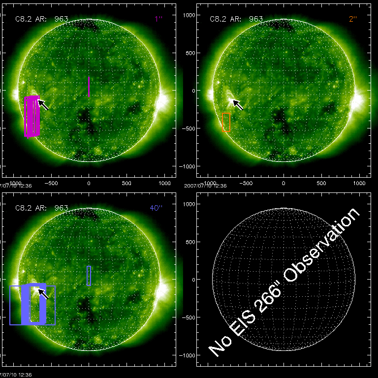 EIS Observation timeline overlay to GOES-Xray curve Code 1" 2" 40" 266" EIS Observations list for this event: STUDY ACRONYM ID DATE OBSERVED DESCRIPTION NOAA# TARGET 0 ARdiagn_hcadrast | 3663 | 2007/07/10 04:36:12 | AR temperature and density diagnostics | 963 | Active Region TIMELINE ID DATE OBSERVED FITS FILE XCEN (+W/-E) YCEN (+N/-S) DUR ----------------------------------------------------------------------------------------------------------------- 3663 | 2007/07/10 04:36:12.000 | eis_l0_20070710_043612.fits.gz | -769.83 | -344.24 | 5m10s 3663 | 2007/07/10 04:41:33.000 | eis_l0_20070710_044133.fits.gz | -787.99 | -353.32 | 23m58s 3663 | 2007/07/10 05:05:34.000 | eis_l0_20070710_050534.fits.gz | -786.48 | -364.64 | 13m40s 3663 | 2007/07/10 05:19:17.000 | eis_l0_20070710_051917.fits.gz | -785.31 | -364.08 | 13m41s 3663 | 2007/07/10 05:33:23.000 | eis_l0_20070710_053323.fits.gz | -765.12 | -342.12 | 5m10s 3663 | 2007/07/10 05:38:38.000 | eis_l0_20070710_053838.fits.gz | -764.64 | -341.95 | 5m10s 3663 | 2007/07/10 05:43:53.000 | eis_l0_20070710_054353.fits.gz | -764.22 | -341.65 | 5m10s 1 SYNOP001 | 3664 | 2007/07/10 05:59:13 | SYNOP001_40arcsec_1arcsec_30s_90s | | Quiet Sun TIMELINE ID DATE OBSERVED FITS FILE XCEN (+W/-E) YCEN (+N/-S) DUR ----------------------------------------------------------------------------------------------------------------- 3664 | 2007/07/10 05:59:13.000 | eis_l0_20070710_055913.fits.gz | 0.51 | 45.68 | 2m1s 3664 | 2007/07/10 06:01:28.000 | eis_l0_20070710_060128.fits.gz | 0.41 | 45.63 | 2m1s 2 ARdiag_sns | 3665 | 2007/07/10 06:08:34 | AR loop temperature and density analys | 963 | Active Region TIMELINE ID DATE OBSERVED FITS FILE XCEN (+W/-E) YCEN (+N/-S) DUR ----------------------------------------------------------------------------------------------------------------- 3665 | 2007/07/10 06:08:34.000 | eis_l0_20070710_060834.fits.gz | -762.21 | -340.89 | 5m9s 3665 | 2007/07/10 06:13:55.000 | eis_l0_20070710_061355.fits.gz | -784.62 | -352.06 | 10s 3665 | 2007/07/10 06:14:07.000 | eis_l0_20070710_061407.fits.gz | -784.69 | -352.04 | 10s 3665 | 2007/07/10 06:14:20.000 | eis_l0_20070710_061420.fits.gz | -784.69 | -352.10 | 10s 3665 | 2007/07/10 06:14:33.000 | eis_l0_20070710_061433.fits.gz | -784.61 | -352.04 | 10s 3665 | 2007/07/10 06:14:46.000 | eis_l0_20070710_061446.fits.gz | -784.54 | -352.05 | 10s 3665 | 2007/07/10 06:14:59.000 | eis_l0_20070710_061459.fits.gz | -784.55 | -352.02 | 10s 3665 | 2007/07/10 06:15:11.000 | eis_l0_20070710_061511.fits.gz | -784.61 | -352.07 | 11s 3665 | 2007/07/10 06:15:24.000 | eis_l0_20070710_061524.fits.gz | -784.46 | -351.98 | 10s 3665 | 2007/07/10 06:15:37.000 | eis_l0_20070710_061537.fits.gz | -784.50 | -351.98 | 10s 3665 | 2007/07/10 06:15:50.000 | eis_l0_20070710_061550.fits.gz | -784.55 | -352.02 | 10s 3665 | 2007/07/10 06:16:03.000 | eis_l0_20070710_061603.fits.gz | -784.48 | -351.99 | 10s 3665 | 2007/07/10 06:16:16.000 | eis_l0_20070710_061616.fits.gz | -784.56 | -351.98 | 10s 3665 | 2007/07/10 06:16:29.000 | eis_l0_20070710_061629.fits.gz | -784.53 | -352.01 | 10s 3665 | 2007/07/10 06:16:41.000 | eis_l0_20070710_061641.fits.gz | -784.38 | -351.92 | 10s 3665 | 2007/07/10 06:16:54.000 | eis_l0_20070710_061654.fits.gz | -784.38 | -351.98 | 10s 3665 | 2007/07/10 06:17:07.000 | eis_l0_20070710_061707.fits.gz | -784.40 | -351.90 | 10s 3665 | 2007/07/10 06:17:20.000 | eis_l0_20070710_061720.fits.gz | -784.38 | -351.94 | 10s 3665 | 2007/07/10 06:17:33.000 | eis_l0_20070710_061733.fits.gz | -784.32 | -351.91 | 10s 3665 | 2007/07/10 06:17:46.000 | eis_l0_20070710_061746.fits.gz | -784.38 | -351.94 | 10s 3665 | 2007/07/10 06:17:59.000 | eis_l0_20070710_061759.fits.gz | -784.31 | -351.86 | 10s 3665 | 2007/07/10 06:18:11.000 | eis_l0_20070710_061811.fits.gz | -784.38 | -351.92 | 10s 3665 | 2007/07/10 06:18:24.000 | eis_l0_20070710_061824.fits.gz | -784.32 | -351.90 | 10s 3665 | 2007/07/10 06:18:37.000 | eis_l0_20070710_061837.fits.gz | -784.30 | -351.87 | 10s 3665 | 2007/07/10 06:18:50.000 | eis_l0_20070710_061850.fits.gz | -784.23 | -351.86 | 10s 3665 | 2007/07/10 06:19:02.000 | eis_l0_20070710_061902.fits.gz | -784.16 | -351.82 | 11s 3665 | 2007/07/10 06:19:15.000 | eis_l0_20070710_061915.fits.gz | -784.26 | -351.84 | 10s 3665 | 2007/07/10 06:19:28.000 | eis_l0_20070710_061928.fits.gz | -784.14 | -351.86 | 10s 3665 | 2007/07/10 06:19:41.000 | eis_l0_20070710_061941.fits.gz | -784.17 | -351.82 | 10s 3665 | 2007/07/10 06:19:54.000 | eis_l0_20070710_061954.fits.gz | -784.15 | -351.82 | 10s 3665 | 2007/07/10 06:20:07.000 | eis_l0_20070710_062007.fits.gz | -784.14 | -351.86 | 10s 3665 | 2007/07/10 06:20:19.000 | eis_l0_20070710_062019.fits.gz | -784.15 | -351.82 | 11s 3665 | 2007/07/10 06:20:32.000 | eis_l0_20070710_062032.fits.gz | -784.15 | -351.82 | 10s 3665 | 2007/07/10 06:20:45.000 | eis_l0_20070710_062045.fits.gz | -784.07 | -351.78 | 10s 3665 | 2007/07/10 06:20:58.000 | eis_l0_20070710_062058.fits.gz | -784.07 | -351.78 | 10s 3665 | 2007/07/10 06:21:11.000 | eis_l0_20070710_062111.fits.gz | -784.01 | -351.78 | 10s 3665 | 2007/07/10 06:21:24.000 | eis_l0_20070710_062124.fits.gz | -784.07 | -351.73 | 10s 3665 | 2007/07/10 06:21:36.000 | eis_l0_20070710_062136.fits.gz | -783.99 | -351.74 | 10s 3665 | 2007/07/10 06:21:49.000 | eis_l0_20070710_062149.fits.gz | -783.95 | -351.70 | 10s 3665 | 2007/07/10 06:22:02.000 | eis_l0_20070710_062202.fits.gz | -783.91 | -351.71 | 10s 3665 | 2007/07/10 06:22:15.000 | eis_l0_20070710_062215.fits.gz | -783.96 | -351.73 | 10s 3665 | 2007/07/10 06:22:28.000 | eis_l0_20070710_062228.fits.gz | -783.92 | -351.71 | 10s 3665 | 2007/07/10 06:22:41.000 | eis_l0_20070710_062241.fits.gz | -783.98 | -351.75 | 10s 3665 | 2007/07/10 06:22:54.000 | eis_l0_20070710_062254.fits.gz | -783.92 | -351.72 | 10s 3665 | 2007/07/10 06:23:06.000 | eis_l0_20070710_062306.fits.gz | -783.91 | -351.71 | 11s 3665 | 2007/07/10 06:23:19.000 | eis_l0_20070710_062319.fits.gz | -783.84 | -351.69 | 11s 3665 | 2007/07/10 06:23:32.0