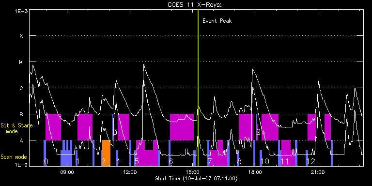 EIS Observation timeline overlay to GOES-Xray curve Code 1" 2" 40" 266" EIS Observations list for this event: STUDY ACRONYM ID DATE OBSERVED DESCRIPTION NOAA# TARGET 0 ARdiag_sns | 3667 | 2007/07/10 07:53:12 | AR loop temperature and density analys | 963 | Active Region TIMELINE ID DATE OBSERVED FITS FILE XCEN (+W/-E) YCEN (+N/-S) DUR ----------------------------------------------------------------------------------------------------------------- 3667 | 2007/07/10 07:53:12.000 | eis_l0_20070710_075312.fits.gz | -753.39 | -336.86 | 5m10s 3667 | 2007/07/10 07:58:33.000 | eis_l0_20070710_075833.fits.gz | -760.83 | -340.63 | 10s 3667 | 2007/07/10 07:58:46.000 | eis_l0_20070710_075846.fits.gz | -760.75 | -340.59 | 10s 3667 | 2007/07/10 07:58:59.000 | eis_l0_20070710_075859.fits.gz | -760.76 | -340.59 | 10s 3667 | 2007/07/10 07:59:12.000 | eis_l0_20070710_075912.fits.gz | -760.72 | -340.55 | 10s 3667 | 2007/07/10 07:59:24.000 | eis_l0_20070710_075924.fits.gz | -760.76 | -340.59 | 11s 3667 | 2007/07/10 07:59:37.000 | eis_l0_20070710_075937.fits.gz | -760.75 | -340.57 | 10s 3667 | 2007/07/10 07:59:50.000 | eis_l0_20070710_075950.fits.gz | -760.66 | -340.54 | 10s 3667 | 2007/07/10 08:00:03.000 | eis_l0_20070710_080003.fits.gz | -760.66 | -340.54 | 10s 3667 | 2007/07/10 08:00:16.000 | eis_l0_20070710_080016.fits.gz | -760.71 | -340.56 | 10s 3667 | 2007/07/10 08:00:29.000 | eis_l0_20070710_080029.fits.gz | -760.68 | -340.55 | 10s 3667 | 2007/07/10 08:00:42.000 | eis_l0_20070710_080042.fits.gz | -760.60 | -340.55 | 10s 3667 | 2007/07/10 08:00:54.000 | eis_l0_20070710_080054.fits.gz | -760.51 | -340.47 | 10s 3667 | 2007/07/10 08:01:07.000 | eis_l0_20070710_080107.fits.gz | -760.62 | -340.51 | 10s 3667 | 2007/07/10 08:01:20.000 | eis_l0_20070710_080120.fits.gz | -760.62 | -340.51 | 10s 3667 | 2007/07/10 08:01:33.000 | eis_l0_20070710_080133.fits.gz | -760.59 | -340.51 | 10s 3667 | 2007/07/10 08:01:46.000 | eis_l0_20070710_080146.fits.gz | -760.52 | -340.47 | 10s 3667 | 2007/07/10 08:01:58.000 | eis_l0_20070710_080158.fits.gz | -760.44 | -340.43 | 10s 3667 | 2007/07/10 08:02:11.000 | eis_l0_20070710_080211.fits.gz | -760.44 | -340.46 | 10s 3667 | 2007/07/10 08:02:24.000 | eis_l0_20070710_080224.fits.gz | -760.54 | -340.48 | 10s 3667 | 2007/07/10 08:02:37.000 | eis_l0_20070710_080237.fits.gz | -760.51 | -340.47 | 10s 3667 | 2007/07/10 08:02:50.000 | eis_l0_20070710_080250.fits.gz | -760.44 | -340.43 | 10s 3667 | 2007/07/10 08:03:02.000 | eis_l0_20070710_080302.fits.gz | -760.44 | -340.43 | 11s 3667 | 2007/07/10 08:03:15.000 | eis_l0_20070710_080315.fits.gz | -760.44 | -340.43 | 11s 3667 | 2007/07/10 08:03:28.000 | eis_l0_20070710_080328.fits.gz | -760.29 | -340.39 | 10s 3667 | 2007/07/10 08:03:41.000 | eis_l0_20070710_080341.fits.gz | -760.37 | -340.45 | 10s 3667 | 2007/07/10 08:03:54.000 | eis_l0_20070710_080354.fits.gz | -760.37 | -340.41 | 10s 3667 | 2007/07/10 08:04:07.000 | eis_l0_20070710_080407.fits.gz | -760.30 | -340.36 | 10s 3667 | 2007/07/10 08:04:20.000 | eis_l0_20070710_080420.fits.gz | -760.25 | -340.41 | 10s 3667 | 2007/07/10 08:04:32.000 | eis_l0_20070710_080432.fits.gz | -760.30 | -340.39 | 11s 3667 | 2007/07/10 08:04:45.000 | eis_l0_20070710_080445.fits.gz | -760.21 | -340.33 | 11s 3667 | 2007/07/10 08:04:58.000 | eis_l0_20070710_080458.fits.gz | -760.21 | -340.32 | 10s 3667 | 2007/07/10 08:05:11.000 | eis_l0_20070710_080511.fits.gz | -760.19 | -340.32 | 10s 3667 | 2007/07/10 08:05:24.000 | eis_l0_20070710_080524.fits.gz | -760.13 | -340.32 | 10s 3667 | 2007/07/10 08:05:37.000 | eis_l0_20070710_080537.fits.gz | -760.14 | -340.28 | 10s 3667 | 2007/07/10 08:05:49.000 | eis_l0_20070710_080549.fits.gz | -760.10 | -340.30 | 11s 3667 | 2007/07/10 08:06:02.000 | eis_l0_20070710_080602.fits.gz | -760.15 | -340.28 | 10s 3667 | 2007/07/10 08:06:15.000 | eis_l0_20070710_080615.fits.gz | -760.06 | -340.30 | 10s 3667 | 2007/07/10 08:06:28.000 | eis_l0_20070710_080628.fits.gz | -759.96 | -340.32 | 10s 3667 | 2007/07/10 08:06:41.000 | eis_l0_20070710_080641.fits.gz | -760.05 | -340.28 | 10s 3667 | 2007/07/10 08:06:54.000 | eis_l0_20070710_080654.fits.gz | -760.06 | -340.28 | 10s 3667 | 2007/07/10 08:07:06.000 | eis_l0_20070710_080706.fits.gz | -760.06 | -340.28 | 10s 3667 | 2007/07/10 08:07:19.000 | eis_l0_20070710_080719.fits.gz | -760.00 | -340.25 | 10s 3667 | 2007/07/10 08:07:32.000 | eis_l0_20070710_080732.fits.gz | -759.98 | -340.23 | 10s 3667 | 2007/07/10 08:07:45.000 | eis_l0_20070710_080745.fits.gz | -760.05 | -340.23 | 10s 3667 | 2007/07/10 08:07:58.000 | eis_l0_20070710_080758.fits.gz | -759.98 | -340.19 | 10s 3667 | 2007/07/10 08:08:11.000 | eis_l0_20070710_080811.fits.gz | -759.90 | -340.20 | 10s 3667 | 2007/07/10 08:08:23.000 | eis_l0_20070710_080823.fits.gz | -759.92 | -340.20 | 11s 3667 | 2007/07/10 08:08:36.000 | eis_l0_20070710_080836.fits.gz | -759.90 | -340.25 | 10s 3667 | 2007/07/10 08:08:49.000 | eis_l0_20070710_080849.fits.gz | -759.90 | -340.19 | 10s 3667 | 2007/07/10 08:09:02.000 | eis_l0_20070710_080902.fits.gz | -759.80 | -340.16 | 10s 3667 | 2007/07/10 08:09:15.000 | eis_l0_20070710_080915.fits.gz | -759.90 | -340.20 | 10s 3667 | 2007/07/10 08:09:27.000 | eis_l0_20070710_080927.fits.gz | -759.83 | -340.19 | 10s 3667 | 2007/07/10 08:09:40.000 | eis_l0_20070710_080940.fits.gz | -759.83 | -340.21 | 10s 3667 | 2007/07/10 08:09:53.000 | eis_l0_20070710_080953.fits.gz | -759.83 | -340.19 | 10s 3667 | 2007/07/10 08:10:06.000 | eis_l0_20070710_081006.fits.gz | -759.72 | -340.05 | 10s 3667 | 2007/07/10 08:10:19.000 | eis_l0_20070710_081019.fits.gz | -759.75 | -340.13 | 10s 3667 | 2007/07/10 08:10:31.000 | eis_l0_20070710_081031.fits.gz | -759.76 | -340.15 | 11s 3667 | 2007/07/10 08:10:44.000 | eis_l0_20070710_081044.fits.gz | -759.68 | -340.13 | 11s 3667 | 2007/07/10 08:10:57.000 | eis_l0_20070710_081057.fits.gz | -759.66 | -340.10 | 10s 3667 | 2007/07/10 08:11:10.000 | eis_l0_20070710_081110.fits.gz | -759.67 | -340.08 | 10s 3667 | 2007/07/10 08:11:23.000 | eis_l0_20070710_081123.f