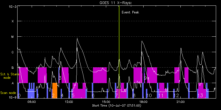 EIS Observation timeline overlay to GOES-Xray curve Code 1" 2" 40" 266" EIS Observations list for this event: STUDY ACRONYM ID DATE OBSERVED DESCRIPTION NOAA# TARGET 0 ARdiag_sns | 3667 | 2007/07/10 07:53:12 | AR loop temperature and density analys | 963 | Active Region TIMELINE ID DATE OBSERVED FITS FILE XCEN (+W/-E) YCEN (+N/-S) DUR ----------------------------------------------------------------------------------------------------------------- 3667 | 2007/07/10 07:53:12.000 | eis_l0_20070710_075312.fits.gz | -753.39 | -336.86 | 5m10s 3667 | 2007/07/10 07:58:33.000 | eis_l0_20070710_075833.fits.gz | -760.83 | -340.63 | 10s 3667 | 2007/07/10 07:58:46.000 | eis_l0_20070710_075846.fits.gz | -760.75 | -340.59 | 10s 3667 | 2007/07/10 07:58:59.000 | eis_l0_20070710_075859.fits.gz | -760.76 | -340.59 | 10s 3667 | 2007/07/10 07:59:12.000 | eis_l0_20070710_075912.fits.gz | -760.72 | -340.55 | 10s 3667 | 2007/07/10 07:59:24.000 | eis_l0_20070710_075924.fits.gz | -760.76 | -340.59 | 11s 3667 | 2007/07/10 07:59:37.000 | eis_l0_20070710_075937.fits.gz | -760.75 | -340.57 | 10s 3667 | 2007/07/10 07:59:50.000 | eis_l0_20070710_075950.fits.gz | -760.66 | -340.54 | 10s 3667 | 2007/07/10 08:00:03.000 | eis_l0_20070710_080003.fits.gz | -760.66 | -340.54 | 10s 3667 | 2007/07/10 08:00:16.000 | eis_l0_20070710_080016.fits.gz | -760.71 | -340.56 | 10s 3667 | 2007/07/10 08:00:29.000 | eis_l0_20070710_080029.fits.gz | -760.68 | -340.55 | 10s 3667 | 2007/07/10 08:00:42.000 | eis_l0_20070710_080042.fits.gz | -760.60 | -340.55 | 10s 3667 | 2007/07/10 08:00:54.000 | eis_l0_20070710_080054.fits.gz | -760.51 | -340.47 | 10s 3667 | 2007/07/10 08:01:07.000 | eis_l0_20070710_080107.fits.gz | -760.62 | -340.51 | 10s 3667 | 2007/07/10 08:01:20.000 | eis_l0_20070710_080120.fits.gz | -760.62 | -340.51 | 10s 3667 | 2007/07/10 08:01:33.000 | eis_l0_20070710_080133.fits.gz | -760.59 | -340.51 | 10s 3667 | 2007/07/10 08:01:46.000 | eis_l0_20070710_080146.fits.gz | -760.52 | -340.47 | 10s 3667 | 2007/07/10 08:01:58.000 | eis_l0_20070710_080158.fits.gz | -760.44 | -340.43 | 10s 3667 | 2007/07/10 08:02:11.000 | eis_l0_20070710_080211.fits.gz | -760.44 | -340.46 | 10s 3667 | 2007/07/10 08:02:24.000 | eis_l0_20070710_080224.fits.gz | -760.54 | -340.48 | 10s 3667 | 2007/07/10 08:02:37.000 | eis_l0_20070710_080237.fits.gz | -760.51 | -340.47 | 10s 3667 | 2007/07/10 08:02:50.000 | eis_l0_20070710_080250.fits.gz | -760.44 | -340.43 | 10s 3667 | 2007/07/10 08:03:02.000 | eis_l0_20070710_080302.fits.gz | -760.44 | -340.43 | 11s 3667 | 2007/07/10 08:03:15.000 | eis_l0_20070710_080315.fits.gz | -760.44 | -340.43 | 11s 3667 | 2007/07/10 08:03:28.000 | eis_l0_20070710_080328.fits.gz | -760.29 | -340.39 | 10s 3667 | 2007/07/10 08:03:41.000 | eis_l0_20070710_080341.fits.gz | -760.37 | -340.45 | 10s 3667 | 2007/07/10 08:03:54.000 | eis_l0_20070710_080354.fits.gz | -760.37 | -340.41 | 10s 3667 | 2007/07/10 08:04:07.000 | eis_l0_20070710_080407.fits.gz | -760.30 | -340.36 | 10s 3667 | 2007/07/10 08:04:20.000 | eis_l0_20070710_080420.fits.gz | -760.25 | -340.41 | 10s 3667 | 2007/07/10 08:04:32.000 | eis_l0_20070710_080432.fits.gz | -760.30 | -340.39 | 11s 3667 | 2007/07/10 08:04:45.000 | eis_l0_20070710_080445.fits.gz | -760.21 | -340.33 | 11s 3667 | 2007/07/10 08:04:58.000 | eis_l0_20070710_080458.fits.gz | -760.21 | -340.32 | 10s 3667 | 2007/07/10 08:05:11.000 | eis_l0_20070710_080511.fits.gz | -760.19 | -340.32 | 10s 3667 | 2007/07/10 08:05:24.000 | eis_l0_20070710_080524.fits.gz | -760.13 | -340.32 | 10s 3667 | 2007/07/10 08:05:37.000 | eis_l0_20070710_080537.fits.gz | -760.14 | -340.28 | 10s 3667 | 2007/07/10 08:05:49.000 | eis_l0_20070710_080549.fits.gz | -760.10 | -340.30 | 11s 3667 | 2007/07/10 08:06:02.000 | eis_l0_20070710_080602.fits.gz | -760.15 | -340.28 | 10s 3667 | 2007/07/10 08:06:15.000 | eis_l0_20070710_080615.fits.gz | -760.06 | -340.30 | 10s 3667 | 2007/07/10 08:06:28.000 | eis_l0_20070710_080628.fits.gz | -759.96 | -340.32 | 10s 3667 | 2007/07/10 08:06:41.000 | eis_l0_20070710_080641.fits.gz | -760.05 | -340.28 | 10s 3667 | 2007/07/10 08:06:54.000 | eis_l0_20070710_080654.fits.gz | -760.06 | -340.28 | 10s 3667 | 2007/07/10 08:07:06.000 | eis_l0_20070710_080706.fits.gz | -760.06 | -340.28 | 10s 3667 | 2007/07/10 08:07:19.000 | eis_l0_20070710_080719.fits.gz | -760.00 | -340.25 | 10s 3667 | 2007/07/10 08:07:32.000 | eis_l0_20070710_080732.fits.gz | -759.98 | -340.23 | 10s 3667 | 2007/07/10 08:07:45.000 | eis_l0_20070710_080745.fits.gz | -760.05 | -340.23 | 10s 3667 | 2007/07/10 08:07:58.000 | eis_l0_20070710_080758.fits.gz | -759.98 | -340.19 | 10s 3667 | 2007/07/10 08:08:11.000 | eis_l0_20070710_080811.fits.gz | -759.90 | -340.20 | 10s 3667 | 2007/07/10 08:08:23.000 | eis_l0_20070710_080823.fits.gz | -759.92 | -340.20 | 11s 3667 | 2007/07/10 08:08:36.000 | eis_l0_20070710_080836.fits.gz | -759.90 | -340.25 | 10s 3667 | 2007/07/10 08:08:49.000 | eis_l0_20070710_080849.fits.gz | -759.90 | -340.19 | 10s 3667 | 2007/07/10 08:09:02.000 | eis_l0_20070710_080902.fits.gz | -759.80 | -340.16 | 10s 3667 | 2007/07/10 08:09:15.000 | eis_l0_20070710_080915.fits.gz | -759.90 | -340.20 | 10s 3667 | 2007/07/10 08:09:27.000 | eis_l0_20070710_080927.fits.gz | -759.83 | -340.19 | 10s 3667 | 2007/07/10 08:09:40.000 | eis_l0_20070710_080940.fits.gz | -759.83 | -340.21 | 10s 3667 | 2007/07/10 08:09:53.000 | eis_l0_20070710_080953.fits.gz | -759.83 | -340.19 | 10s 3667 | 2007/07/10 08:10:06.000 | eis_l0_20070710_081006.fits.gz | -759.72 | -340.05 | 10s 3667 | 2007/07/10 08:10:19.000 | eis_l0_20070710_081019.fits.gz | -759.75 | -340.13 | 10s 3667 | 2007/07/10 08:10:31.000 | eis_l0_20070710_081031.fits.gz | -759.76 | -340.15 | 11s 3667 | 2007/07/10 08:10:44.000 | eis_l0_20070710_081044.fits.gz | -759.68 | -340.13 | 11s 3667 | 2007/07/10 08:10:57.000 | eis_l0_20070710_081057.fits.gz | -759.66 | -340.10 | 10s 3667 | 2007/07/10 08:11:10.000 | eis_l0_20070710_081110.fits.gz | -759.67 | -340.08 | 10s 3667 | 2007/07/10 08:11:23.000 | eis_l0_20070710_081123.f