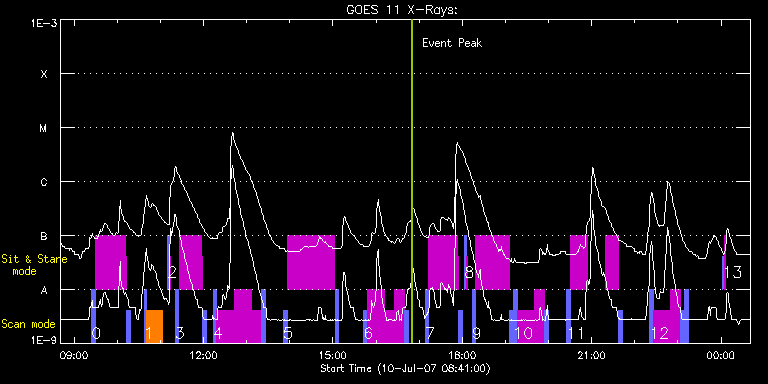 EIS Observation timeline overlay to GOES-Xray curve Code 1" 2" 40" 266" EIS Observations list for this event: STUDY ACRONYM ID DATE OBSERVED DESCRIPTION NOAA# TARGET 0 ARdiag_sns | 3668 | 2007/07/10 09:24:12 | AR loop temperature and density analys | 963 | Active Region TIMELINE ID DATE OBSERVED FITS FILE XCEN (+W/-E) YCEN (+N/-S) DUR ----------------------------------------------------------------------------------------------------------------- 3668 | 2007/07/10 09:24:12.000 | eis_l0_20070710_092412.fits.gz | -745.44 | -333.32 | 5m9s 3668 | 2007/07/10 09:29:33.000 | eis_l0_20070710_092933.fits.gz | -747.02 | -334.09 | 10s 3668 | 2007/07/10 09:29:46.000 | eis_l0_20070710_092946.fits.gz | -746.96 | -334.08 | 10s 3668 | 2007/07/10 09:29:58.000 | eis_l0_20070710_092958.fits.gz | -746.95 | -334.08 | 11s 3668 | 2007/07/10 09:30:11.000 | eis_l0_20070710_093011.fits.gz | -746.92 | -334.06 | 10s 3668 | 2007/07/10 09:30:24.000 | eis_l0_20070710_093024.fits.gz | -746.88 | -334.04 | 10s 3668 | 2007/07/10 09:30:37.000 | eis_l0_20070710_093037.fits.gz | -746.84 | -334.02 | 10s 3668 | 2007/07/10 09:30:50.000 | eis_l0_20070710_093050.fits.gz | -746.71 | -333.99 | 10s 3668 | 2007/07/10 09:31:03.000 | eis_l0_20070710_093103.fits.gz | -746.81 | -334.01 | 10s 3668 | 2007/07/10 09:31:16.000 | eis_l0_20070710_093116.fits.gz | -746.73 | -334.07 | 10s 3668 | 2007/07/10 09:31:28.000 | eis_l0_20070710_093128.fits.gz | -746.81 | -334.00 | 10s 3668 | 2007/07/10 09:31:41.000 | eis_l0_20070710_093141.fits.gz | -746.77 | -334.00 | 10s 3668 | 2007/07/10 09:31:54.000 | eis_l0_20070710_093154.fits.gz | -746.74 | -333.97 | 10s 3668 | 2007/07/10 09:32:07.000 | eis_l0_20070710_093207.fits.gz | -746.67 | -333.97 | 10s 3668 | 2007/07/10 09:32:20.000 | eis_l0_20070710_093220.fits.gz | -746.75 | -333.96 | 10s 3668 | 2007/07/10 09:32:32.000 | eis_l0_20070710_093232.fits.gz | -746.65 | -333.90 | 11s 3668 | 2007/07/10 09:32:45.000 | eis_l0_20070710_093245.fits.gz | -746.61 | -333.92 | 10s 3668 | 2007/07/10 09:32:58.000 | eis_l0_20070710_093258.fits.gz | -746.57 | -333.93 | 10s 3668 | 2007/07/10 09:33:11.000 | eis_l0_20070710_093311.fits.gz | -746.57 | -333.88 | 10s 3668 | 2007/07/10 09:33:24.000 | eis_l0_20070710_093324.fits.gz | -746.55 | -333.92 | 10s 3668 | 2007/07/10 09:33:37.000 | eis_l0_20070710_093337.fits.gz | -746.56 | -333.92 | 10s 3668 | 2007/07/10 09:33:49.000 | eis_l0_20070710_093349.fits.gz | -746.50 | -333.88 | 10s 3668 | 2007/07/10 09:34:02.000 | eis_l0_20070710_093402.fits.gz | -746.50 | -333.84 | 10s 3668 | 2007/07/10 09:34:15.000 | eis_l0_20070710_093415.fits.gz | -746.50 | -333.91 | 10s 3668 | 2007/07/10 09:34:28.000 | eis_l0_20070710_093428.fits.gz | -746.40 | -333.80 | 10s 3668 | 2007/07/10 09:34:41.000 | eis_l0_20070710_093441.fits.gz | -746.56 | -333.92 | 10s 3668 | 2007/07/10 09:34:53.000 | eis_l0_20070710_093453.fits.gz | -746.50 | -333.90 | 11s 3668 | 2007/07/10 09:35:06.000 | eis_l0_20070710_093506.fits.gz | -746.42 | -333.85 | 10s 3668 | 2007/07/10 09:35:19.000 | eis_l0_20070710_093519.fits.gz | -746.46 | -333.88 | 10s 3668 | 2007/07/10 09:35:32.000 | eis_l0_20070710_093532.fits.gz | -746.33 | -333.80 | 10s 3668 | 2007/07/10 09:35:45.000 | eis_l0_20070710_093545.fits.gz | -746.34 | -333.77 | 10s 3668 | 2007/07/10 09:35:58.000 | eis_l0_20070710_093558.fits.gz | -746.32 | -333.81 | 10s 3668 | 2007/07/10 09:36:10.000 | eis_l0_20070710_093610.fits.gz | -746.34 | -333.80 | 11s 3668 | 2007/07/10 09:36:23.000 | eis_l0_20070710_093623.fits.gz | -746.34 | -333.82 | 11s 3668 | 2007/07/10 09:36:36.000 | eis_l0_20070710_093636.fits.gz | -746.27 | -333.77 | 10s 3668 | 2007/07/10 09:36:49.000 | eis_l0_20070710_093649.fits.gz | -746.30 | -333.78 | 10s 3668 | 2007/07/10 09:37:02.000 | eis_l0_20070710_093702.fits.gz | -746.36 | -333.77 | 10s 3668 | 2007/07/10 09:37:15.000 | eis_l0_20070710_093715.fits.gz | -746.27 | -333.74 | 10s 3668 | 2007/07/10 09:37:27.000 | eis_l0_20070710_093727.fits.gz | -746.19 | -333.71 | 11s 3668 | 2007/07/10 09:37:40.000 | eis_l0_20070710_093740.fits.gz | -746.27 | -333.73 | 10s 3668 | 2007/07/10 09:37:53.000 | eis_l0_20070710_093753.fits.gz | -746.23 | -333.71 | 10s 3668 | 2007/07/10 09:38:06.000 | eis_l0_20070710_093806.fits.gz | -746.28 | -333.69 | 10s 3668 | 2007/07/10 09:38:19.000 | eis_l0_20070710_093819.fits.gz | -746.14 | -333.73 | 10s 3668 | 2007/07/10 09:38:32.000 | eis_l0_20070710_093832.fits.gz | -746.01 | -333.68 | 10s 3668 | 2007/07/10 09:38:45.000 | eis_l0_20070710_093845.fits.gz | -746.05 | -333.70 | 10s 3668 | 2007/07/10 09:38:58.000 | eis_l0_20070710_093858.fits.gz | -746.11 | -333.64 | 10s 3668 | 2007/07/10 09:39:10.000 | eis_l0_20070710_093910.fits.gz | -746.11 | -333.69 | 10s 3668 | 2007/07/10 09:39:23.000 | eis_l0_20070710_093923.fits.gz | -746.03 | -333.69 | 10s 3668 | 2007/07/10 09:39:36.000 | eis_l0_20070710_093936.fits.gz | -745.95 | -333.69 | 10s 3668 | 2007/07/10 09:39:49.000 | eis_l0_20070710_093949.fits.gz | -746.03 | -333.67 | 10s 3668 | 2007/07/10 09:40:02.000 | eis_l0_20070710_094002.fits.gz | -746.05 | -333.70 | 10s 3668 | 2007/07/10 09:40:15.000 | eis_l0_20070710_094015.fits.gz | -746.01 | -333.64 | 10s 3668 | 2007/07/10 09:40:28.000 | eis_l0_20070710_094028.fits.gz | -745.96 | -333.72 | 10s 3668 | 2007/07/10 09:40:40.000 | eis_l0_20070710_094040.fits.gz | -745.95 | -333.61 | 10s 3668 | 2007/07/10 09:40:53.000 | eis_l0_20070710_094053.fits.gz | -745.88 | -333.65 | 10s 3668 | 2007/07/10 09:41:06.000 | eis_l0_20070710_094106.fits.gz | -745.88 | -333.61 | 10s 3668 | 2007/07/10 09:41:19.000 | eis_l0_20070710_094119.fits.gz | -745.85 | -333.60 | 10s 3668 | 2007/07/10 09:41:32.000 | eis_l0_20070710_094132.fits.gz | -745.89 | -333.53 | 10s 3668 | 2007/07/10 09:41:45.000 | eis_l0_20070710_094145.fits.gz | -745.80 | -333.58 | 10s 3668 | 2007/07/10 09:41:58.000 | eis_l0_20070710_094158.fits.gz | -745.70 | -333.51 | 10s 3668 | 2007/07/10 09:42:10.000 | eis_l0_20070710_094210.fits.gz | -745.79 | -333.61 | 11s 3668 | 2007/07/10 09:42:23.000 | eis_l0_20070710_094223.fi
