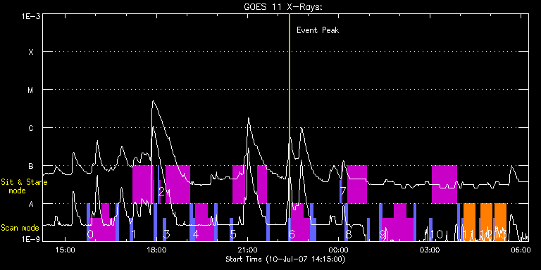 EIS Observation timeline overlay to GOES-Xray curve Code 1" 2" 40" 266" EIS Observations list for this event: STUDY ACRONYM ID DATE OBSERVED DESCRIPTION NOAA# TARGET 0 ARdiagn_hcadrast | 3675 | 2007/07/10 15:42:42 | AR temperature and density diagnostics | 963 | Active Region TIMELINE ID DATE OBSERVED FITS FILE XCEN (+W/-E) YCEN (+N/-S) DUR ----------------------------------------------------------------------------------------------------------------- 3675 | 2007/07/10 15:42:42.000 | eis_l0_20070710_154242.fits.gz | -715.17 | -332.40 | 5m9s 3675 | 2007/07/10 15:48:03.000 | eis_l0_20070710_154803.fits.gz | -733.25 | -341.46 | 23m57s 3675 | 2007/07/10 16:12:03.000 | eis_l0_20070710_161203.fits.gz | -731.47 | -352.72 | 13m41s 3675 | 2007/07/10 16:25:47.000 | eis_l0_20070710_162547.fits.gz | -730.11 | -352.10 | 13m41s 3675 | 2007/07/10 16:39:53.000 | eis_l0_20070710_163953.fits.gz | -709.77 | -329.97 | 5m10s 1 ARdiag_sns | 3676 | 2007/07/10 17:08:12 | AR loop temperature and density analys | 963 | Active Region TIMELINE ID DATE OBSERVED FITS FILE XCEN (+W/-E) YCEN (+N/-S) DUR ----------------------------------------------------------------------------------------------------------------- 3676 | 2007/07/10 17:08:12.000 | eis_l0_20070710_170812.fits.gz | -707.16 | -328.72 | 5m9s 3676 | 2007/07/10 17:13:33.000 | eis_l0_20070710_171333.fits.gz | -786.94 | -368.69 | 10s 3676 | 2007/07/10 17:13:46.000 | eis_l0_20070710_171346.fits.gz | -786.85 | -368.67 | 10s 3676 | 2007/07/10 17:13:59.000 | eis_l0_20070710_171359.fits.gz | -786.91 | -368.65 | 10s 3676 | 2007/07/10 17:14:11.000 | eis_l0_20070710_171411.fits.gz | -786.94 | -368.72 | 11s 3676 | 2007/07/10 17:14:24.000 | eis_l0_20070710_171424.fits.gz | -786.87 | -368.67 | 10s 3676 | 2007/07/10 17:14:37.000 | eis_l0_20070710_171437.fits.gz | -786.82 | -368.65 | 10s 3676 | 2007/07/10 17:14:50.000 | eis_l0_20070710_171450.fits.gz | -786.87 | -368.59 | 10s 3676 | 2007/07/10 17:15:03.000 | eis_l0_20070710_171503.fits.gz | -786.79 | -368.56 | 10s 3676 | 2007/07/10 17:15:15.000 | eis_l0_20070710_171515.fits.gz | -786.79 | -368.59 | 10s 3676 | 2007/07/10 17:15:28.000 | eis_l0_20070710_171528.fits.gz | -786.78 | -368.56 | 10s 3676 | 2007/07/10 17:15:41.000 | eis_l0_20070710_171541.fits.gz | -786.75 | -368.55 | 10s 3676 | 2007/07/10 17:15:54.000 | eis_l0_20070710_171554.fits.gz | -786.71 | -368.60 | 10s 3676 | 2007/07/10 17:16:07.000 | eis_l0_20070710_171607.fits.gz | -786.69 | -368.54 | 10s 3676 | 2007/07/10 17:16:19.000 | eis_l0_20070710_171619.fits.gz | -786.63 | -368.57 | 10s 3676 | 2007/07/10 17:16:32.000 | eis_l0_20070710_171632.fits.gz | -786.77 | -368.55 | 10s 3676 | 2007/07/10 17:16:45.000 | eis_l0_20070710_171645.fits.gz | -786.74 | -368.55 | 10s 3676 | 2007/07/10 17:16:58.000 | eis_l0_20070710_171658.fits.gz | -786.48 | -368.44 | 10s 3676 | 2007/07/10 17:17:11.000 | eis_l0_20070710_171711.fits.gz | -786.63 | -368.50 | 10s 3676 | 2007/07/10 17:17:24.000 | eis_l0_20070710_171724.fits.gz | -786.48 | -368.48 | 10s 3676 | 2007/07/10 17:17:37.000 | eis_l0_20070710_171737.fits.gz | -786.54 | -368.48 | 10s 3676 | 2007/07/10 17:17:49.000 | eis_l0_20070710_171749.fits.gz | -786.46 | -368.48 | 11s 3676 | 2007/07/10 17:18:02.000 | eis_l0_20070710_171802.fits.gz | -786.41 | -368.40 | 10s 3676 | 2007/07/10 17:18:15.000 | eis_l0_20070710_171815.fits.gz | -786.48 | -368.44 | 10s 3676 | 2007/07/10 17:18:28.000 | eis_l0_20070710_171828.fits.gz | -786.41 | -368.40 | 10s 3676 | 2007/07/10 17:18:41.000 | eis_l0_20070710_171841.fits.gz | -786.40 | -368.45 | 10s 3676 | 2007/07/10 17:18:54.000 | eis_l0_20070710_171854.fits.gz | -786.41 | -368.44 | 10s 3676 | 2007/07/10 17:19:07.000 | eis_l0_20070710_171907.fits.gz | -786.29 | -368.38 | 10s 3676 | 2007/07/10 17:19:19.000 | eis_l0_20070710_171919.fits.gz | -786.35 | -368.35 | 11s 3676 | 2007/07/10 17:19:32.000 | eis_l0_20070710_171932.fits.gz | -786.26 | -368.36 | 10s 3676 | 2007/07/10 17:19:45.000 | eis_l0_20070710_171945.fits.gz | -786.25 | -368.36 | 10s 3676 | 2007/07/10 17:19:58.000 | eis_l0_20070710_171958.fits.gz | -786.25 | -368.36 | 10s 3676 | 2007/07/10 17:20:11.000 | eis_l0_20070710_172011.fits.gz | -786.25 | -368.34 | 10s 3676 | 2007/07/10 17:20:24.000 | eis_l0_20070710_172024.fits.gz | -786.25 | -368.31 | 10s 3676 | 2007/07/10 17:20:37.000 | eis_l0_20070710_172037.fits.gz | -786.19 | -368.36 | 10s 3676 | 2007/07/10 17:20:50.000 | eis_l0_20070710_172050.fits.gz | -786.15 | -368.30 | 10s 3676 | 2007/07/10 17:21:02.000 | eis_l0_20070710_172102.fits.gz | -786.24 | -368.36 | 11s 3676 | 2007/07/10 17:21:15.000 | eis_l0_20070710_172115.fits.gz | -786.17 | -368.31 | 11s 3676 | 2007/07/10 17:21:28.000 | eis_l0_20070710_172128.fits.gz | -786.17 | -368.33 | 10s 3676 | 2007/07/10 17:21:41.000 | eis_l0_20070710_172141.fits.gz | -786.13 | -368.30 | 10s 3676 | 2007/07/10 17:21:54.000 | eis_l0_20070710_172154.fits.gz | -786.09 | -368.32 | 10s 3676 | 2007/07/10 17:22:07.000 | eis_l0_20070710_172207.fits.gz | -786.07 | -368.32 | 10s 3676 | 2007/07/10 17:22:20.000 | eis_l0_20070710_172220.fits.gz | -786.11 | -368.28 | 10s 3676 | 2007/07/10 17:22:32.000 | eis_l0_20070710_172232.fits.gz | -786.04 | -368.29 | 11s 3676 | 2007/07/10 17:22:45.000 | eis_l0_20070710_172245.fits.gz | -785.98 | -368.23 | 10s 3676 | 2007/07/10 17:22:58.000 | eis_l0_20070710_172258.fits.gz | -786.02 | -368.32 | 10s 3676 | 2007/07/10 17:23:11.000 | eis_l0_20070710_172311.fits.gz | -786.02 | -368.28 | 10s 3676 | 2007/07/10 17:23:24.000 | eis_l0_20070710_172324.fits.gz | -785.93 | -368.20 | 10s 3676 | 2007/07/10 17:23:37.000 | eis_l0_20070710_172337.fits.gz | -785.91 | -368.23 | 10s 3676 | 2007/07/10 17:23:50.000 | eis_l0_20070710_172350.fits.gz | -786.04 | -368.32 | 10s 3676 | 2007/07/10 17:24:02.000 | eis_l0_20070710_172402.fits.gz | -785.93 | -368.24 | 11s 3676 | 2007/07/10 17:24:15.000 | eis_l0_20070710_172415.fits.gz | -785.97 | -368.26 | 11s 3676 | 2007/07/10 17:24:28.000 | eis_l0_20070710_172428.fits.gz | -785.94 | -368.25 | 10s 3676 | 2007/07/10 17:24:4
