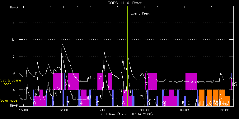 EIS Observation timeline overlay to GOES-Xray curve Code 1" 2" 40" 266" EIS Observations list for this event: STUDY ACRONYM ID DATE OBSERVED DESCRIPTION NOAA# TARGET 0 ARdiagn_hcadrast | 3675 | 2007/07/10 15:42:42 | AR temperature and density diagnostics | 963 | Active Region TIMELINE ID DATE OBSERVED FITS FILE XCEN (+W/-E) YCEN (+N/-S) DUR ----------------------------------------------------------------------------------------------------------------- 3675 | 2007/07/10 15:42:42.000 | eis_l0_20070710_154242.fits.gz | -715.17 | -332.40 | 5m9s 3675 | 2007/07/10 15:48:03.000 | eis_l0_20070710_154803.fits.gz | -733.25 | -341.46 | 23m57s 3675 | 2007/07/10 16:12:03.000 | eis_l0_20070710_161203.fits.gz | -731.47 | -352.72 | 13m41s 3675 | 2007/07/10 16:25:47.000 | eis_l0_20070710_162547.fits.gz | -730.11 | -352.10 | 13m41s 3675 | 2007/07/10 16:39:53.000 | eis_l0_20070710_163953.fits.gz | -709.77 | -329.97 | 5m10s 1 ARdiag_sns | 3676 | 2007/07/10 17:08:12 | AR loop temperature and density analys | 963 | Active Region TIMELINE ID DATE OBSERVED FITS FILE XCEN (+W/-E) YCEN (+N/-S) DUR ----------------------------------------------------------------------------------------------------------------- 3676 | 2007/07/10 17:08:12.000 | eis_l0_20070710_170812.fits.gz | -707.16 | -328.72 | 5m9s 3676 | 2007/07/10 17:13:33.000 | eis_l0_20070710_171333.fits.gz | -786.94 | -368.69 | 10s 3676 | 2007/07/10 17:13:46.000 | eis_l0_20070710_171346.fits.gz | -786.85 | -368.67 | 10s 3676 | 2007/07/10 17:13:59.000 | eis_l0_20070710_171359.fits.gz | -786.91 | -368.65 | 10s 3676 | 2007/07/10 17:14:11.000 | eis_l0_20070710_171411.fits.gz | -786.94 | -368.72 | 11s 3676 | 2007/07/10 17:14:24.000 | eis_l0_20070710_171424.fits.gz | -786.87 | -368.67 | 10s 3676 | 2007/07/10 17:14:37.000 | eis_l0_20070710_171437.fits.gz | -786.82 | -368.65 | 10s 3676 | 2007/07/10 17:14:50.000 | eis_l0_20070710_171450.fits.gz | -786.87 | -368.59 | 10s 3676 | 2007/07/10 17:15:03.000 | eis_l0_20070710_171503.fits.gz | -786.79 | -368.56 | 10s 3676 | 2007/07/10 17:15:15.000 | eis_l0_20070710_171515.fits.gz | -786.79 | -368.59 | 10s 3676 | 2007/07/10 17:15:28.000 | eis_l0_20070710_171528.fits.gz | -786.78 | -368.56 | 10s 3676 | 2007/07/10 17:15:41.000 | eis_l0_20070710_171541.fits.gz | -786.75 | -368.55 | 10s 3676 | 2007/07/10 17:15:54.000 | eis_l0_20070710_171554.fits.gz | -786.71 | -368.60 | 10s 3676 | 2007/07/10 17:16:07.000 | eis_l0_20070710_171607.fits.gz | -786.69 | -368.54 | 10s 3676 | 2007/07/10 17:16:19.000 | eis_l0_20070710_171619.fits.gz | -786.63 | -368.57 | 10s 3676 | 2007/07/10 17:16:32.000 | eis_l0_20070710_171632.fits.gz | -786.77 | -368.55 | 10s 3676 | 2007/07/10 17:16:45.000 | eis_l0_20070710_171645.fits.gz | -786.74 | -368.55 | 10s 3676 | 2007/07/10 17:16:58.000 | eis_l0_20070710_171658.fits.gz | -786.48 | -368.44 | 10s 3676 | 2007/07/10 17:17:11.000 | eis_l0_20070710_171711.fits.gz | -786.63 | -368.50 | 10s 3676 | 2007/07/10 17:17:24.000 | eis_l0_20070710_171724.fits.gz | -786.48 | -368.48 | 10s 3676 | 2007/07/10 17:17:37.000 | eis_l0_20070710_171737.fits.gz | -786.54 | -368.48 | 10s 3676 | 2007/07/10 17:17:49.000 | eis_l0_20070710_171749.fits.gz | -786.46 | -368.48 | 11s 3676 | 2007/07/10 17:18:02.000 | eis_l0_20070710_171802.fits.gz | -786.41 | -368.40 | 10s 3676 | 2007/07/10 17:18:15.000 | eis_l0_20070710_171815.fits.gz | -786.48 | -368.44 | 10s 3676 | 2007/07/10 17:18:28.000 | eis_l0_20070710_171828.fits.gz | -786.41 | -368.40 | 10s 3676 | 2007/07/10 17:18:41.000 | eis_l0_20070710_171841.fits.gz | -786.40 | -368.45 | 10s 3676 | 2007/07/10 17:18:54.000 | eis_l0_20070710_171854.fits.gz | -786.41 | -368.44 | 10s 3676 | 2007/07/10 17:19:07.000 | eis_l0_20070710_171907.fits.gz | -786.29 | -368.38 | 10s 3676 | 2007/07/10 17:19:19.000 | eis_l0_20070710_171919.fits.gz | -786.35 | -368.35 | 11s 3676 | 2007/07/10 17:19:32.000 | eis_l0_20070710_171932.fits.gz | -786.26 | -368.36 | 10s 3676 | 2007/07/10 17:19:45.000 | eis_l0_20070710_171945.fits.gz | -786.25 | -368.36 | 10s 3676 | 2007/07/10 17:19:58.000 | eis_l0_20070710_171958.fits.gz | -786.25 | -368.36 | 10s 3676 | 2007/07/10 17:20:11.000 | eis_l0_20070710_172011.fits.gz | -786.25 | -368.34 | 10s 3676 | 2007/07/10 17:20:24.000 | eis_l0_20070710_172024.fits.gz | -786.25 | -368.31 | 10s 3676 | 2007/07/10 17:20:37.000 | eis_l0_20070710_172037.fits.gz | -786.19 | -368.36 | 10s 3676 | 2007/07/10 17:20:50.000 | eis_l0_20070710_172050.fits.gz | -786.15 | -368.30 | 10s 3676 | 2007/07/10 17:21:02.000 | eis_l0_20070710_172102.fits.gz | -786.24 | -368.36 | 11s 3676 | 2007/07/10 17:21:15.000 | eis_l0_20070710_172115.fits.gz | -786.17 | -368.31 | 11s 3676 | 2007/07/10 17:21:28.000 | eis_l0_20070710_172128.fits.gz | -786.17 | -368.33 | 10s 3676 | 2007/07/10 17:21:41.000 | eis_l0_20070710_172141.fits.gz | -786.13 | -368.30 | 10s 3676 | 2007/07/10 17:21:54.000 | eis_l0_20070710_172154.fits.gz | -786.09 | -368.32 | 10s 3676 | 2007/07/10 17:22:07.000 | eis_l0_20070710_172207.fits.gz | -786.07 | -368.32 | 10s 3676 | 2007/07/10 17:22:20.000 | eis_l0_20070710_172220.fits.gz | -786.11 | -368.28 | 10s 3676 | 2007/07/10 17:22:32.000 | eis_l0_20070710_172232.fits.gz | -786.04 | -368.29 | 11s 3676 | 2007/07/10 17:22:45.000 | eis_l0_20070710_172245.fits.gz | -785.98 | -368.23 | 10s 3676 | 2007/07/10 17:22:58.000 | eis_l0_20070710_172258.fits.gz | -786.02 | -368.32 | 10s 3676 | 2007/07/10 17:23:11.000 | eis_l0_20070710_172311.fits.gz | -786.02 | -368.28 | 10s 3676 | 2007/07/10 17:23:24.000 | eis_l0_20070710_172324.fits.gz | -785.93 | -368.20 | 10s 3676 | 2007/07/10 17:23:37.000 | eis_l0_20070710_172337.fits.gz | -785.91 | -368.23 | 10s 3676 | 2007/07/10 17:23:50.000 | eis_l0_20070710_172350.fits.gz | -786.04 | -368.32 | 10s 3676 | 2007/07/10 17:24:02.000 | eis_l0_20070710_172402.fits.gz | -785.93 | -368.24 | 11s 3676 | 2007/07/10 17:24:15.000 | eis_l0_20070710_172415.fits.gz | -785.97 | -368.26 | 11s 3676 | 2007/07/10 17:24:28.000 | eis_l0_20070710_172428.fits.gz | -785.94 | -368.25 | 10s 3676 | 2007/07/10 17:24:4