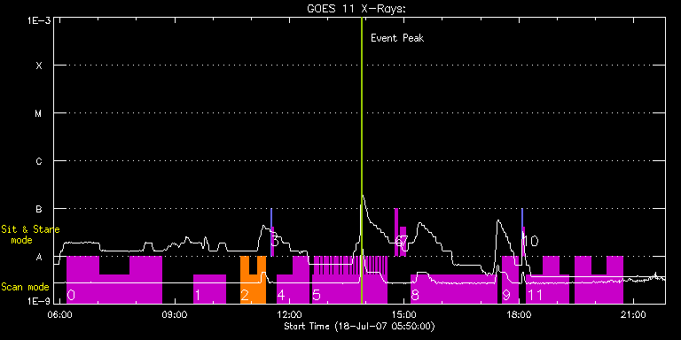 EIS Observation timeline overlay to GOES-Xray curve Code 1" 2" 40" 266" EIS Observations list for this event: STUDY ACRONYM ID DATE OBSERVED DESCRIPTION NOAA# TARGET 0 TW_AR111 | 3842 | 2007/07/18 06:10:57 | TW active regio iron study | 963 | Active Region TIMELINE ID DATE OBSERVED FITS FILE XCEN (+W/-E) YCEN (+N/-S) DUR ----------------------------------------------------------------------------------------------------------------- 3842 | 2007/07/18 06:10:57.000 | eis_l0_20070718_061057.fits.gz | 795.93 | -194.15 | 49m24s 3842 | 2007/07/18 07:00:23.000 | eis_l0_20070718_070023.fits.gz | 800.51 | -193.17 | 49m24s 3842 | 2007/07/18 07:49:50.000 | eis_l0_20070718_074950.fits.gz | 804.37 | -192.80 | 49m24s 1 TW_AR111 | 3843 | 2007/07/18 09:30:12 | TW active regio iron study | 963 | Active Region TIMELINE ID DATE OBSERVED FITS FILE XCEN (+W/-E) YCEN (+N/-S) DUR ----------------------------------------------------------------------------------------------------------------- 3843 | 2007/07/18 09:30:12.000 | eis_l0_20070718_093012.fits.gz | 812.12 | -191.82 | 49m24s 2 HH_AR+FLR_RAS_N03 | 3852 | 2007/07/18 10:43:28 | HH_AR+FLR_RAS_N03 (EWxNS=240"x240", 5. | 963 | Active Region TIMELINE ID DATE OBSERVED FITS FILE XCEN (+W/-E) YCEN (+N/-S) DUR ----------------------------------------------------------------------------------------------------------------- 3852 | 2007/07/18 10:43:28.000 | eis_l0_20070718_104328.fits.gz | 816.81 | -140.99 | 13m8s 3852 | 2007/07/18 10:56:38.000 | eis_l0_20070718_105638.fits.gz | 817.77 | -140.91 | 13m7s 3852 | 2007/07/18 11:09:48.000 | eis_l0_20070718_110948.fits.gz | 818.78 | -140.97 | 13m8s 3 SYNOP001 | 3853 | 2007/07/18 11:30:20 | SYNOP001_40arcsec_1arcsec_30s_90s | | Quiet Sun TIMELINE ID DATE OBSERVED FITS FILE XCEN (+W/-E) YCEN (+N/-S) DUR ----------------------------------------------------------------------------------------------------------------- 3853 | 2007/07/18 11:30:20.000 | eis_l0_20070718_113020.fits.gz | 0.41 | 13.20 | 2m2s 3853 | 2007/07/18 11:32:36.000 | eis_l0_20070718_113236.fits.gz | 0.47 | 13.21 | 2m1s 4 HH_AR+FLR_RAS_N02 | 3854 | 2007/07/18 11:40:13 | 1" slit, FOV: EWxNS=200"x256", 1" step | 963 | Active Region TIMELINE ID DATE OBSERVED FITS FILE XCEN (+W/-E) YCEN (+N/-S) DUR ----------------------------------------------------------------------------------------------------------------- 3854 | 2007/07/18 11:40:13.000 | eis_l0_20070718_114013.fits.gz | 820.99 | -140.55 | 25m13s 3854 | 2007/07/18 12:05:29.000 | eis_l0_20070718_120529.fits.gz | 822.77 | -140.20 | 25m12s 5 HH_AR+FLR_RAS_H02 | 3855 | 2007/07/18 12:36:13 | 1" slit, FOV: EWxNS=200"x256", 10" ste | 963 | Active Region TIMELINE ID DATE OBSERVED FITS FILE XCEN (+W/-E) YCEN (+N/-S) DUR ----------------------------------------------------------------------------------------------------------------- 3855 | 2007/07/18 12:36:13.000 | eis_l0_20070718_123613.fits.gz | 829.23 | -140.94 | 2m30s 3855 | 2007/07/18 12:38:46.000 | eis_l0_20070718_123846.fits.gz | 824.15 | -140.91 | 2m29s 3855 | 2007/07/18 12:41:18.000 | eis_l0_20070718_124118.fits.gz | 826.35 | -140.83 | 2m30s 3855 | 2007/07/18 12:43:51.000 | eis_l0_20070718_124351.fits.gz | 821.20 | -140.87 | 2m30s 3855 | 2007/07/18 12:46:24.000 | eis_l0_20070718_124624.fits.gz | 828.19 | -140.81 | 2m29s 3855 | 2007/07/18 12:48:56.000 | eis_l0_20070718_124856.fits.gz | 823.12 | -140.83 | 2m30s 3855 | 2007/07/18 12:51:29.000 | eis_l0_20070718_125129.fits.gz | 825.07 | -140.83 | 2m30s 3855 | 2007/07/18 12:54:02.000 | eis_l0_20070718_125402.fits.gz | 820.26 | -140.75 | 2m30s 3855 | 2007/07/18 12:56:35.000 | eis_l0_20070718_125635.fits.gz | 827.06 | -140.77 | 2m30s 3855 | 2007/07/18 12:59:08.000 | eis_l0_20070718_125908.fits.gz | 822.13 | -140.70 | 2m30s 3855 | 2007/07/18 13:01:41.000 | eis_l0_20070718_130141.fits.gz | 822.32 | -140.64 | 2m29s 3855 | 2007/07/18 13:04:13.000 | eis_l0_20070718_130413.fits.gz | 822.52 | -140.67 | 2m30s 3855 | 2007/07/18 13:06:46.000 | eis_l0_20070718_130646.fits.gz | 822.73 | -140.75 | 2m29s 3855 | 2007/07/18 13:09:18.000 | eis_l0_20070718_130918.fits.gz | 822.87 | -140.57 | 2m30s 3855 | 2007/07/18 13:11:50.000 | eis_l0_20070718_131150.fits.gz | 823.06 | -140.57 | 2m30s 3855 | 2007/07/18 13:14:23.000 | eis_l0_20070718_131423.fits.gz | 823.21 | -140.52 | 2m30s 3855 | 2007/07/18 13:16:56.000 | eis_l0_20070718_131656.fits.gz | 823.42 | -140.52 | 2m29s 3855 | 2007/07/18 13:19:28.000 | eis_l0_20070718_131928.fits.gz | 823.57 | -140.52 | 2m30s 3855 | 2007/07/18 13:22:01.000 | eis_l0_20070718_132201.fits.gz | 823.74 | -140.51 | 2m29s 3855 | 2007/07/18 13:24:33.000 | eis_l0_20070718_132433.fits.gz | 823.96 | -140.42 | 2m30s 3855 | 2007/07/18 13:27:06.000 | eis_l0_20070718_132706.fits.gz | 824.11 | -140.36 | 2m30s 3855 | 2007/07/18 13:29:39.000 | eis_l0_20070718_132939.fits.gz | 824.25 | -140.34 | 2m29s 3855 | 2007/07/18 13:32:11.000 | eis_l0_20070718_133211.fits.gz | 824.43 | -140.15 | 2m30s 3855 | 2007/07/18 13:34:44.000 | eis_l0_20070718_133444.fits.gz | 824.61 | -140.29 | 2m30s 3855 | 2007/07/18 13:37:17.000 | eis_l0_20070718_133717.fits.gz | 824.81 | -140.36 | 2m29s 3855 | 2007/07/18 13:39:49.000 | eis_l0_20070718_133949.fits.gz | 825.03 | -140.39 | 2m30s 3855 | 2007/07/18 13:42:22.000 | eis_l0_20070718_134222.fits.gz | 825.20 | -140.29 | 2m29s 3855 | 2007/07/18 13:44:54.000 | eis_l0_20070718_134454.fits.gz | 825.34 | -140.27 | 2m30s 3855 | 2007/07/18 13:47:27.000 | eis_l0_20070718_134727.fits.gz | 825.51 | -140.17 | 2m30s 3855 | 2007/07/18 13:49:59.000 | eis_l0_20070718_134959.fits.gz | 825.72 | -140.11 | 2m30s 3855 | 2007/07/18 13:52:32.000 | eis_l0_20070718_135232.fits.gz | 825.89 | -140.06 | 2m29s 3855 | 2007/07/18 13:55:04.000 | eis_l0_20070718_135504.fits.gz | 826.04 | -140.06 | 2m30s 3855 | 2007/07/18 13:57:37.000 | eis_l0_20070718_135737.fits.gz | 826.23 | -140.01 | 2m29s 3855 | 2007/07/18 14:00:09.000 | eis_l0_20070718_140009.fits.gz | 826.46 | -140.10 | 2m30s 3855 | 2007/07/18 14:02:41.000 | eis_l0_20070718_140241
