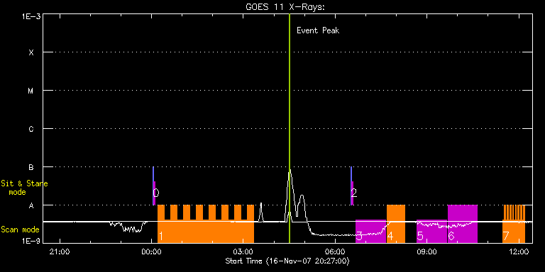 EIS Observation timeline overlay to GOES-Xray curve Code 1" 2" 40" 266" EIS Observations list for this event: STUDY ACRONYM ID DATE OBSERVED DESCRIPTION NOAA# TARGET 0 SYNOP001 | 5928 | 2007/11/17 00:02:20 | Synoptic quiet Sun disc centre | | Quiet Sun TIMELINE ID DATE OBSERVED FITS FILE XCEN (+W/-E) YCEN (+N/-S) DUR ----------------------------------------------------------------------------------------------------------------- 5928 | 2007/11/17 00:02:20.000 | eis_l0_20071117_000220.fits.gz | 0.39 | 13.21 | 2m2s 5928 | 2007/11/17 00:04:36.000 | eis_l0_20071117_000436.fits.gz | 0.37 | 13.03 | 2m1s 1 madj_ech_small | 5929 | 2007/11/17 00:12:27 | HOP 31 | | Coronal Hole TIMELINE ID DATE OBSERVED FITS FILE XCEN (+W/-E) YCEN (+N/-S) DUR ----------------------------------------------------------------------------------------------------------------- 5929 | 2007/11/17 00:12:27.000 | eis_l0_20071117_001227.fits.gz | 809.60 | -154.77 | 12m21s 5929 | 2007/11/17 00:24:57.000 | eis_l0_20071117_002457.fits.gz | 810.67 | -154.99 | 12m21s 5929 | 2007/11/17 00:37:27.000 | eis_l0_20071117_003727.fits.gz | 811.64 | -154.50 | 12m21s 5929 | 2007/11/17 00:49:57.000 | eis_l0_20071117_004957.fits.gz | 812.67 | -154.53 | 12m22s 5929 | 2007/11/17 01:02:28.000 | eis_l0_20071117_010228.fits.gz | 813.79 | -154.54 | 12m21s 5929 | 2007/11/17 01:14:58.000 | eis_l0_20071117_011458.fits.gz | 814.85 | -154.29 | 12m21s 5929 | 2007/11/17 01:27:28.000 | eis_l0_20071117_012728.fits.gz | 815.96 | -154.50 | 12m21s 5929 | 2007/11/17 01:39:58.000 | eis_l0_20071117_013958.fits.gz | 816.96 | -154.15 | 12m21s 5929 | 2007/11/17 01:52:28.000 | eis_l0_20071117_015228.fits.gz | 818.06 | -154.13 | 12m21s 5929 | 2007/11/17 02:04:58.000 | eis_l0_20071117_020458.fits.gz | 819.10 | -154.14 | 12m22s 5929 | 2007/11/17 02:17:29.000 | eis_l0_20071117_021729.fits.gz | 820.11 | -153.94 | 12m22s 5929 | 2007/11/17 02:30:00.000 | eis_l0_20071117_023000.fits.gz | 821.15 | -153.89 | 12m21s 5929 | 2007/11/17 02:42:30.000 | eis_l0_20071117_024230.fits.gz | 822.18 | -153.84 | 12m21s 5929 | 2007/11/17 02:55:00.000 | eis_l0_20071117_025500.fits.gz | 823.26 | -153.56 | 12m21s 5929 | 2007/11/17 03:07:30.000 | eis_l0_20071117_030730.fits.gz | 824.20 | -153.45 | 12m21s 2 SYNOP001 | 5932 | 2007/11/17 06:30:27 | Synoptic quiet Sun disc centre | | Quiet Sun TIMELINE ID DATE OBSERVED FITS FILE XCEN (+W/-E) YCEN (+N/-S) DUR ----------------------------------------------------------------------------------------------------------------- 5932 | 2007/11/17 06:30:27.000 | eis_l0_20071117_063027.fits.gz | 0.35 | 13.31 | 2m1s 5932 | 2007/11/17 06:32:42.000 | eis_l0_20071117_063242.fits.gz | 0.44 | 13.26 | 2m2s 3 kpd01_qs_slit_60s | 5933 | 2007/11/17 06:40:40 | CH on disk | | Quiet Sun TIMELINE ID DATE OBSERVED FITS FILE XCEN (+W/-E) YCEN (+N/-S) DUR ----------------------------------------------------------------------------------------------------------------- 5933 | 2007/11/17 06:40:40.000 | eis_l0_20071117_064040.fits.gz | 851.53 | -152.20 | 57m45s 4 EL_FULL_CCD_RASTER | 5934 | 2007/11/17 07:41:27 | CH on disk | | Active Region TIMELINE ID DATE OBSERVED FITS FILE XCEN (+W/-E) YCEN (+N/-S) DUR ----------------------------------------------------------------------------------------------------------------- 5934 | 2007/11/17 07:41:27.000 | eis_l0_20071117_074127.fits.gz | 862.33 | -151.75 | 35m12s 5 kpd01_qs_slit_60s | 5935 | 2007/11/17 08:40:26 | CH on disk | | Quiet Sun TIMELINE ID DATE OBSERVED FITS FILE XCEN (+W/-E) YCEN (+N/-S) DUR ----------------------------------------------------------------------------------------------------------------- 5935 | 2007/11/17 08:40:26.000 | eis_l0_20071117_084026.fits.gz | 883.26 | -151.28 | 57m46s 6 kpd01_qs_slit_60s | 5936 | 2007/11/17 09:41:14 | CH on disk | | Quiet Sun TIMELINE ID DATE OBSERVED FITS FILE XCEN (+W/-E) YCEN (+N/-S) DUR ----------------------------------------------------------------------------------------------------------------- 5936 | 2007/11/17 09:41:14.000 | eis_l0_20071117_094114.fits.gz | 906.69 | -150.78 | 57m45s 7 IUU_SCAN_STEPS_001 | 5939 | 2007/11/17 11:28:27 | Long-duration X-ray Bright Point (XBP) | | Quiet Sun TIMELINE ID DATE OBSERVED FITS FILE XCEN (+W/-E) YCEN (+N/-S) DUR ----------------------------------------------------------------------------------------------------------------- 5939 | 2007/11/17 11:28:27.000 | eis_l0_20071117_112827.fits.gz | 253.03 | 117.00 | 2m38s 5939 | 2007/11/17 11:31:10.000 | eis_l0_20071117_113110.fits.gz | 253.48 | 116.90 | 2m38s 5939 | 2007/11/17 11:33:53.000 | eis_l0_20071117_113353.fits.gz | 253.88 | 117.09 | 2m38s 5939 | 2007/11/17 11:36:36.000 | eis_l0_20071117_113636.fits.gz | 254.31 | 117.08 | 2m38s 5939 | 2007/11/17 11:39:20.000 | eis_l0_20071117_113920.fits.gz | 254.72 | 116.95 | 2m37s 5939 | 2007/11/17 11:42:03.000 | eis_l0_20071117_114203.fits.gz | 255.08 | 116.92 | 2m37s 5939 | 2007/11/17 11:44:46.000 | eis_l0_20071117_114446.fits.gz | 255.45 | 117.00 | 2m37s 5939 | 2007/11/17 11:47:29.000 | eis_l0_20071117_114729.fits.gz | 255.86 | 116.92 | 2m37s 5939 | 2007/11/17 11:50:12.000 | eis_l0_20071117_115012.fits.gz | 256.30 | 117.04 | 2m38s 5939 | 2007/11/17 11:52:55.000 | eis_l0_20071117_115255.fits.gz | 256.67 | 117.07 | 2m38s 5939 | 2007/11/17 11:55:38.000 | eis_l0_20071117_115538.fits.gz | 257.13 | 116.92 | 2m38s 5939 | 2007/11/17 11:58:21.000 | eis_l0_20071117_115821.fits.gz | 257.56 | 116.98 | 2m38s 5939 | 2007/11/17 12:01:05.000 | eis_l0_20071117_120105.fits.gz | 257.88 | 117.00 | 2m37s 5939 | 2007/11/17 12:03:48.000 | eis_l0_20071117_120348.fits.gz | 258.33 | 117.00 | 2m38s 5939 | 2007/11/17 12:06:31.000 | eis_l0_20071117_120631.fits.gz | 258.75 | 117.01 | 2m38s 5939 | 2007/11/17 12:09:14.000 | eis_l0_20071117_120914.fits.gz | 259.12 | 117.03 | 2m38s : Check study information : Download file : View thumbnails For this event, also check for: