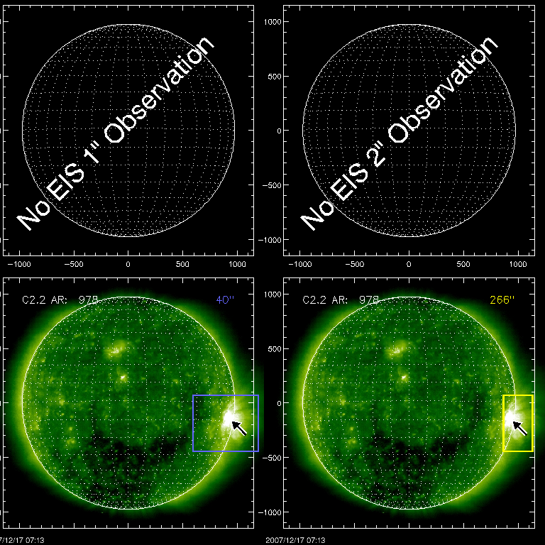 EIS Observation timeline overlay to GOES-Xray curve Code 1" 2" 40" 266" EIS Observations list for this event: STUDY ACRONYM ID DATE OBSERVED DESCRIPTION NOAA# TARGET 0 AR_velocity_map_v2 | 6401 | 2007/12/17 00:12:13 | Detailed, large format raster on AR 10 | 978 | Active Region TIMELINE ID DATE OBSERVED FITS FILE XCEN (+W/-E) YCEN (+N/-S) DUR ----------------------------------------------------------------------------------------------------------------- 6401 | 2007/12/17 00:12:13.000 | eis_l0_20071217_001213.fits.gz | 898.41 | -189.60 | 2m57s 1 Alignment_266 | 6402 | 2007/12/17 06:17:20 | Wide-slot observations of AR at limb | 978 | Quiet Sun TIMELINE ID DATE OBSERVED FITS FILE XCEN (+W/-E) YCEN (+N/-S) DUR ----------------------------------------------------------------------------------------------------------------- 6402 | 2007/12/17 06:17:20.000 | eis_l0_20071217_061720.fits.gz | 1000.11 | -190.26 | 1m22s 6402 | 2007/12/17 06:19:24.000 | eis_l0_20071217_061924.fits.gz | 1000.16 | -190.28 | 1m22s 6402 | 2007/12/17 06:21:28.000 | eis_l0_20071217_062128.fits.gz | 1000.24 | -190.21 | 1m22s 6402 | 2007/12/17 06:23:32.000 | eis_l0_20071217_062332.fits.gz | 1000.35 | -190.21 | 1m22s 6402 | 2007/12/17 06:25:35.000 | eis_l0_20071217_062535.fits.gz | 1000.48 | -190.31 | 1m22s 6402 | 2007/12/17 06:27:39.000 | eis_l0_20071217_062739.fits.gz | 1000.62 | -190.26 | 1m22s 6402 | 2007/12/17 06:29:43.000 | eis_l0_20071217_062943.fits.gz | 1000.67 | -190.24 | 1m22s 6402 | 2007/12/17 06:31:47.000 | eis_l0_20071217_063147.fits.gz | 1000.76 | -190.29 | 1m22s 6402 | 2007/12/17 06:33:51.000 | eis_l0_20071217_063351.fits.gz | 1000.95 | -190.29 | 1m22s 6402 | 2007/12/17 06:35:54.000 | eis_l0_20071217_063554.fits.gz | 1001.03 | -190.34 | 1m23s 6402 | 2007/12/17 06:37:58.000 | eis_l0_20071217_063758.fits.gz | 1001.16 | -190.29 | 1m22s 6402 | 2007/12/17 06:40:02.000 | eis_l0_20071217_064002.fits.gz | 1001.20 | -190.23 | 1m22s 6402 | 2007/12/17 06:42:06.000 | eis_l0_20071217_064206.fits.gz | 1001.29 | -190.22 | 1m22s 6402 | 2007/12/17 06:44:10.000 | eis_l0_20071217_064410.fits.gz | 1001.51 | -190.21 | 1m22s 6402 | 2007/12/17 06:46:13.000 | eis_l0_20071217_064613.fits.gz | 1001.66 | -190.28 | 1m22s 6402 | 2007/12/17 06:48:17.000 | eis_l0_20071217_064817.fits.gz | 1001.75 | -190.37 | 1m22s 6402 | 2007/12/17 06:50:21.000 | eis_l0_20071217_065021.fits.gz | 1001.82 | -190.42 | 1m22s 6402 | 2007/12/17 06:52:25.000 | eis_l0_20071217_065225.fits.gz | 1001.89 | -190.37 | 1m22s 6402 | 2007/12/17 06:54:29.000 | eis_l0_20071217_065429.fits.gz | 1001.99 | -190.25 | 1m22s 6402 | 2007/12/17 06:56:32.000 | eis_l0_20071217_065632.fits.gz | 1002.13 | -190.32 | 1m22s 6402 | 2007/12/17 06:58:36.000 | eis_l0_20071217_065836.fits.gz | 1002.23 | -190.32 | 1m22s 6402 | 2007/12/17 07:00:40.000 | eis_l0_20071217_070040.fits.gz | 1002.43 | -190.36 | 1m22s 6402 | 2007/12/17 07:02:44.000 | eis_l0_20071217_070244.fits.gz | 1002.51 | -190.21 | 1m22s 6402 | 2007/12/17 07:04:47.000 | eis_l0_20071217_070447.fits.gz | 1002.59 | -190.13 | 1m22s 6402 | 2007/12/17 07:06:51.000 | eis_l0_20071217_070651.fits.gz | 1002.74 | -190.29 | 1m22s 6402 | 2007/12/17 07:08:55.000 | eis_l0_20071217_070855.fits.gz | 1002.87 | -190.29 | 1m22s 6402 | 2007/12/17 07:10:59.000 | eis_l0_20071217_071059.fits.gz | 1002.92 | -190.37 | 1m22s 6402 | 2007/12/17 07:13:03.000 | eis_l0_20071217_071303.fits.gz | 1003.05 | -190.37 | 1m22s 6402 | 2007/12/17 07:15:06.000 | eis_l0_20071217_071506.fits.gz | 1003.16 | -190.17 | 1m22s 6402 | 2007/12/17 07:17:10.000 | eis_l0_20071217_071710.fits.gz | 1003.27 | -190.33 | 1m22s 6402 | 2007/12/17 07:19:14.000 | eis_l0_20071217_071914.fits.gz | 1003.36 | -190.24 | 1m22s 6402 | 2007/12/17 07:21:18.000 | eis_l0_20071217_072118.fits.gz | 1003.44 | -190.29 | 1m22s 6402 | 2007/12/17 07:23:22.000 | eis_l0_20071217_072322.fits.gz | 1003.59 | -190.29 | 1m22s 6402 | 2007/12/17 07:25:25.000 | eis_l0_20071217_072525.fits.gz | 1003.70 | -190.38 | 1m22s 6402 | 2007/12/17 07:27:29.000 | eis_l0_20071217_072729.fits.gz | 1003.79 | -190.35 | 1m22s 6402 | 2007/12/17 07:29:33.000 | eis_l0_20071217_072933.fits.gz | 1003.95 | -190.39 | 1m22s 6402 | 2007/12/17 07:31:37.000 | eis_l0_20071217_073137.fits.gz | 1004.00 | -190.22 | 1m22s 6402 | 2007/12/17 07:33:40.000 | eis_l0_20071217_073340.fits.gz | 1004.11 | -190.49 | 1m23s 6402 | 2007/12/17 07:35:44.000 | eis_l0_20071217_073544.fits.gz | 1004.21 | -190.23 | 1m22s 6402 | 2007/12/17 07:37:48.000 | eis_l0_20071217_073748.fits.gz | 1004.37 | -190.29 | 1m22s 6402 | 2007/12/17 07:39:52.000 | eis_l0_20071217_073952.fits.gz | 1004.47 | -190.37 | 1m22s 6402 | 2007/12/17 07:41:56.000 | eis_l0_20071217_074156.fits.gz | 1004.60 | -190.57 | 1m22s 6402 | 2007/12/17 07:44:00.000 | eis_l0_20071217_074400.fits.gz | 1004.70 | -190.37 | 1m22s 6402 | 2007/12/17 07:46:03.000 | eis_l0_20071217_074603.fits.gz | 1004.81 | -190.49 | 1m22s 6402 | 2007/12/17 07:48:07.000 | eis_l0_20071217_074807.fits.gz | 1004.87 | -190.48 | 1m22s : Check study information : Download file : View thumbnails For this event, also check for: