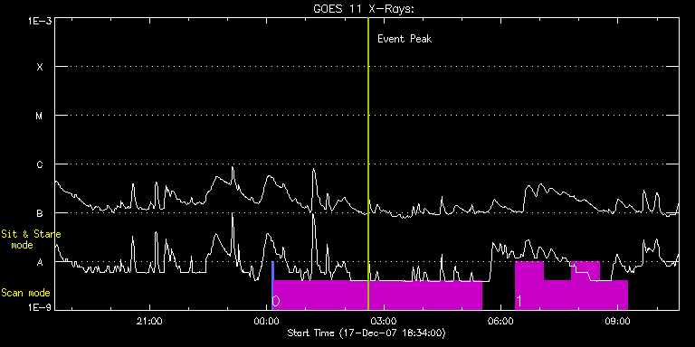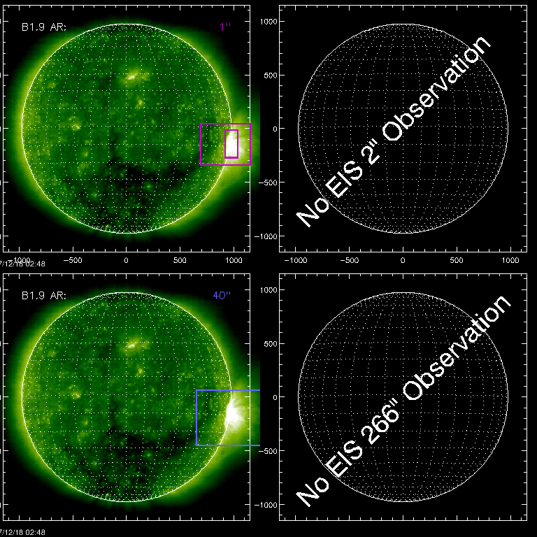 EIS Observation timeline overlay to GOES-Xray curve Code 1" 2" 40" 266" EIS Observations list for this event: STUDY ACRONYM ID DATE OBSERVED DESCRIPTION NOAA# TARGET 0 AR_velocity_map_v2 | 6407 | 2007/12/18 00:07:41 | Detailed, large format raster on AR 10 | 978 | Active Region TIMELINE ID DATE OBSERVED FITS FILE XCEN (+W/-E) YCEN (+N/-S) DUR ----------------------------------------------------------------------------------------------------------------- 6407 | 2007/12/18 00:07:41.000 | eis_l0_20071218_000741.fits.gz | 951.40 | -196.59 | 2m57s 6407 | 2007/12/18 00:10:49.000 | eis_l0_20071218_001049.fits.gz | 923.90 | -151.43 | 5h19m31s 1 TW_AR110 | 6408 | 2007/12/18 06:21:47 | Study of lower loops in active region | 978 | Active Region TIMELINE ID DATE OBSERVED FITS FILE XCEN (+W/-E) YCEN (+N/-S) DUR ----------------------------------------------------------------------------------------------------------------- 6408 | 2007/12/18 06:21:47.000 | eis_l0_20071218_062147.fits.gz | 981.10 | -146.47 | 43m20s 6408 | 2007/12/18 07:05:10.000 | eis_l0_20071218_070510.fits.gz | 981.06 | -146.62 | 43m19s 6408 | 2007/12/18 07:48:32.000 | eis_l0_20071218_074832.fits.gz | 981.07 | -146.56 | 43m20s 6408 | 2007/12/18 08:31:55.000 | eis_l0_20071218_083155.fits.gz | 981.00 | -146.53 | 43m19s : Check study information : Download file : View thumbnails For this event, also check for: