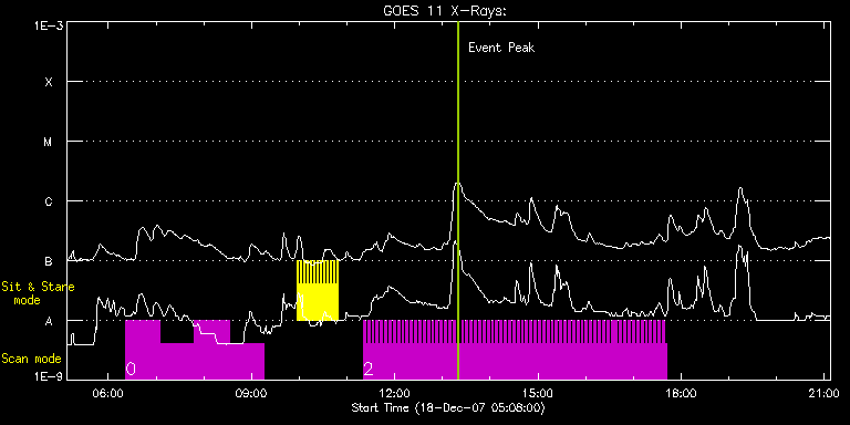EIS Observation timeline overlay to GOES-Xray curve Code 1" 2" 40" 266" EIS Observations list for this event: STUDY ACRONYM ID DATE OBSERVED DESCRIPTION NOAA# TARGET 0 TW_AR110 | 6408 | 2007/12/18 06:21:47 | Study of lower loops in active region | 978 | Active Region TIMELINE ID DATE OBSERVED FITS FILE XCEN (+W/-E) YCEN (+N/-S) DUR ----------------------------------------------------------------------------------------------------------------- 6408 | 2007/12/18 06:21:47.000 | eis_l0_20071218_062147.fits.gz | 981.10 | -146.47 | 43m20s 6408 | 2007/12/18 07:05:10.000 | eis_l0_20071218_070510.fits.gz | 981.06 | -146.62 | 43m19s 6408 | 2007/12/18 07:48:32.000 | eis_l0_20071218_074832.fits.gz | 981.07 | -146.56 | 43m20s 6408 | 2007/12/18 08:31:55.000 | eis_l0_20071218_083155.fits.gz | 981.00 | -146.53 | 43m19s 1 Alignment_266 | 6409 | 2007/12/18 09:57:19 | Wide-slot observations of AR at limb | 978 | Quiet Sun TIMELINE ID DATE OBSERVED FITS FILE XCEN (+W/-E) YCEN (+N/-S) DUR ----------------------------------------------------------------------------------------------------------------- 6409 | 2007/12/18 09:57:19.000 | eis_l0_20071218_095719.fits.gz | 1031.48 | -196.40 | 1m22s 6409 | 2007/12/18 09:59:23.000 | eis_l0_20071218_095923.fits.gz | 1031.44 | -196.46 | 1m22s 6409 | 2007/12/18 10:01:27.000 | eis_l0_20071218_100127.fits.gz | 1031.53 | -196.63 | 1m22s 6409 | 2007/12/18 10:03:31.000 | eis_l0_20071218_100331.fits.gz | 1031.46 | -196.55 | 1m22s 6409 | 2007/12/18 10:05:34.000 | eis_l0_20071218_100534.fits.gz | 1031.46 | -196.49 | 1m23s 6409 | 2007/12/18 10:07:38.000 | eis_l0_20071218_100738.fits.gz | 1031.50 | -196.51 | 1m22s 6409 | 2007/12/18 10:09:42.000 | eis_l0_20071218_100942.fits.gz | 1031.46 | -196.58 | 1m22s 6409 | 2007/12/18 10:11:46.000 | eis_l0_20071218_101146.fits.gz | 1031.44 | -196.57 | 1m22s 6409 | 2007/12/18 10:13:50.000 | eis_l0_20071218_101350.fits.gz | 1031.51 | -196.63 | 1m22s 6409 | 2007/12/18 10:15:53.000 | eis_l0_20071218_101553.fits.gz | 1031.54 | -196.76 | 1m23s 6409 | 2007/12/18 10:17:57.000 | eis_l0_20071218_101757.fits.gz | 1031.52 | -196.63 | 1m22s 6409 | 2007/12/18 10:20:01.000 | eis_l0_20071218_102001.fits.gz | 1031.44 | -196.55 | 1m22s 6409 | 2007/12/18 10:22:05.000 | eis_l0_20071218_102205.fits.gz | 1031.53 | -196.72 | 1m22s 6409 | 2007/12/18 10:24:09.000 | eis_l0_20071218_102409.fits.gz | 1031.45 | -196.41 | 1m22s 6409 | 2007/12/18 10:26:12.000 | eis_l0_20071218_102612.fits.gz | 1031.46 | -196.58 | 1m22s 6409 | 2007/12/18 10:28:16.000 | eis_l0_20071218_102816.fits.gz | 1031.44 | -196.58 | 1m22s 6409 | 2007/12/18 10:30:20.000 | eis_l0_20071218_103020.fits.gz | 1031.46 | -196.66 | 1m22s 6409 | 2007/12/18 10:32:24.000 | eis_l0_20071218_103224.fits.gz | 1031.48 | -196.65 | 1m22s 6409 | 2007/12/18 10:34:28.000 | eis_l0_20071218_103428.fits.gz | 1031.47 | -196.52 | 1m22s 6409 | 2007/12/18 10:36:32.000 | eis_l0_20071218_103632.fits.gz | 1031.48 | -196.49 | 1m22s 6409 | 2007/12/18 10:38:35.000 | eis_l0_20071218_103835.fits.gz | 1031.48 | -196.63 | 1m22s 6409 | 2007/12/18 10:40:39.000 | eis_l0_20071218_104039.fits.gz | 1031.52 | -196.53 | 1m22s 6409 | 2007/12/18 10:42:43.000 | eis_l0_20071218_104243.fits.gz | 1031.44 | -196.70 | 1m22s 6409 | 2007/12/18 10:44:47.000 | eis_l0_20071218_104447.fits.gz | 1031.48 | -196.81 | 1m22s 6409 | 2007/12/18 10:46:50.000 | eis_l0_20071218_104650.fits.gz | 1031.39 | -196.57 | 1m22s 2 DRW001_HI_BRT_V2 | 6411 | 2007/12/18 11:20:34 | Coronal rain programme with SOT and XR | | Quiet Sun TIMELINE ID DATE OBSERVED FITS FILE XCEN (+W/-E) YCEN (+N/-S) DUR ----------------------------------------------------------------------------------------------------------------- 6411 | 2007/12/18 11:20:34.000 | eis_l0_20071218_112034.fits.gz | 1001.08 | -146.53 | 2m37s 6411 | 2007/12/18 11:23:15.000 | eis_l0_20071218_112315.fits.gz | 1001.01 | -146.55 | 2m37s 6411 | 2007/12/18 11:25:56.000 | eis_l0_20071218_112556.fits.gz | 1001.03 | -146.66 | 2m37s 6411 | 2007/12/18 11:28:37.000 | eis_l0_20071218_112837.fits.gz | 1001.01 | -146.70 | 2m37s 6411 | 2007/12/18 11:31:18.000 | eis_l0_20071218_113118.fits.gz | 1000.94 | -146.44 | 2m37s 6411 | 2007/12/18 11:34:00.000 | eis_l0_20071218_113400.fits.gz | 1001.06 | -146.47 | 2m36s 6411 | 2007/12/18 11:36:40.000 | eis_l0_20071218_113640.fits.gz | 1001.01 | -146.44 | 2m37s 6411 | 2007/12/18 11:39:21.000 | eis_l0_20071218_113921.fits.gz | 1001.02 | -146.56 | 2m37s 6411 | 2007/12/18 11:42:03.000 | eis_l0_20071218_114203.fits.gz | 1000.95 | -146.60 | 2m37s 6411 | 2007/12/18 11:44:44.000 | eis_l0_20071218_114444.fits.gz | 1001.00 | -146.60 | 2m37s 6411 | 2007/12/18 11:47:25.000 | eis_l0_20071218_114725.fits.gz | 1000.98 | -146.54 | 2m37s 6411 | 2007/12/18 11:50:06.000 | eis_l0_20071218_115006.fits.gz | 1001.01 | -146.51 | 2m37s 6411 | 2007/12/18 11:52:47.000 | eis_l0_20071218_115247.fits.gz | 1000.99 | -146.40 | 2m37s 6411 | 2007/12/18 11:55:28.000 | eis_l0_20071218_115528.fits.gz | 1001.08 | -146.66 | 2m37s 6411 | 2007/12/18 11:58:09.000 | eis_l0_20071218_115809.fits.gz | 1001.02 | -146.56 | 2m37s 6411 | 2007/12/18 12:00:51.000 | eis_l0_20071218_120051.fits.gz | 1001.04 | -146.55 | 2m36s 6411 | 2007/12/18 12:03:31.000 | eis_l0_20071218_120331.fits.gz | 1001.03 | -146.69 | 2m37s 6411 | 2007/12/18 12:06:13.000 | eis_l0_20071218_120613.fits.gz | 1000.99 | -146.55 | 2m37s 6411 | 2007/12/18 12:08:54.000 | eis_l0_20071218_120854.fits.gz | 1001.02 | -146.58 | 2m37s 6411 | 2007/12/18 12:11:35.000 | eis_l0_20071218_121135.fits.gz | 1001.06 | -146.63 | 2m37s 6411 | 2007/12/18 12:14:16.000 | eis_l0_20071218_121416.fits.gz | 1001.03 | -146.59 | 2m37s 6411 | 2007/12/18 12:16:57.000 | eis_l0_20071218_121657.fits.gz | 1001.03 | -146.63 | 2m37s 6411 | 2007/12/18 12:19:38.000 | eis_l0_20071218_121938.fits.gz | 1001.14 | -146.55 | 2m37s 6411 | 2007/12/18 12:22:19.000 | eis_l0_20071218_122219.fits.gz | 1000.99 | -146.62 | 2m37s 6411 | 2007/12/18 12:25:01.000 | eis_l0_20071218_122501.fits.gz | 1000.94 | -146.65 | 2m36s 6411 | 2007/12/18 1