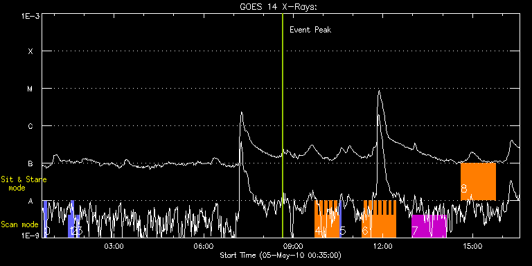 EIS Observation timeline overlay to GOES-Xray curve Code 1" 2" 40" 266" EIS Observations list for this event: STUDY ACRONYM ID DATE OBSERVED DESCRIPTION NOAA# TARGET 0 full_sun_slot_scan_1 | 17117 | 2010/05/05 00:39:44 | HOP 130: LASP/U. Colorado Rocket suppo | | Quiet Sun TIMELINE ID DATE OBSERVED FITS FILE XCEN (+W/-E) YCEN (+N/-S) DUR ----------------------------------------------------------------------------------------------------------------- 17117 | 2010/05/05 00:39:44.000 | eis_l0_20100505_003944.fits.gz | 224.29 | -1214.68 | 5m27s 1 full_sun_slot_scan_1 | 17118 | 2010/05/05 01:28:12 | HOP 130: LASP/U. Colorado Rocket suppo | | Quiet Sun TIMELINE ID DATE OBSERVED FITS FILE XCEN (+W/-E) YCEN (+N/-S) DUR ----------------------------------------------------------------------------------------------------------------- 17118 | 2010/05/05 01:28:12.000 | eis_l0_20100505_012812.fits.gz | -186.90 | -648.67 | 5m27s 2 full_sun_slot_scan_1 | 17119 | 2010/05/05 01:33:44 | HOP 130: LASP/U. Colorado Rocket suppo | | Quiet Sun TIMELINE ID DATE OBSERVED FITS FILE XCEN (+W/-E) YCEN (+N/-S) DUR ----------------------------------------------------------------------------------------------------------------- 17119 | 2010/05/05 01:33:44.000 | eis_l0_20100505_013344.fits.gz | -186.82 | -1120.82 | 5m27s 3 full_sun_slot_scan_1 | 17122 | 2010/05/05 01:44:16 | HOP 130: LASP/U. Colorado Rocket Suppo | | Quiet Sun TIMELINE ID DATE OBSERVED FITS FILE XCEN (+W/-E) YCEN (+N/-S) DUR ----------------------------------------------------------------------------------------------------------------- 17122 | 2010/05/05 01:44:16.000 | eis_l0_20100505_014416.fits.gz | -590.75 | -744.47 | 5m27s 4 AR_filament | 17123 | 2010/05/05 09:43:34 | HOP 139: Core ToO: Study on prominence | | Active Region TIMELINE ID DATE OBSERVED FITS FILE XCEN (+W/-E) YCEN (+N/-S) DUR ----------------------------------------------------------------------------------------------------------------- 17123 | 2010/05/05 09:43:34.000 | eis_l0_20100505_094334.fits.gz | 805.23 | -551.24 | 4m50s 17123 | 2010/05/05 09:48:27.000 | eis_l0_20100505_094827.fits.gz | 805.47 | -551.09 | 4m51s 17123 | 2010/05/05 09:53:21.000 | eis_l0_20100505_095321.fits.gz | 805.77 | -551.17 | 4m50s 17123 | 2010/05/05 09:58:13.000 | eis_l0_20100505_095813.fits.gz | 806.01 | -551.32 | 4m51s 17123 | 2010/05/05 10:03:06.000 | eis_l0_20100505_100306.fits.gz | 806.24 | -551.40 | 4m50s 17123 | 2010/05/05 10:07:59.000 | eis_l0_20100505_100759.fits.gz | 806.39 | -551.32 | 4m51s 17123 | 2010/05/05 10:12:53.000 | eis_l0_20100505_101253.fits.gz | 806.70 | -551.48 | 4m50s 17123 | 2010/05/05 10:17:46.000 | eis_l0_20100505_101746.fits.gz | 807.01 | -551.40 | 4m51s 17123 | 2010/05/05 10:22:40.000 | eis_l0_20100505_102240.fits.gz | 807.24 | -551.48 | 4m50s 17123 | 2010/05/05 10:27:33.000 | eis_l0_20100505_102733.fits.gz | 807.47 | -551.40 | 4m51s 5 PRY_slot_contextLITE | 17149 | 2010/05/05 10:32:35 | | | Active Region TIMELINE ID DATE OBSERVED FITS FILE XCEN (+W/-E) YCEN (+N/-S) DUR ----------------------------------------------------------------------------------------------------------------- 17149 | 2010/05/05 10:32:35.000 | eis_l0_20100505_103235.fits.gz | 891.56 | -551.55 | 2m56s 6 AR_filament | 17124 | 2010/05/05 11:17:34 | HOP 139: Core ToO: Study on prominence | | Active Region TIMELINE ID DATE OBSERVED FITS FILE XCEN (+W/-E) YCEN (+N/-S) DUR ----------------------------------------------------------------------------------------------------------------- 17124 | 2010/05/05 11:17:34.000 | eis_l0_20100505_111734.fits.gz | 789.98 | -551.71 | 4m51s 17124 | 2010/05/05 11:22:28.000 | eis_l0_20100505_112228.fits.gz | 790.21 | -551.78 | 4m50s 17124 | 2010/05/05 11:27:21.000 | eis_l0_20100505_112721.fits.gz | 790.52 | -551.78 | 4m50s 17124 | 2010/05/05 11:32:14.000 | eis_l0_20100505_113214.fits.gz | 790.83 | -551.94 | 4m51s 17124 | 2010/05/05 11:37:08.000 | eis_l0_20100505_113708.fits.gz | 790.98 | -551.94 | 4m50s 17124 | 2010/05/05 11:42:01.000 | eis_l0_20100505_114201.fits.gz | 791.21 | -551.94 | 4m51s 17124 | 2010/05/05 11:46:55.000 | eis_l0_20100505_114655.fits.gz | 791.45 | -552.17 | 4m50s 17124 | 2010/05/05 11:51:48.000 | eis_l0_20100505_115148.fits.gz | 791.60 | -551.78 | 4m51s 17124 | 2010/05/05 11:56:41.000 | eis_l0_20100505_115641.fits.gz | 791.99 | -552.02 | 4m51s 17124 | 2010/05/05 12:01:35.000 | eis_l0_20100505_120135.fits.gz | 792.14 | -552.02 | 4m51s 17124 | 2010/05/05 12:06:28.000 | eis_l0_20100505_120628.fits.gz | 792.45 | -552.17 | 4m51s 17124 | 2010/05/05 12:11:22.000 | eis_l0_20100505_121122.fits.gz | 792.68 | -552.17 | 4m50s 17124 | 2010/05/05 12:16:15.000 | eis_l0_20100505_121615.fits.gz | 792.91 | -552.17 | 4m51s 17124 | 2010/05/05 12:21:09.000 | eis_l0_20100505_122109.fits.gz | 793.22 | -552.33 | 4m50s 7 prom_rast_v1 | 17125 | 2010/05/05 12:57:57 | HOP 73: Core ToO: Quiescent Prominence | | Eruptive Filame TIMELINE ID DATE OBSERVED FITS FILE XCEN (+W/-E) YCEN (+N/-S) DUR ----------------------------------------------------------------------------------------------------------------- 17125 | 2010/05/05 12:57:57.000 | eis_l0_20100505_125757.fits.gz | -520.97 | 825.28 | 1h9m45s 8 BL_SUMER_EIS_p2 | 17126 | 2010/05/05 14:36:27 | HOP 73: Core ToO: Quiescent Prominence | | Quiet Sun TIMELINE ID DATE OBSERVED FITS FILE XCEN (+W/-E) YCEN (+N/-S) DUR ----------------------------------------------------------------------------------------------------------------- 17126 | 2010/05/05 14:36:27.000 | eis_l0_20100505_143627.fits.gz | -577.54 | 782.36 | 1h9m27s : Check study information : Download file : View thumbnails For this event, also check for: