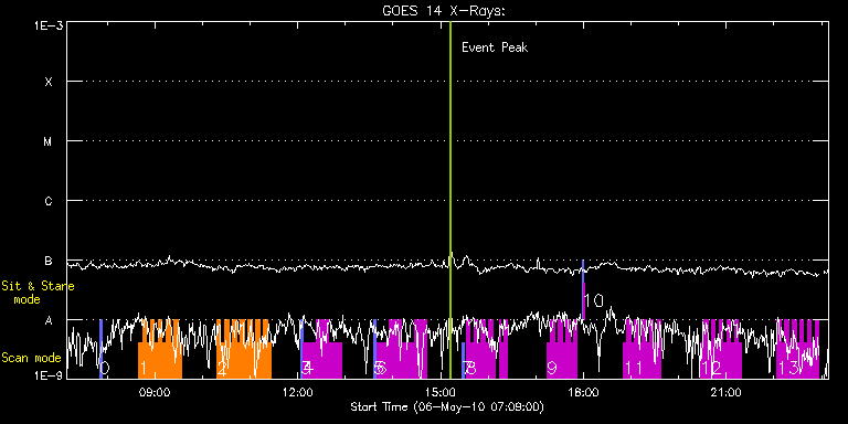 EIS Observation timeline overlay to GOES-Xray curve Code 1" 2" 40" 266" EIS Observations list for this event: STUDY ACRONYM ID DATE OBSERVED DESCRIPTION NOAA# TARGET 0 PRY_slot_contextLITE | 17150 | 2010/05/06 07:50:13 | | | Active Region TIMELINE ID DATE OBSERVED FITS FILE XCEN (+W/-E) YCEN (+N/-S) DUR ----------------------------------------------------------------------------------------------------------------- 17150 | 2010/05/06 07:50:13.000 | eis_l0_20100506_075013.fits.gz | 943.78 | -560.21 | 2m56s 1 AR_filament | 17144 | 2010/05/06 08:40:03 | HOP 139: Core ToO: Study on prominence | | Active Region TIMELINE ID DATE OBSERVED FITS FILE XCEN (+W/-E) YCEN (+N/-S) DUR ----------------------------------------------------------------------------------------------------------------- 17144 | 2010/05/06 08:40:03.000 | eis_l0_20100506_084003.fits.gz | 853.48 | -560.44 | 4m50s 17144 | 2010/05/06 08:44:56.000 | eis_l0_20100506_084456.fits.gz | 853.56 | -560.44 | 4m51s 17144 | 2010/05/06 08:49:50.000 | eis_l0_20100506_084950.fits.gz | 853.79 | -560.59 | 4m50s 17144 | 2010/05/06 08:54:43.000 | eis_l0_20100506_085443.fits.gz | 853.95 | -560.51 | 4m51s 17144 | 2010/05/06 08:59:36.000 | eis_l0_20100506_085936.fits.gz | 854.10 | -560.67 | 4m51s 17144 | 2010/05/06 09:04:30.000 | eis_l0_20100506_090430.fits.gz | 854.26 | -560.67 | 4m50s 17144 | 2010/05/06 09:09:23.000 | eis_l0_20100506_090923.fits.gz | 854.33 | -560.75 | 4m51s 17144 | 2010/05/06 09:14:17.000 | eis_l0_20100506_091417.fits.gz | 854.56 | -560.90 | 4m50s 17144 | 2010/05/06 09:19:10.000 | eis_l0_20100506_091910.fits.gz | 854.56 | -560.82 | 4m50s 17144 | 2010/05/06 09:24:03.000 | eis_l0_20100506_092403.fits.gz | 854.80 | -560.82 | 4m50s 17144 | 2010/05/06 09:28:56.000 | eis_l0_20100506_092856.fits.gz | 854.95 | -560.90 | 4m50s 2 AR_filament | 17145 | 2010/05/06 10:18:13 | HOP 139: Core ToO: Study on prominence | | Active Region TIMELINE ID DATE OBSERVED FITS FILE XCEN (+W/-E) YCEN (+N/-S) DUR ----------------------------------------------------------------------------------------------------------------- 17145 | 2010/05/06 10:18:13.000 | eis_l0_20100506_101813.fits.gz | 856.34 | -561.21 | 4m51s 17145 | 2010/05/06 10:23:07.000 | eis_l0_20100506_102307.fits.gz | 856.49 | -561.21 | 4m50s 17145 | 2010/05/06 10:28:00.000 | eis_l0_20100506_102800.fits.gz | 856.65 | -561.13 | 4m50s 17145 | 2010/05/06 10:32:53.000 | eis_l0_20100506_103253.fits.gz | 856.88 | -561.36 | 4m50s 17145 | 2010/05/06 10:37:46.000 | eis_l0_20100506_103746.fits.gz | 856.96 | -561.36 | 4m50s 17145 | 2010/05/06 10:42:39.000 | eis_l0_20100506_104239.fits.gz | 857.04 | -561.29 | 4m51s 17145 | 2010/05/06 10:47:33.000 | eis_l0_20100506_104733.fits.gz | 857.19 | -561.52 | 4m50s 17145 | 2010/05/06 10:52:26.000 | eis_l0_20100506_105226.fits.gz | 857.27 | -561.36 | 4m50s 17145 | 2010/05/06 10:57:19.000 | eis_l0_20100506_105719.fits.gz | 857.50 | -561.52 | 4m50s 17145 | 2010/05/06 11:02:12.000 | eis_l0_20100506_110212.fits.gz | 857.58 | -561.44 | 4m51s 17145 | 2010/05/06 11:07:06.000 | eis_l0_20100506_110706.fits.gz | 857.73 | -561.44 | 4m50s 17145 | 2010/05/06 11:11:59.000 | eis_l0_20100506_111159.fits.gz | 857.89 | -561.59 | 4m51s 17145 | 2010/05/06 11:16:53.000 | eis_l0_20100506_111653.fits.gz | 858.04 | -561.44 | 4m50s 17145 | 2010/05/06 11:21:46.000 | eis_l0_20100506_112146.fits.gz | 858.20 | -561.59 | 4m50s 3 PRY_slot_contextLITE | 17151 | 2010/05/06 12:03:21 | | 1069 | Active Region TIMELINE ID DATE OBSERVED FITS FILE XCEN (+W/-E) YCEN (+N/-S) DUR ----------------------------------------------------------------------------------------------------------------- 17151 | 2010/05/06 12:03:21.000 | eis_l0_20100506_120321.fits.gz | 738.22 | 649.72 | 2m56s 4 HPW017AR_30x400_30s2 | 17164 | 2010/05/06 12:07:19 | Progressive scan of AR 11069 (1 of 2) | 1069 | Active Region TIMELINE ID DATE OBSERVED FITS FILE XCEN (+W/-E) YCEN (+N/-S) DUR ----------------------------------------------------------------------------------------------------------------- 17164 | 2010/05/06 12:07:19.000 | eis_l0_20100506_120719.fits.gz | 619.30 | 649.72 | 15m49s 17164 | 2010/05/06 12:23:13.000 | eis_l0_20100506_122313.fits.gz | 590.66 | 649.49 | 15m49s 17164 | 2010/05/06 12:39:07.000 | eis_l0_20100506_123907.fits.gz | 561.87 | 649.42 | 15m49s 5 PRY_slot_contextLITE | 17165 | 2010/05/06 13:35:33 | | 1069 | Active Region TIMELINE ID DATE OBSERVED FITS FILE XCEN (+W/-E) YCEN (+N/-S) DUR ----------------------------------------------------------------------------------------------------------------- 17165 | 2010/05/06 13:35:33.000 | eis_l0_20100506_133533.fits.gz | 745.41 | 649.18 | 2m57s 6 HPW017AR_30x400_30s2 | 17166 | 2010/05/06 13:39:19 | Progressive scan of AR 11069 (2 of 2) | 1069 | Active Region TIMELINE ID DATE OBSERVED FITS FILE XCEN (+W/-E) YCEN (+N/-S) DUR ----------------------------------------------------------------------------------------------------------------- 17166 | 2010/05/06 13:39:19.000 | eis_l0_20100506_133919.fits.gz | 536.30 | 649.11 | 15m49s 17166 | 2010/05/06 13:55:13.000 | eis_l0_20100506_135513.fits.gz | 507.58 | 649.03 | 15m49s 17166 | 2010/05/06 14:11:07.000 | eis_l0_20100506_141107.fits.gz | 478.79 | 648.95 | 15m49s 17166 | 2010/05/06 14:27:00.000 | eis_l0_20100506_142700.fits.gz | 450.15 | 648.80 | 15m49s 7 PRY_slot_contextLITE | 17152 | 2010/05/06 15:27:33 | Sparse rasters monitoring AR 11068 | 1069 | Active Region TIMELINE ID DATE OBSERVED FITS FILE XCEN (+W/-E) YCEN (+N/-S) DUR ----------------------------------------------------------------------------------------------------------------- 17152 | 2010/05/06 15:27:33.000 | eis_l0_20100506_152733.fits.gz | 753.98 | 648.49 | 2m56s 8 VHH_SlowAR_5m_V2 | 17148 | 2010/05/06 15:32:19 | Sparse rasters monitoring AR 11068 | 1069 | Active Region TIMELINE ID DATE OBSERVED FITS FILE XCEN (+W/-E) YCEN (+N/-S) DUR ----------------------------------------------------------------------------------------------------------------- 17148 | 2010/05/