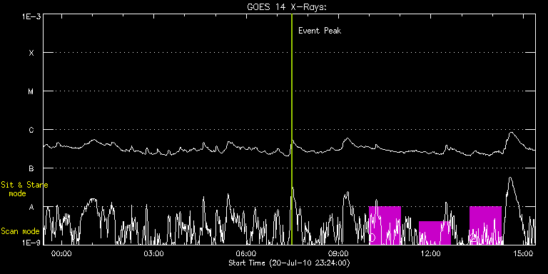 EIS Observation timeline overlay to GOES-Xray curve Code 1" 2" 40" 266" EIS Observations list for this event: STUDY ACRONYM ID DATE OBSERVED DESCRIPTION NOAA# TARGET 0 Atlas_060x512_60s | 18351 | 2010/07/21 09:59:10 | Full CCD high data volume scan of acti | | Active Region TIMELINE ID DATE OBSERVED FITS FILE XCEN (+W/-E) YCEN (+N/-S) DUR ----------------------------------------------------------------------------------------------------------------- 18351 | 2010/07/21 09:59:10.000 | eis_l0_20100721_095910.fits.gz | 962.92 | 288.25 | 1h1m53s 1 Atlas_060x512_60s | 18352 | 2010/07/21 11:37:13 | Full CCD high data volume scan of acti | 1087 | Active Region TIMELINE ID DATE OBSERVED FITS FILE XCEN (+W/-E) YCEN (+N/-S) DUR ----------------------------------------------------------------------------------------------------------------- 18352 | 2010/07/21 11:37:13.000 | eis_l0_20100721_113713.fits.gz | 902.94 | 288.25 | 1h1m53s 2 Atlas_060x512_60s | 18353 | 2010/07/21 13:15:43 | Full CCD high data volume scan of acti | | Active Region TIMELINE ID DATE OBSERVED FITS FILE XCEN (+W/-E) YCEN (+N/-S) DUR ----------------------------------------------------------------------------------------------------------------- 18353 | 2010/07/21 13:15:43.000 | eis_l0_20100721_131543.fits.gz | 843.12 | 288.25 | 1h1m52s : Check study information : Download file : View thumbnails For this event, also check for: