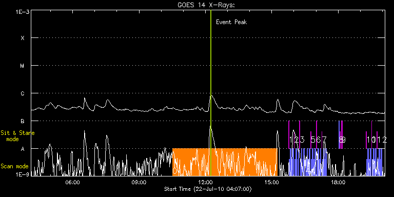 EIS Observation timeline overlay to GOES-Xray curve Code 1" 2" 40" 266" EIS Observations list for this event: STUDY ACRONYM ID DATE OBSERVED DESCRIPTION NOAA# TARGET 0 JS_CH_280x256_V3 | 18380 | 2010/07/22 10:30:27 | Variations in Line Width Across kG Mag | | Coronal Hole TIMELINE ID DATE OBSERVED FITS FILE XCEN (+W/-E) YCEN (+N/-S) DUR ----------------------------------------------------------------------------------------------------------------- 18380 | 2010/07/22 10:30:27.000 | eis_l0_20100722_103027.fits.gz | -15.01 | 287.94 | 4h43m54s 1 Alignment_modify_v2 | 18358 | 2010/07/22 15:45:27 | Hinode instrument coalignment program | | Quiet Sun TIMELINE ID DATE OBSERVED FITS FILE XCEN (+W/-E) YCEN (+N/-S) DUR ----------------------------------------------------------------------------------------------------------------- 18358 | 2010/07/22 15:45:27.000 | eis_l0_20100722_154527.fits.gz | -0.02 | 944.47 | 1m 18358 | 2010/07/22 15:46:53.000 | eis_l0_20100722_154653.fits.gz | -9.50 | 944.47 | 2m34s 18358 | 2010/07/22 15:50:00.000 | eis_l0_20100722_155000.fits.gz | -9.58 | 944.55 | 2m34s 18358 | 2010/07/22 15:53:08.000 | eis_l0_20100722_155308.fits.gz | -9.58 | 944.55 | 2m34s 18358 | 2010/07/22 15:56:15.000 | eis_l0_20100722_155615.fits.gz | -9.50 | 944.47 | 2m34s 2 Alignment_modify_v2 | 18359 | 2010/07/22 16:00:20 | Hinode instrument coalignment program | | Quiet Sun TIMELINE ID DATE OBSERVED FITS FILE XCEN (+W/-E) YCEN (+N/-S) DUR ----------------------------------------------------------------------------------------------------------------- 18359 | 2010/07/22 16:00:20.000 | eis_l0_20100722_160020.fits.gz | -0.02 | 944.62 | 1m 18359 | 2010/07/22 16:01:45.000 | eis_l0_20100722_160145.fits.gz | -9.58 | 944.62 | 2m34s 18359 | 2010/07/22 16:04:53.000 | eis_l0_20100722_160453.fits.gz | -9.58 | 944.55 | 2m34s 18359 | 2010/07/22 16:08:00.000 | eis_l0_20100722_160800.fits.gz | -9.58 | 944.55 | 1m32s 18359 | 2010/07/22 16:12:10.000 | eis_l0_20100722_161210.fits.gz | -9.50 | 944.47 | 1m31s 3 Alignment_modify_v2 | 18360 | 2010/07/22 16:15:20 | Hinode instrument coalignment program | | Quiet Sun TIMELINE ID DATE OBSERVED FITS FILE XCEN (+W/-E) YCEN (+N/-S) DUR ----------------------------------------------------------------------------------------------------------------- 18360 | 2010/07/22 16:15:20.000 | eis_l0_20100722_161520.fits.gz | -0.10 | 944.55 | 1m 18360 | 2010/07/22 16:16:45.000 | eis_l0_20100722_161645.fits.gz | -9.50 | 944.55 | 2m34s 18360 | 2010/07/22 16:19:53.000 | eis_l0_20100722_161953.fits.gz | -9.50 | 944.55 | 1m32s 18360 | 2010/07/22 16:25:04.000 | eis_l0_20100722_162504.fits.gz | -9.58 | 944.62 | 31s 18360 | 2010/07/22 16:26:08.000 | eis_l0_20100722_162608.fits.gz | -9.58 | 944.47 | 2m34s 4 Alignment_modify_v2 | 18361 | 2010/07/22 16:31:45 | Hinode instrument coalignment program | | Quiet Sun TIMELINE ID DATE OBSERVED FITS FILE XCEN (+W/-E) YCEN (+N/-S) DUR ----------------------------------------------------------------------------------------------------------------- 18361 | 2010/07/22 16:31:45.000 | eis_l0_20100722_163145.fits.gz | -9.50 | 944.47 | 2m34s 18361 | 2010/07/22 16:34:53.000 | eis_l0_20100722_163453.fits.gz | -9.50 | 944.47 | 2m34s 18361 | 2010/07/22 16:38:00.000 | eis_l0_20100722_163800.fits.gz | -9.50 | 944.55 | 2m34s 18361 | 2010/07/22 16:41:08.000 | eis_l0_20100722_164108.fits.gz | -9.50 | 944.47 | 2m34s 5 Alignment_modify_v2 | 18362 | 2010/07/22 16:45:20 | Hinode instrument coalignment program | | Quiet Sun TIMELINE ID DATE OBSERVED FITS FILE XCEN (+W/-E) YCEN (+N/-S) DUR ----------------------------------------------------------------------------------------------------------------- 18362 | 2010/07/22 16:45:20.000 | eis_l0_20100722_164520.fits.gz | -0.10 | 944.47 | 1m 18362 | 2010/07/22 16:46:45.000 | eis_l0_20100722_164645.fits.gz | -9.58 | 944.55 | 2m34s 18362 | 2010/07/22 16:49:53.000 | eis_l0_20100722_164953.fits.gz | -9.58 | 944.55 | 2m34s 18362 | 2010/07/22 16:53:00.000 | eis_l0_20100722_165300.fits.gz | -9.66 | 944.62 | 2m34s 18362 | 2010/07/22 16:56:08.000 | eis_l0_20100722_165608.fits.gz | -9.50 | 944.55 | 2m34s 6 Alignment_modify_v2 | 18363 | 2010/07/22 17:00:20 | Hinode instrument coalignment program | | Quiet Sun TIMELINE ID DATE OBSERVED FITS FILE XCEN (+W/-E) YCEN (+N/-S) DUR ----------------------------------------------------------------------------------------------------------------- 18363 | 2010/07/22 17:00:20.000 | eis_l0_20100722_170020.fits.gz | -0.02 | 944.62 | 1m 18363 | 2010/07/22 17:01:45.000 | eis_l0_20100722_170145.fits.gz | -9.50 | 944.62 | 2m34s 18363 | 2010/07/22 17:04:53.000 | eis_l0_20100722_170453.fits.gz | -9.50 | 944.55 | 2m34s 18363 | 2010/07/22 17:08:00.000 | eis_l0_20100722_170800.fits.gz | -9.58 | 944.62 | 2m34s 18363 | 2010/07/22 17:11:08.000 | eis_l0_20100722_171108.fits.gz | -9.58 | 944.47 | 2m34s 7 Alignment_modify_v2 | 18364 | 2010/07/22 17:15:20 | Hinode instrument coalignment program | | Quiet Sun TIMELINE ID DATE OBSERVED FITS FILE XCEN (+W/-E) YCEN (+N/-S) DUR ----------------------------------------------------------------------------------------------------------------- 18364 | 2010/07/22 17:15:20.000 | eis_l0_20100722_171520.fits.gz | -0.02 | 944.55 | 1m 18364 | 2010/07/22 17:16:45.000 | eis_l0_20100722_171645.fits.gz | -9.58 | 944.55 | 2m34s 18364 | 2010/07/22 17:19:53.000 | eis_l0_20100722_171953.fits.gz | -9.50 | 944.55 | 2m34s 18364 | 2010/07/22 17:23:00.000 | eis_l0_20100722_172300.fits.gz | -9.50 | 944.55 | 2m35s 18364 | 2010/07/22 17:26:08.000 | eis_l0_20100722_172608.fits.gz | -9.50 | 944.47 | 2m34s 8 SYNOP005_A | 18357 | 2010/07/22 18:02:13 | Sensitivity monitoring during XRT syno | | Quiet Sun TIMELINE ID DATE OBSERVED FITS FILE XCEN (+W/-E) YCEN (+N/-S) DUR ----------------------------------------------------------------------------------------------------------------- 18357 | 2010/07/22 18:02:13.000 | eis_l0_20100722_180213.fits.gz | -19.52 | -0.50 | 1m31s 18357 | 2010/07/22 18:03:54.000 | eis_l0_20