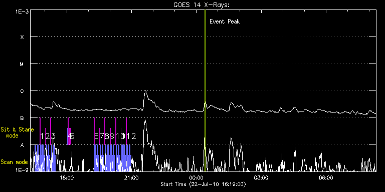 EIS Observation timeline overlay to GOES-Xray curve Code 1" 2" 40" 266" EIS Observations list for this event: STUDY ACRONYM ID DATE OBSERVED DESCRIPTION NOAA# TARGET 0 Alignment_modify_v2 | 18361 | 2010/07/22 16:31:45 | Hinode instrument coalignment program | | Quiet Sun TIMELINE ID DATE OBSERVED FITS FILE XCEN (+W/-E) YCEN (+N/-S) DUR ----------------------------------------------------------------------------------------------------------------- 18361 | 2010/07/22 16:31:45.000 | eis_l0_20100722_163145.fits.gz | -9.50 | 944.47 | 2m34s 18361 | 2010/07/22 16:34:53.000 | eis_l0_20100722_163453.fits.gz | -9.50 | 944.47 | 2m34s 18361 | 2010/07/22 16:38:00.000 | eis_l0_20100722_163800.fits.gz | -9.50 | 944.55 | 2m34s 18361 | 2010/07/22 16:41:08.000 | eis_l0_20100722_164108.fits.gz | -9.50 | 944.47 | 2m34s 1 Alignment_modify_v2 | 18362 | 2010/07/22 16:45:20 | Hinode instrument coalignment program | | Quiet Sun TIMELINE ID DATE OBSERVED FITS FILE XCEN (+W/-E) YCEN (+N/-S) DUR ----------------------------------------------------------------------------------------------------------------- 18362 | 2010/07/22 16:45:20.000 | eis_l0_20100722_164520.fits.gz | -0.10 | 944.47 | 1m 18362 | 2010/07/22 16:46:45.000 | eis_l0_20100722_164645.fits.gz | -9.58 | 944.55 | 2m34s 18362 | 2010/07/22 16:49:53.000 | eis_l0_20100722_164953.fits.gz | -9.58 | 944.55 | 2m34s 18362 | 2010/07/22 16:53:00.000 | eis_l0_20100722_165300.fits.gz | -9.66 | 944.62 | 2m34s 18362 | 2010/07/22 16:56:08.000 | eis_l0_20100722_165608.fits.gz | -9.50 | 944.55 | 2m34s 2 Alignment_modify_v2 | 18363 | 2010/07/22 17:00:20 | Hinode instrument coalignment program | | Quiet Sun TIMELINE ID DATE OBSERVED FITS FILE XCEN (+W/-E) YCEN (+N/-S) DUR ----------------------------------------------------------------------------------------------------------------- 18363 | 2010/07/22 17:00:20.000 | eis_l0_20100722_170020.fits.gz | -0.02 | 944.62 | 1m 18363 | 2010/07/22 17:01:45.000 | eis_l0_20100722_170145.fits.gz | -9.50 | 944.62 | 2m34s 18363 | 2010/07/22 17:04:53.000 | eis_l0_20100722_170453.fits.gz | -9.50 | 944.55 | 2m34s 18363 | 2010/07/22 17:08:00.000 | eis_l0_20100722_170800.fits.gz | -9.58 | 944.62 | 2m34s 18363 | 2010/07/22 17:11:08.000 | eis_l0_20100722_171108.fits.gz | -9.58 | 944.47 | 2m34s 3 Alignment_modify_v2 | 18364 | 2010/07/22 17:15:20 | Hinode instrument coalignment program | | Quiet Sun TIMELINE ID DATE OBSERVED FITS FILE XCEN (+W/-E) YCEN (+N/-S) DUR ----------------------------------------------------------------------------------------------------------------- 18364 | 2010/07/22 17:15:20.000 | eis_l0_20100722_171520.fits.gz | -0.02 | 944.55 | 1m 18364 | 2010/07/22 17:16:45.000 | eis_l0_20100722_171645.fits.gz | -9.58 | 944.55 | 2m34s 18364 | 2010/07/22 17:19:53.000 | eis_l0_20100722_171953.fits.gz | -9.50 | 944.55 | 2m34s 18364 | 2010/07/22 17:23:00.000 | eis_l0_20100722_172300.fits.gz | -9.50 | 944.55 | 2m35s 18364 | 2010/07/22 17:26:08.000 | eis_l0_20100722_172608.fits.gz | -9.50 | 944.47 | 2m34s 4 SYNOP005_A | 18357 | 2010/07/22 18:02:13 | Sensitivity monitoring during XRT syno | | Quiet Sun TIMELINE ID DATE OBSERVED FITS FILE XCEN (+W/-E) YCEN (+N/-S) DUR ----------------------------------------------------------------------------------------------------------------- 18357 | 2010/07/22 18:02:13.000 | eis_l0_20100722_180213.fits.gz | -19.52 | -0.50 | 1m31s 18357 | 2010/07/22 18:03:54.000 | eis_l0_20100722_180354.fits.gz | -0.02 | -0.35 | 1m31s 5 regcal074 | 18365 | 2010/07/22 18:08:12 | Dark exposures including overscan pixe | | Engineering TIMELINE ID DATE OBSERVED FITS FILE XCEN (+W/-E) YCEN (+N/-S) DUR ----------------------------------------------------------------------------------------------------------------- 18365 | 2010/07/22 18:08:12.000 | eis_l0_20100722_180812.fits.gz | 14.51 | 205.50 | 3m22s 6 Alignment_modify_v2 | 18368 | 2010/07/22 19:15:41 | Hinode instrument coalignment program | | Quiet Sun TIMELINE ID DATE OBSERVED FITS FILE XCEN (+W/-E) YCEN (+N/-S) DUR ----------------------------------------------------------------------------------------------------------------- 18368 | 2010/07/22 19:15:41.000 | eis_l0_20100722_191541.fits.gz | -9854.52 | -9963.20 | 1m 18368 | 2010/07/22 19:17:06.000 | eis_l0_20100722_191706.fits.gz | -9893.96 | -9963.20 | 2m34s 18368 | 2010/07/22 19:20:14.000 | eis_l0_20100722_192014.fits.gz | -9893.96 | -9963.20 | 2m34s 18368 | 2010/07/22 19:23:21.000 | eis_l0_20100722_192321.fits.gz | -9893.96 | -9963.20 | 2m34s 18368 | 2010/07/22 19:26:29.000 | eis_l0_20100722_192629.fits.gz | -9893.96 | -9963.20 | 2m34s 7 Alignment_modify_v2 | 18369 | 2010/07/22 19:30:20 | Hinode instrument coalignment program | | Quiet Sun TIMELINE ID DATE OBSERVED FITS FILE XCEN (+W/-E) YCEN (+N/-S) DUR ----------------------------------------------------------------------------------------------------------------- 18369 | 2010/07/22 19:30:20.000 | eis_l0_20100722_193020.fits.gz | -9854.52 | -9963.20 | 1m 18369 | 2010/07/22 19:31:45.000 | eis_l0_20100722_193145.fits.gz | -9893.96 | -9963.20 | 2m34s 18369 | 2010/07/22 19:34:53.000 | eis_l0_20100722_193453.fits.gz | -9893.96 | -9963.20 | 2m34s 18369 | 2010/07/22 19:38:00.000 | eis_l0_20100722_193800.fits.gz | -9893.96 | -9963.20 | 2m34s 18369 | 2010/07/22 19:41:08.000 | eis_l0_20100722_194108.fits.gz | -9893.96 | -9963.20 | 2m34s 8 Alignment_modify_v2 | 18370 | 2010/07/22 19:45:20 | Hinode instrument coalignment program | | Quiet Sun TIMELINE ID DATE OBSERVED FITS FILE XCEN (+W/-E) YCEN (+N/-S) DUR ----------------------------------------------------------------------------------------------------------------- 18370 | 2010/07/22 19:45:20.000 | eis_l0_20100722_194520.fits.gz | -9854.52 | -9963.20 | 1m 18370 | 2010/07/22 19:46:45.000 | eis_l0_20100722_194645.fits.gz | -9893.96 | -9963.20 | 2m34s 18370 | 2010/07/22 19:49:53.000 | eis_l0_20100722_194953.fits.gz | -9893.96 | -9963.20 | 2m34s 18370 | 2010/07/22 19:53:00.000 | eis_l0_20100722_195300.fits.gz | -9893.96 | -