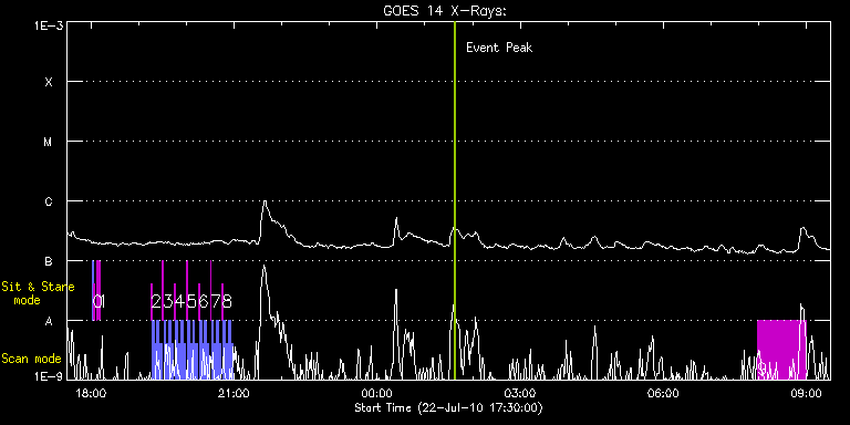 EIS Observation timeline overlay to GOES-Xray curve Code 1" 2" 40" 266" EIS Observations list for this event: STUDY ACRONYM ID DATE OBSERVED DESCRIPTION NOAA# TARGET 0 SYNOP005_A | 18357 | 2010/07/22 18:02:13 | Sensitivity monitoring during XRT syno | | Quiet Sun TIMELINE ID DATE OBSERVED FITS FILE XCEN (+W/-E) YCEN (+N/-S) DUR ----------------------------------------------------------------------------------------------------------------- 18357 | 2010/07/22 18:02:13.000 | eis_l0_20100722_180213.fits.gz | -19.52 | -0.50 | 1m31s 18357 | 2010/07/22 18:03:54.000 | eis_l0_20100722_180354.fits.gz | -0.02 | -0.35 | 1m31s 1 regcal074 | 18365 | 2010/07/22 18:08:12 | Dark exposures including overscan pixe | | Engineering TIMELINE ID DATE OBSERVED FITS FILE XCEN (+W/-E) YCEN (+N/-S) DUR ----------------------------------------------------------------------------------------------------------------- 18365 | 2010/07/22 18:08:12.000 | eis_l0_20100722_180812.fits.gz | 14.51 | 205.50 | 3m22s 2 Alignment_modify_v2 | 18368 | 2010/07/22 19:15:41 | Hinode instrument coalignment program | | Quiet Sun TIMELINE ID DATE OBSERVED FITS FILE XCEN (+W/-E) YCEN (+N/-S) DUR ----------------------------------------------------------------------------------------------------------------- 18368 | 2010/07/22 19:15:41.000 | eis_l0_20100722_191541.fits.gz | -9854.52 | -9963.20 | 1m 18368 | 2010/07/22 19:17:06.000 | eis_l0_20100722_191706.fits.gz | -9893.96 | -9963.20 | 2m34s 18368 | 2010/07/22 19:20:14.000 | eis_l0_20100722_192014.fits.gz | -9893.96 | -9963.20 | 2m34s 18368 | 2010/07/22 19:23:21.000 | eis_l0_20100722_192321.fits.gz | -9893.96 | -9963.20 | 2m34s 18368 | 2010/07/22 19:26:29.000 | eis_l0_20100722_192629.fits.gz | -9893.96 | -9963.20 | 2m34s 3 Alignment_modify_v2 | 18369 | 2010/07/22 19:30:20 | Hinode instrument coalignment program | | Quiet Sun TIMELINE ID DATE OBSERVED FITS FILE XCEN (+W/-E) YCEN (+N/-S) DUR ----------------------------------------------------------------------------------------------------------------- 18369 | 2010/07/22 19:30:20.000 | eis_l0_20100722_193020.fits.gz | -9854.52 | -9963.20 | 1m 18369 | 2010/07/22 19:31:45.000 | eis_l0_20100722_193145.fits.gz | -9893.96 | -9963.20 | 2m34s 18369 | 2010/07/22 19:34:53.000 | eis_l0_20100722_193453.fits.gz | -9893.96 | -9963.20 | 2m34s 18369 | 2010/07/22 19:38:00.000 | eis_l0_20100722_193800.fits.gz | -9893.96 | -9963.20 | 2m34s 18369 | 2010/07/22 19:41:08.000 | eis_l0_20100722_194108.fits.gz | -9893.96 | -9963.20 | 2m34s 4 Alignment_modify_v2 | 18370 | 2010/07/22 19:45:20 | Hinode instrument coalignment program | | Quiet Sun TIMELINE ID DATE OBSERVED FITS FILE XCEN (+W/-E) YCEN (+N/-S) DUR ----------------------------------------------------------------------------------------------------------------- 18370 | 2010/07/22 19:45:20.000 | eis_l0_20100722_194520.fits.gz | -9854.52 | -9963.20 | 1m 18370 | 2010/07/22 19:46:45.000 | eis_l0_20100722_194645.fits.gz | -9893.96 | -9963.20 | 2m34s 18370 | 2010/07/22 19:49:53.000 | eis_l0_20100722_194953.fits.gz | -9893.96 | -9963.20 | 2m34s 18370 | 2010/07/22 19:53:00.000 | eis_l0_20100722_195300.fits.gz | -9893.96 | -9963.20 | 2m34s 18370 | 2010/07/22 19:56:08.000 | eis_l0_20100722_195608.fits.gz | -9893.96 | -9963.20 | 2m34s 5 Alignment_modify_v2 | 18371 | 2010/07/22 20:00:20 | Hinode instrument coalignment program | | Quiet Sun TIMELINE ID DATE OBSERVED FITS FILE XCEN (+W/-E) YCEN (+N/-S) DUR ----------------------------------------------------------------------------------------------------------------- 18371 | 2010/07/22 20:00:20.000 | eis_l0_20100722_200020.fits.gz | -9854.52 | -9963.20 | 1m 18371 | 2010/07/22 20:01:46.000 | eis_l0_20100722_200146.fits.gz | -9893.96 | -9963.20 | 2m34s 18371 | 2010/07/22 20:04:53.000 | eis_l0_20100722_200453.fits.gz | -9893.96 | -9963.20 | 2m34s 18371 | 2010/07/22 20:08:01.000 | eis_l0_20100722_200801.fits.gz | -9893.96 | -9963.20 | 2m34s 18371 | 2010/07/22 20:11:08.000 | eis_l0_20100722_201108.fits.gz | -9893.96 | -9963.20 | 2m34s 6 Alignment_modify_v2 | 18372 | 2010/07/22 20:15:20 | Hinode instrument coalignment program | | Quiet Sun TIMELINE ID DATE OBSERVED FITS FILE XCEN (+W/-E) YCEN (+N/-S) DUR ----------------------------------------------------------------------------------------------------------------- 18372 | 2010/07/22 20:15:20.000 | eis_l0_20100722_201520.fits.gz | -9854.52 | -9963.20 | 1m 18372 | 2010/07/22 20:16:45.000 | eis_l0_20100722_201645.fits.gz | -9893.96 | -9963.20 | 2m34s 18372 | 2010/07/22 20:19:53.000 | eis_l0_20100722_201953.fits.gz | -9893.96 | -9963.20 | 2m34s 18372 | 2010/07/22 20:23:00.000 | eis_l0_20100722_202300.fits.gz | -9893.96 | -9963.20 | 2m34s 18372 | 2010/07/22 20:26:08.000 | eis_l0_20100722_202608.fits.gz | -9893.96 | -9963.20 | 2m34s 7 Alignment_modify_v2 | 18373 | 2010/07/22 20:30:20 | Hinode instrument coalignment program | | Quiet Sun TIMELINE ID DATE OBSERVED FITS FILE XCEN (+W/-E) YCEN (+N/-S) DUR ----------------------------------------------------------------------------------------------------------------- 18373 | 2010/07/22 20:30:20.000 | eis_l0_20100722_203020.fits.gz | -9854.52 | -9963.20 | 1m 18373 | 2010/07/22 20:31:45.000 | eis_l0_20100722_203145.fits.gz | -9893.96 | -9963.20 | 2m34s 18373 | 2010/07/22 20:34:53.000 | eis_l0_20100722_203453.fits.gz | -9893.96 | -9963.20 | 2m34s 18373 | 2010/07/22 20:38:00.000 | eis_l0_20100722_203800.fits.gz | -9893.96 | -9963.20 | 2m34s 18373 | 2010/07/22 20:41:08.000 | eis_l0_20100722_204108.fits.gz | -9893.96 | -9963.20 | 2m34s 8 Alignment_modify_v2 | 18374 | 2010/07/22 20:45:20 | Hinode instrument coalignment program | | Quiet Sun TIMELINE ID DATE OBSERVED FITS FILE XCEN (+W/-E) YCEN (+N/-S) DUR ----------------------------------------------------------------------------------------------------------------- 18374 | 2010/07/22 20:45:20.000 | eis_l0_20100722_204520.fits.gz | -9854.52 | -9963.20 | 1m 18374 | 2010/07/22 20:46:45.000 | eis_l0_20100722_204645.fits.gz | -9893.96 | -996