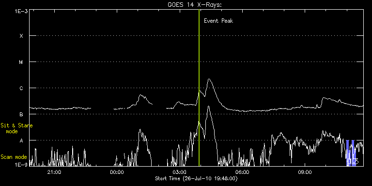 EIS Observation timeline overlay to GOES-Xray curve Code 1" 2" 40" 266" EIS Observations list for this event: STUDY ACRONYM ID DATE OBSERVED DESCRIPTION NOAA# TARGET 0 full_sun_slot_scan_1 | 18434 | 2010/07/27 10:59:34 | HOP 130: Multi-temperature Full Disk S | 1091 | Quiet Sun TIMELINE ID DATE OBSERVED FITS FILE XCEN (+W/-E) YCEN (+N/-S) DUR ----------------------------------------------------------------------------------------------------------------- 18434 | 2010/07/27 10:59:34.000 | eis_l0_20100727_105934.fits.gz | 920.69 | 185.65 | 5m28s 1 full_sun_slot_scan_1 | 18436 | 2010/07/27 11:05:07 | HOP 130: Multi-temperature Full Disk S | | Quiet Sun TIMELINE ID DATE OBSERVED FITS FILE XCEN (+W/-E) YCEN (+N/-S) DUR ----------------------------------------------------------------------------------------------------------------- 18436 | 2010/07/27 11:05:07.000 | eis_l0_20100727_110507.fits.gz | 920.69 | -286.50 | 5m26s 2 full_sun_slot_scan_1 | 18437 | 2010/07/27 11:15:14 | HOP 130: Multi-temperature Full Disk S | | Quiet Sun TIMELINE ID DATE OBSERVED FITS FILE XCEN (+W/-E) YCEN (+N/-S) DUR ----------------------------------------------------------------------------------------------------------------- 18437 | 2010/07/27 11:15:14.000 | eis_l0_20100727_111514.fits.gz | 452.64 | 185.50 | 5m27s 3 full_sun_slot_scan_1 | 18438 | 2010/07/27 11:20:46 | HOP 130: Multi-temperature Full Disk S | 1089 | Quiet Sun TIMELINE ID DATE OBSERVED FITS FILE XCEN (+W/-E) YCEN (+N/-S) DUR ----------------------------------------------------------------------------------------------------------------- 18438 | 2010/07/27 11:20:46.000 | eis_l0_20100727_112046.fits.gz | 452.64 | -286.50 | 5m27s : Check study information : Download file : View thumbnails For this event, also check for: