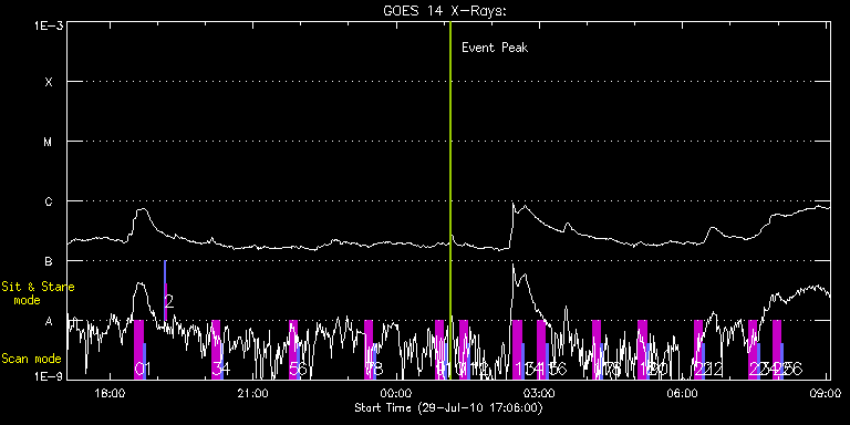 EIS Observation timeline overlay to GOES-Xray curve Code 1" 2" 40" 266" EIS Observations list for this event: STUDY ACRONYM ID DATE OBSERVED DESCRIPTION NOAA# TARGET 0 SK_DEEP_5x512_SLIT1 | 18499 | 2010/07/29 18:31:20 | HOP 79: Synoptic SOT Irradiance Scans | | Quiet Sun TIMELINE ID DATE OBSERVED FITS FILE XCEN (+W/-E) YCEN (+N/-S) DUR ----------------------------------------------------------------------------------------------------------------- 18499 | 2010/07/29 18:31:20.000 | eis_l0_20100729_183120.fits.gz | -5.12 | -378.32 | 10m8s 1 PRY_slot_contextLITE | 18500 | 2010/07/29 18:41:53 | HOP 79: Synoptic SOT Irradiance Scans | | Active Region TIMELINE ID DATE OBSERVED FITS FILE XCEN (+W/-E) YCEN (+N/-S) DUR ----------------------------------------------------------------------------------------------------------------- 18500 | 2010/07/29 18:41:53.000 | eis_l0_20100729_184153.fits.gz | -20.27 | -378.47 | 2m57s 2 SYNOP005_A | 18501 | 2010/07/29 19:08:14 | | | Quiet Sun TIMELINE ID DATE OBSERVED FITS FILE XCEN (+W/-E) YCEN (+N/-S) DUR ----------------------------------------------------------------------------------------------------------------- 18501 | 2010/07/29 19:08:14.000 | eis_l0_20100729_190814.fits.gz | -19.52 | -0.50 | 1m30s 18501 | 2010/07/29 19:09:55.000 | eis_l0_20100729_190955.fits.gz | -0.02 | -0.42 | 1m30s 3 SK_DEEP_5x512_SLIT1 | 18502 | 2010/07/29 20:08:13 | HOP 79: Synoptic SOT Irradiance Scans | | Quiet Sun TIMELINE ID DATE OBSERVED FITS FILE XCEN (+W/-E) YCEN (+N/-S) DUR ----------------------------------------------------------------------------------------------------------------- 18502 | 2010/07/29 20:08:13.000 | eis_l0_20100729_200813.fits.gz | -5.04 | -278.59 | 10m8s 4 PRY_slot_contextLITE | 18503 | 2010/07/29 20:18:47 | HOP 79: Synoptic SOT Irradiance Scans | | Active Region TIMELINE ID DATE OBSERVED FITS FILE XCEN (+W/-E) YCEN (+N/-S) DUR ----------------------------------------------------------------------------------------------------------------- 18503 | 2010/07/29 20:18:47.000 | eis_l0_20100729_201847.fits.gz | -20.34 | -278.36 | 2m56s 5 SK_DEEP_5x512_SLIT1 | 18504 | 2010/07/29 21:45:20 | HOP 79: Synoptic SOT Irradiance Scans | | Quiet Sun TIMELINE ID DATE OBSERVED FITS FILE XCEN (+W/-E) YCEN (+N/-S) DUR ----------------------------------------------------------------------------------------------------------------- 18504 | 2010/07/29 21:45:20.000 | eis_l0_20100729_214520.fits.gz | -5.12 | -178.17 | 10m7s 6 PRY_slot_contextLITE | 18505 | 2010/07/29 21:55:53 | HOP 79: Synoptic SOT Irradiance Scans | | Active Region TIMELINE ID DATE OBSERVED FITS FILE XCEN (+W/-E) YCEN (+N/-S) DUR ----------------------------------------------------------------------------------------------------------------- 18505 | 2010/07/29 21:55:53.000 | eis_l0_20100729_215553.fits.gz | -20.27 | -178.25 | 2m56s 7 SK_DEEP_5x512_SLIT1 | 18506 | 2010/07/29 23:20:20 | HOP 79: Synoptic SOT Irradiance Scans | | Quiet Sun TIMELINE ID DATE OBSERVED FITS FILE XCEN (+W/-E) YCEN (+N/-S) DUR ----------------------------------------------------------------------------------------------------------------- 18506 | 2010/07/29 23:20:20.000 | eis_l0_20100729_232020.fits.gz | -4.96 | -78.52 | 10m8s 8 PRY_slot_contextLITE | 18507 | 2010/07/29 23:30:53 | HOP 79: Synoptic SOT Irradiance Scans | | Active Region TIMELINE ID DATE OBSERVED FITS FILE XCEN (+W/-E) YCEN (+N/-S) DUR ----------------------------------------------------------------------------------------------------------------- 18507 | 2010/07/29 23:30:53.000 | eis_l0_20100729_233053.fits.gz | -20.27 | -78.44 | 2m56s 9 SK_DEEP_5x512_SLIT1 | 18508 | 2010/07/30 00:49:20 | HOP 79: Synoptic SOT Irradiance Scans | | Quiet Sun TIMELINE ID DATE OBSERVED FITS FILE XCEN (+W/-E) YCEN (+N/-S) DUR ----------------------------------------------------------------------------------------------------------------- 18508 | 2010/07/30 00:49:20.000 | eis_l0_20100730_004920.fits.gz | -5.12 | 11.40 | 10m8s 10 PRY_slot_contextLITE | 18509 | 2010/07/30 00:59:54 | HOP 79: Synoptic SOT Irradiance Scans | | Active Region TIMELINE ID DATE OBSERVED FITS FILE XCEN (+W/-E) YCEN (+N/-S) DUR ----------------------------------------------------------------------------------------------------------------- 18509 | 2010/07/30 00:59:54.000 | eis_l0_20100730_005954.fits.gz | -20.27 | 11.32 | 2m56s 11 SK_DEEP_5x512_SLIT1 | 18510 | 2010/07/30 01:19:20 | HOP 79: Synoptic SOT Irradiance Scans | | Quiet Sun TIMELINE ID DATE OBSERVED FITS FILE XCEN (+W/-E) YCEN (+N/-S) DUR ----------------------------------------------------------------------------------------------------------------- 18510 | 2010/07/30 01:19:20.000 | eis_l0_20100730_011920.fits.gz | -5.04 | 111.51 | 10m8s 12 PRY_slot_contextLITE | 18511 | 2010/07/30 01:29:54 | HOP 79: Synoptic SOT Irradiance Scans | | Active Region TIMELINE ID DATE OBSERVED FITS FILE XCEN (+W/-E) YCEN (+N/-S) DUR ----------------------------------------------------------------------------------------------------------------- 18511 | 2010/07/30 01:29:54.000 | eis_l0_20100730_012954.fits.gz | -20.27 | 111.51 | 2m56s 13 SK_DEEP_5x512_SLIT1 | 18512 | 2010/07/30 02:27:20 | HOP 79: Synoptic SOT Irradiance Scans | | Quiet Sun TIMELINE ID DATE OBSERVED FITS FILE XCEN (+W/-E) YCEN (+N/-S) DUR ----------------------------------------------------------------------------------------------------------------- 18512 | 2010/07/30 02:27:20.000 | eis_l0_20100730_022720.fits.gz | -5.12 | 211.78 | 10m8s 14 PRY_slot_contextLITE | 18513 | 2010/07/30 02:37:53 | HOP 79: Synoptic SOT Irradiance Scans | | Active Region TIMELINE ID DATE OBSERVED FITS FILE XCEN (+W/-E) YCEN (+N/-S) DUR ----------------------------------------------------------------------------------------------------------------- 18513 | 2010/07/30 02:37:53.000 | eis_l0_20100730_023753.fits.gz | -20.34 | 211.47 | 2m57s 15 SK_DEEP_5x512_SLIT1 | 18514 | 2010/07/30 02:57:20 | HOP 79: Synoptic SOT Irradiance Scans | | Quie