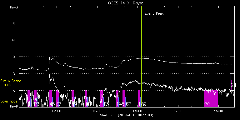 EIS Observation timeline overlay to GOES-Xray curve Code 1" 2" 40" 266" EIS Observations list for this event: STUDY ACRONYM ID DATE OBSERVED DESCRIPTION NOAA# TARGET 0 SK_DEEP_5x512_SLIT1 | 18508 | 2010/07/30 00:49:20 | HOP 79: Synoptic SOT Irradiance Scans | | Quiet Sun TIMELINE ID DATE OBSERVED FITS FILE XCEN (+W/-E) YCEN (+N/-S) DUR ----------------------------------------------------------------------------------------------------------------- 18508 | 2010/07/30 00:49:20.000 | eis_l0_20100730_004920.fits.gz | -5.12 | 11.40 | 10m8s 1 PRY_slot_contextLITE | 18509 | 2010/07/30 00:59:54 | HOP 79: Synoptic SOT Irradiance Scans | | Active Region TIMELINE ID DATE OBSERVED FITS FILE XCEN (+W/-E) YCEN (+N/-S) DUR ----------------------------------------------------------------------------------------------------------------- 18509 | 2010/07/30 00:59:54.000 | eis_l0_20100730_005954.fits.gz | -20.27 | 11.32 | 2m56s 2 SK_DEEP_5x512_SLIT1 | 18510 | 2010/07/30 01:19:20 | HOP 79: Synoptic SOT Irradiance Scans | | Quiet Sun TIMELINE ID DATE OBSERVED FITS FILE XCEN (+W/-E) YCEN (+N/-S) DUR ----------------------------------------------------------------------------------------------------------------- 18510 | 2010/07/30 01:19:20.000 | eis_l0_20100730_011920.fits.gz | -5.04 | 111.51 | 10m8s 3 PRY_slot_contextLITE | 18511 | 2010/07/30 01:29:54 | HOP 79: Synoptic SOT Irradiance Scans | | Active Region TIMELINE ID DATE OBSERVED FITS FILE XCEN (+W/-E) YCEN (+N/-S) DUR ----------------------------------------------------------------------------------------------------------------- 18511 | 2010/07/30 01:29:54.000 | eis_l0_20100730_012954.fits.gz | -20.27 | 111.51 | 2m56s 4 SK_DEEP_5x512_SLIT1 | 18512 | 2010/07/30 02:27:20 | HOP 79: Synoptic SOT Irradiance Scans | | Quiet Sun TIMELINE ID DATE OBSERVED FITS FILE XCEN (+W/-E) YCEN (+N/-S) DUR ----------------------------------------------------------------------------------------------------------------- 18512 | 2010/07/30 02:27:20.000 | eis_l0_20100730_022720.fits.gz | -5.12 | 211.78 | 10m8s 5 PRY_slot_contextLITE | 18513 | 2010/07/30 02:37:53 | HOP 79: Synoptic SOT Irradiance Scans | | Active Region TIMELINE ID DATE OBSERVED FITS FILE XCEN (+W/-E) YCEN (+N/-S) DUR ----------------------------------------------------------------------------------------------------------------- 18513 | 2010/07/30 02:37:53.000 | eis_l0_20100730_023753.fits.gz | -20.34 | 211.47 | 2m57s 6 SK_DEEP_5x512_SLIT1 | 18514 | 2010/07/30 02:57:20 | HOP 79: Synoptic SOT Irradiance Scans | | Quiet Sun TIMELINE ID DATE OBSERVED FITS FILE XCEN (+W/-E) YCEN (+N/-S) DUR ----------------------------------------------------------------------------------------------------------------- 18514 | 2010/07/30 02:57:20.000 | eis_l0_20100730_025720.fits.gz | -5.12 | 311.73 | 10m8s 7 PRY_slot_contextLITE | 18515 | 2010/07/30 03:07:53 | HOP 79: Synoptic SOT Irradiance Scans | | Active Region TIMELINE ID DATE OBSERVED FITS FILE XCEN (+W/-E) YCEN (+N/-S) DUR ----------------------------------------------------------------------------------------------------------------- 18515 | 2010/07/30 03:07:53.000 | eis_l0_20100730_030753.fits.gz | -20.34 | 311.58 | 2m57s 8 SK_DEEP_5x512_SLIT1 | 18516 | 2010/07/30 04:06:20 | HOP 79: Synoptic SOT Irradiance Scans | | Quiet Sun TIMELINE ID DATE OBSERVED FITS FILE XCEN (+W/-E) YCEN (+N/-S) DUR ----------------------------------------------------------------------------------------------------------------- 18516 | 2010/07/30 04:06:20.000 | eis_l0_20100730_040620.fits.gz | -5.12 | 411.31 | 10m8s 9 PRY_slot_contextLITE | 18517 | 2010/07/30 04:16:54 | HOP 79: Synoptic SOT Irradiance Scans | | Active Region TIMELINE ID DATE OBSERVED FITS FILE XCEN (+W/-E) YCEN (+N/-S) DUR ----------------------------------------------------------------------------------------------------------------- 18517 | 2010/07/30 04:16:54.000 | eis_l0_20100730_041654.fits.gz | -20.34 | 411.38 | 2m56s 10 SK_DEEP_5x512_SLIT1 | 18518 | 2010/07/30 05:04:20 | HOP 79: Synoptic SOT Irradiance Scans | | Quiet Sun TIMELINE ID DATE OBSERVED FITS FILE XCEN (+W/-E) YCEN (+N/-S) DUR ----------------------------------------------------------------------------------------------------------------- 18518 | 2010/07/30 05:04:20.000 | eis_l0_20100730_050420.fits.gz | -5.12 | 511.57 | 10m7s 11 PRY_slot_contextLITE | 18519 | 2010/07/30 05:14:53 | HOP 79: Synoptic SOT Irradiance Scans | | Active Region TIMELINE ID DATE OBSERVED FITS FILE XCEN (+W/-E) YCEN (+N/-S) DUR ----------------------------------------------------------------------------------------------------------------- 18519 | 2010/07/30 05:14:53.000 | eis_l0_20100730_051453.fits.gz | -20.27 | 511.42 | 2m56s 12 SK_DEEP_5x512_SLIT1 | 18520 | 2010/07/30 06:14:20 | HOP 79: Synoptic SOT Irradiance Scans | | Quiet Sun TIMELINE ID DATE OBSERVED FITS FILE XCEN (+W/-E) YCEN (+N/-S) DUR ----------------------------------------------------------------------------------------------------------------- 18520 | 2010/07/30 06:14:20.000 | eis_l0_20100730_061420.fits.gz | -5.20 | 611.53 | 10m7s 13 PRY_slot_contextLITE | 18521 | 2010/07/30 06:24:53 | HOP 79: Synoptic SOT Irradiance Scans | | Active Region TIMELINE ID DATE OBSERVED FITS FILE XCEN (+W/-E) YCEN (+N/-S) DUR ----------------------------------------------------------------------------------------------------------------- 18521 | 2010/07/30 06:24:53.000 | eis_l0_20100730_062453.fits.gz | -20.27 | 611.53 | 2m56s 14 SK_DEEP_5x512_SLIT1 | 18522 | 2010/07/30 07:23:20 | HOP 79: Synoptic SOT Irradiance Scans | | Quiet Sun TIMELINE ID DATE OBSERVED FITS FILE XCEN (+W/-E) YCEN (+N/-S) DUR ----------------------------------------------------------------------------------------------------------------- 18522 | 2010/07/30 07:23:20.000 | eis_l0_20100730_072320.fits.gz | -5.12 | 711.65 | 10m7s 15 PRY_slot_contextLITE | 18523 | 2010/07/30 07:33:53 | HOP 79: Synoptic SOT Irradiance Scans | | Active Region TIMELINE ID DATE OBSERVED FITS FILE X