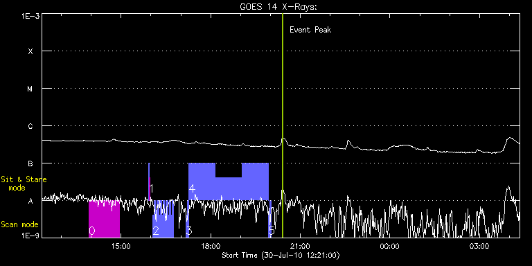 EIS Observation timeline overlay to GOES-Xray curve Code 1" 2" 40" 266" EIS Observations list for this event: STUDY ACRONYM ID DATE OBSERVED DESCRIPTION NOAA# TARGET 0 HPW021_VEL_120x512v1 | 18533 | 2010/07/30 13:55:20 | AR Temperatures and Flows - Warren | 1089 | Active Region TIMELINE ID DATE OBSERVED FITS FILE XCEN (+W/-E) YCEN (+N/-S) DUR ----------------------------------------------------------------------------------------------------------------- 18533 | 2010/07/30 13:55:20.000 | eis_l0_20100730_135520.fits.gz | 787.56 | -434.86 | 1h1m52s 1 SYNOP005_A | 18528 | 2010/07/30 15:54:34 | | | Quiet Sun TIMELINE ID DATE OBSERVED FITS FILE XCEN (+W/-E) YCEN (+N/-S) DUR ----------------------------------------------------------------------------------------------------------------- 18528 | 2010/07/30 15:54:34.000 | eis_l0_20100730_155434.fits.gz | -19.52 | -0.50 | 1m30s 18528 | 2010/07/30 15:56:15.000 | eis_l0_20100730_155615.fits.gz | -0.10 | -0.50 | 1m30s 2 PRY_slot_context_v3 | 18534 | 2010/07/30 16:03:34 | HOP 77: Support SUMI rocket flight | 1092 | Active Region TIMELINE ID DATE OBSERVED FITS FILE XCEN (+W/-E) YCEN (+N/-S) DUR ----------------------------------------------------------------------------------------------------------------- 18534 | 2010/07/30 16:03:34.000 | eis_l0_20100730_160334.fits.gz | -725.23 | 127.81 | 2m56s 18534 | 2010/07/30 16:06:34.000 | eis_l0_20100730_160634.fits.gz | -724.84 | 127.65 | 2m56s 18534 | 2010/07/30 16:09:34.000 | eis_l0_20100730_160934.fits.gz | -724.61 | 127.50 | 2m57s 18534 | 2010/07/30 16:12:35.000 | eis_l0_20100730_161235.fits.gz | -724.22 | 127.50 | 2m57s 18534 | 2010/07/30 16:15:36.000 | eis_l0_20100730_161536.fits.gz | -723.99 | 127.50 | 2m56s 18534 | 2010/07/30 16:18:36.000 | eis_l0_20100730_161836.fits.gz | -723.68 | 127.50 | 2m56s 18534 | 2010/07/30 16:21:36.000 | eis_l0_20100730_162136.fits.gz | -723.38 | 127.50 | 2m57s 18534 | 2010/07/30 16:24:37.000 | eis_l0_20100730_162437.fits.gz | -723.07 | 127.42 | 2m56s 18534 | 2010/07/30 16:27:37.000 | eis_l0_20100730_162737.fits.gz | -722.76 | 127.50 | 2m57s 18534 | 2010/07/30 16:30:38.000 | eis_l0_20100730_163038.fits.gz | -722.53 | 127.42 | 2m56s 18534 | 2010/07/30 16:33:39.000 | eis_l0_20100730_163339.fits.gz | -722.14 | 127.27 | 2m56s 18534 | 2010/07/30 16:36:39.000 | eis_l0_20100730_163639.fits.gz | -721.91 | 127.35 | 2m57s 18534 | 2010/07/30 16:39:40.000 | eis_l0_20100730_163940.fits.gz | -721.60 | 127.35 | 2m56s 18534 | 2010/07/30 16:42:41.000 | eis_l0_20100730_164241.fits.gz | -721.29 | 127.27 | 2m56s 3 PRY_slot_context_v3 | 18529 | 2010/07/30 17:10:13 | HOP 77: Support SUMI rocket flight | 1092 | Active Region TIMELINE ID DATE OBSERVED FITS FILE XCEN (+W/-E) YCEN (+N/-S) DUR ----------------------------------------------------------------------------------------------------------------- 18529 | 2010/07/30 17:10:13.000 | eis_l0_20100730_171013.fits.gz | -718.59 | 127.04 | 2m56s 18529 | 2010/07/30 17:13:13.000 | eis_l0_20100730_171313.fits.gz | -718.43 | 126.96 | 2m57s 4 IUU_SLOT_SNS_AR_02 | 18530 | 2010/07/30 17:16:15 | HOP 77: Support SUMI rocket flight | | Active Region TIMELINE ID DATE OBSERVED FITS FILE XCEN (+W/-E) YCEN (+N/-S) DUR ----------------------------------------------------------------------------------------------------------------- 18530 | 2010/07/30 17:16:15.000 | eis_l0_20100730_171615.fits.gz | -722.40 | 126.80 | 53m7s 18530 | 2010/07/30 18:09:30.000 | eis_l0_20100730_180930.fits.gz | -717.14 | 126.19 | 53m7s 18530 | 2010/07/30 19:02:45.000 | eis_l0_20100730_190245.fits.gz | -711.89 | 125.57 | 53m8s 5 PRY_slot_context_v3 | 18531 | 2010/07/30 19:56:01 | HOP 77: Support SUMI rocket flight | 1092 | Active Region TIMELINE ID DATE OBSERVED FITS FILE XCEN (+W/-E) YCEN (+N/-S) DUR ----------------------------------------------------------------------------------------------------------------- 18531 | 2010/07/30 19:56:01.000 | eis_l0_20100730_195601.fits.gz | -702.29 | 124.87 | 2m57s 18531 | 2010/07/30 19:59:02.000 | eis_l0_20100730_195902.fits.gz | -701.98 | 124.95 | 2m57s : Check study information : Download file : View thumbnails For this event, also check for: