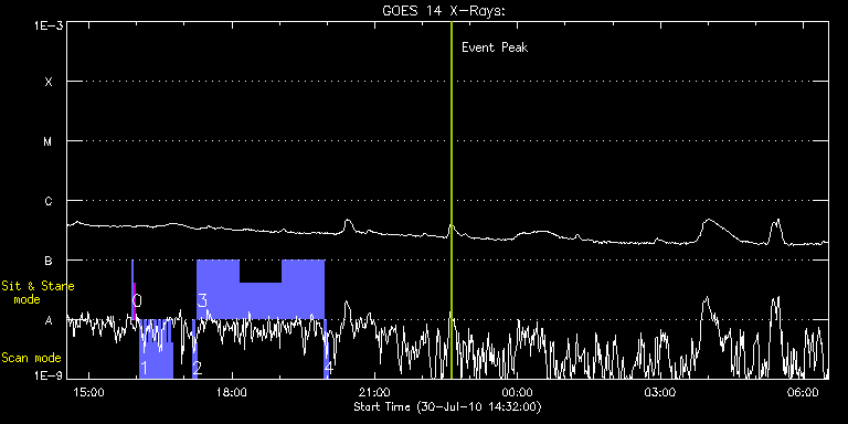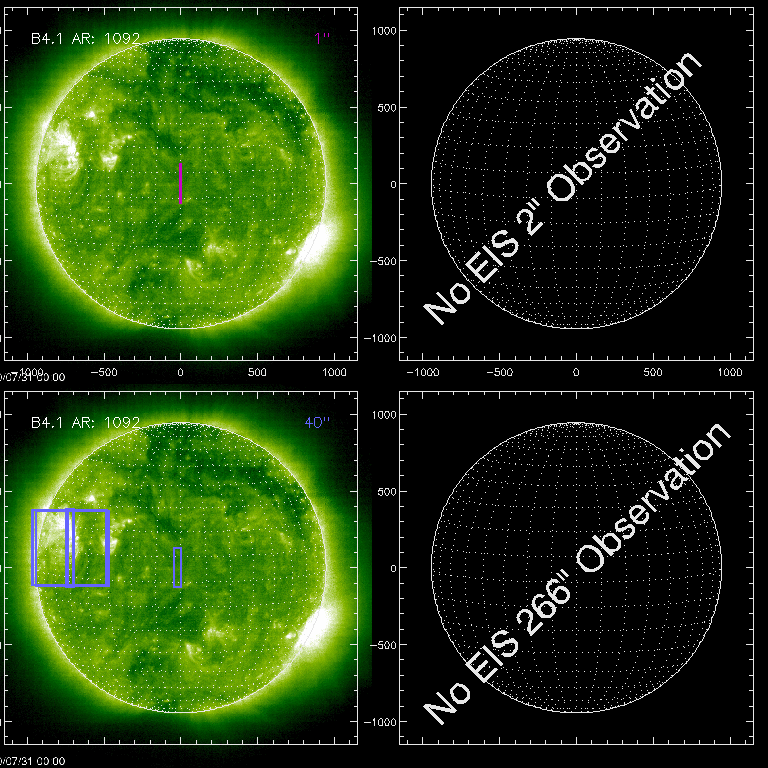 EIS Observation timeline overlay to GOES-Xray curve Code 1" 2" 40" 266" EIS Observations list for this event: STUDY ACRONYM ID DATE OBSERVED DESCRIPTION NOAA# TARGET 0 SYNOP005_A | 18528 | 2010/07/30 15:54:34 | | | Quiet Sun TIMELINE ID DATE OBSERVED FITS FILE XCEN (+W/-E) YCEN (+N/-S) DUR ----------------------------------------------------------------------------------------------------------------- 18528 | 2010/07/30 15:54:34.000 | eis_l0_20100730_155434.fits.gz | -19.52 | -0.50 | 1m30s 18528 | 2010/07/30 15:56:15.000 | eis_l0_20100730_155615.fits.gz | -0.10 | -0.50 | 1m30s 1 PRY_slot_context_v3 | 18534 | 2010/07/30 16:03:34 | HOP 77: Support SUMI rocket flight | 1092 | Active Region TIMELINE ID DATE OBSERVED FITS FILE XCEN (+W/-E) YCEN (+N/-S) DUR ----------------------------------------------------------------------------------------------------------------- 18534 | 2010/07/30 16:03:34.000 | eis_l0_20100730_160334.fits.gz | -725.23 | 127.81 | 2m56s 18534 | 2010/07/30 16:06:34.000 | eis_l0_20100730_160634.fits.gz | -724.84 | 127.65 | 2m56s 18534 | 2010/07/30 16:09:34.000 | eis_l0_20100730_160934.fits.gz | -724.61 | 127.50 | 2m57s 18534 | 2010/07/30 16:12:35.000 | eis_l0_20100730_161235.fits.gz | -724.22 | 127.50 | 2m57s 18534 | 2010/07/30 16:15:36.000 | eis_l0_20100730_161536.fits.gz | -723.99 | 127.50 | 2m56s 18534 | 2010/07/30 16:18:36.000 | eis_l0_20100730_161836.fits.gz | -723.68 | 127.50 | 2m56s 18534 | 2010/07/30 16:21:36.000 | eis_l0_20100730_162136.fits.gz | -723.38 | 127.50 | 2m57s 18534 | 2010/07/30 16:24:37.000 | eis_l0_20100730_162437.fits.gz | -723.07 | 127.42 | 2m56s 18534 | 2010/07/30 16:27:37.000 | eis_l0_20100730_162737.fits.gz | -722.76 | 127.50 | 2m57s 18534 | 2010/07/30 16:30:38.000 | eis_l0_20100730_163038.fits.gz | -722.53 | 127.42 | 2m56s 18534 | 2010/07/30 16:33:39.000 | eis_l0_20100730_163339.fits.gz | -722.14 | 127.27 | 2m56s 18534 | 2010/07/30 16:36:39.000 | eis_l0_20100730_163639.fits.gz | -721.91 | 127.35 | 2m57s 18534 | 2010/07/30 16:39:40.000 | eis_l0_20100730_163940.fits.gz | -721.60 | 127.35 | 2m56s 18534 | 2010/07/30 16:42:41.000 | eis_l0_20100730_164241.fits.gz | -721.29 | 127.27 | 2m56s 2 PRY_slot_context_v3 | 18529 | 2010/07/30 17:10:13 | HOP 77: Support SUMI rocket flight | 1092 | Active Region TIMELINE ID DATE OBSERVED FITS FILE XCEN (+W/-E) YCEN (+N/-S) DUR ----------------------------------------------------------------------------------------------------------------- 18529 | 2010/07/30 17:10:13.000 | eis_l0_20100730_171013.fits.gz | -718.59 | 127.04 | 2m56s 18529 | 2010/07/30 17:13:13.000 | eis_l0_20100730_171313.fits.gz | -718.43 | 126.96 | 2m57s 3 IUU_SLOT_SNS_AR_02 | 18530 | 2010/07/30 17:16:15 | HOP 77: Support SUMI rocket flight | | Active Region TIMELINE ID DATE OBSERVED FITS FILE XCEN (+W/-E) YCEN (+N/-S) DUR ----------------------------------------------------------------------------------------------------------------- 18530 | 2010/07/30 17:16:15.000 | eis_l0_20100730_171615.fits.gz | -722.40 | 126.80 | 53m7s 18530 | 2010/07/30 18:09:30.000 | eis_l0_20100730_180930.fits.gz | -717.14 | 126.19 | 53m7s 18530 | 2010/07/30 19:02:45.000 | eis_l0_20100730_190245.fits.gz | -711.89 | 125.57 | 53m8s 4 PRY_slot_context_v3 | 18531 | 2010/07/30 19:56:01 | HOP 77: Support SUMI rocket flight | 1092 | Active Region TIMELINE ID DATE OBSERVED FITS FILE XCEN (+W/-E) YCEN (+N/-S) DUR ----------------------------------------------------------------------------------------------------------------- 18531 | 2010/07/30 19:56:01.000 | eis_l0_20100730_195601.fits.gz | -702.29 | 124.87 | 2m57s 18531 | 2010/07/30 19:59:02.000 | eis_l0_20100730_195902.fits.gz | -701.98 | 124.95 | 2m57s : Check study information : Download file : View thumbnails For this event, also check for: