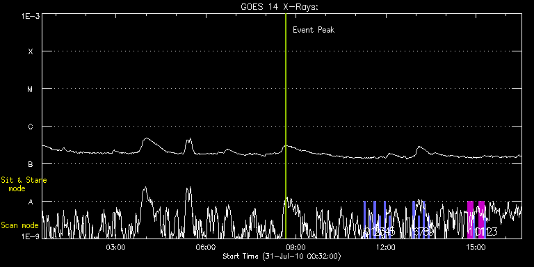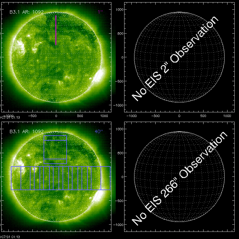 EIS Observation timeline overlay to GOES-Xray curve Code 1" 2" 40" 266" EIS Observations list for this event: STUDY ACRONYM ID DATE OBSERVED DESCRIPTION NOAA# TARGET 0 PRY_slot_contextLITE | 18538 | 2010/07/31 11:16:13 | SOT irradiance scans (east-west) | | Active Region TIMELINE ID DATE OBSERVED FITS FILE XCEN (+W/-E) YCEN (+N/-S) DUR ----------------------------------------------------------------------------------------------------------------- 18538 | 2010/07/31 11:16:13.000 | eis_l0_20100731_111613.fits.gz | -9884.72 | -9963.20 | 2m57s 1 PRY_slot_contextLITE | 18539 | 2010/07/31 11:26:42 | SOT irradiance scans (east-west) | 1092 | Active Region TIMELINE ID DATE OBSERVED FITS FILE XCEN (+W/-E) YCEN (+N/-S) DUR ----------------------------------------------------------------------------------------------------------------- 18539 | 2010/07/31 11:26:42.000 | eis_l0_20100731_112642.fits.gz | -699.12 | -33.56 | 2m57s 2 PRY_slot_contextLITE | 18540 | 2010/07/31 11:36:13 | SOT irradiance scans (east-west) | 1092 | Active Region TIMELINE ID DATE OBSERVED FITS FILE XCEN (+W/-E) YCEN (+N/-S) DUR ----------------------------------------------------------------------------------------------------------------- 18540 | 2010/07/31 11:36:13.000 | eis_l0_20100731_113613.fits.gz | -500.13 | -33.48 | 2m57s 3 PRY_slot_contextLITE | 18541 | 2010/07/31 11:46:13 | SOT irradiance scans (east-west) | 1092 | Active Region TIMELINE ID DATE OBSERVED FITS FILE XCEN (+W/-E) YCEN (+N/-S) DUR ----------------------------------------------------------------------------------------------------------------- 18541 | 2010/07/31 11:46:13.000 | eis_l0_20100731_114613.fits.gz | -300.98 | -33.56 | 2m57s 4 PRY_slot_contextLITE | 18542 | 2010/07/31 11:56:13 | SOT irradiance scans (east-west) | | Active Region TIMELINE ID DATE OBSERVED FITS FILE XCEN (+W/-E) YCEN (+N/-S) DUR ----------------------------------------------------------------------------------------------------------------- 18542 | 2010/07/31 11:56:13.000 | eis_l0_20100731_115613.fits.gz | -102.30 | -33.56 | 2m57s 5 PRY_slot_contextLITE | 18543 | 2010/07/31 12:06:13 | SOT irradiance scans (east-west) | | Active Region TIMELINE ID DATE OBSERVED FITS FILE XCEN (+W/-E) YCEN (+N/-S) DUR ----------------------------------------------------------------------------------------------------------------- 18543 | 2010/07/31 12:06:13.000 | eis_l0_20100731_120613.fits.gz | 96.76 | -33.48 | 2m57s 6 PRY_slot_contextLITE | 18544 | 2010/07/31 12:54:13 | SOT irradiance scans (east-west) | | Active Region TIMELINE ID DATE OBSERVED FITS FILE XCEN (+W/-E) YCEN (+N/-S) DUR ----------------------------------------------------------------------------------------------------------------- 18544 | 2010/07/31 12:54:13.000 | eis_l0_20100731_125413.fits.gz | 295.68 | -33.56 | 2m57s 7 PRY_slot_contextLITE | 18545 | 2010/07/31 13:04:14 | SOT irradiance scans (east-west) | | Active Region TIMELINE ID DATE OBSERVED FITS FILE XCEN (+W/-E) YCEN (+N/-S) DUR ----------------------------------------------------------------------------------------------------------------- 18545 | 2010/07/31 13:04:14.000 | eis_l0_20100731_130414.fits.gz | 494.98 | -33.64 | 2m56s 8 PRY_slot_contextLITE | 18546 | 2010/07/31 13:14:13 | SOT irradiance scans (east-west) | | Active Region TIMELINE ID DATE OBSERVED FITS FILE XCEN (+W/-E) YCEN (+N/-S) DUR ----------------------------------------------------------------------------------------------------------------- 18546 | 2010/07/31 13:14:13.000 | eis_l0_20100731_131413.fits.gz | 693.66 | -33.41 | 2m57s 9 PRY_slot_contextLITE | 18547 | 2010/07/31 13:24:13 | SOT irradiance scans (east-west) | | Active Region TIMELINE ID DATE OBSERVED FITS FILE XCEN (+W/-E) YCEN (+N/-S) DUR ----------------------------------------------------------------------------------------------------------------- 18547 | 2010/07/31 13:24:13.000 | eis_l0_20100731_132413.fits.gz | 892.72 | -33.56 | 2m56s 10 SK_DEEP_5x512_SLIT1 | 18549 | 2010/07/31 14:43:50 | SOT irradiance scans (north-south) | | Quiet Sun TIMELINE ID DATE OBSERVED FITS FILE XCEN (+W/-E) YCEN (+N/-S) DUR ----------------------------------------------------------------------------------------------------------------- 18549 | 2010/07/31 14:43:50.000 | eis_l0_20100731_144350.fits.gz | -5.12 | 511.50 | 10m8s 11 PRY_slot_contextLITE | 18552 | 2010/07/31 14:54:23 | SOT irradiance scans N-S | | Active Region TIMELINE ID DATE OBSERVED FITS FILE XCEN (+W/-E) YCEN (+N/-S) DUR ----------------------------------------------------------------------------------------------------------------- 18552 | 2010/07/31 14:54:23.000 | eis_l0_20100731_145423.fits.gz | -20.27 | 511.42 | 2m57s 12 SK_DEEP_5x512_SLIT1 | 18550 | 2010/07/31 15:06:20 | SOT irradiance scans (north-south) | | Quiet Sun TIMELINE ID DATE OBSERVED FITS FILE XCEN (+W/-E) YCEN (+N/-S) DUR ----------------------------------------------------------------------------------------------------------------- 18550 | 2010/07/31 15:06:20.000 | eis_l0_20100731_150620.fits.gz | -5.12 | 611.61 | 10m8s 13 PRY_slot_contextLITE | 18553 | 2010/07/31 15:16:53 | SOT irradiance scans N-S | | Active Region TIMELINE ID DATE OBSERVED FITS FILE XCEN (+W/-E) YCEN (+N/-S) DUR ----------------------------------------------------------------------------------------------------------------- 18553 | 2010/07/31 15:16:53.000 | eis_l0_20100731_151653.fits.gz | -20.34 | 611.53 | 2m57s : Check study information : Download file : View thumbnails For this event, also check for: