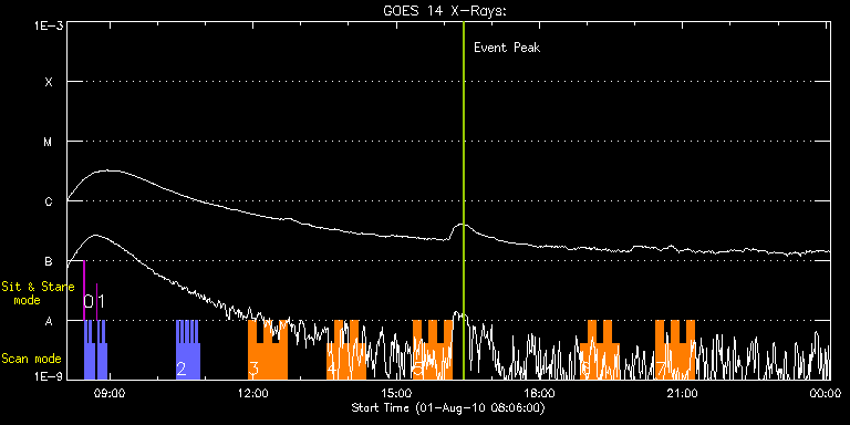 EIS Observation timeline overlay to GOES-Xray curve Code 1" 2" 40" 266" EIS Observations list for this event: STUDY ACRONYM ID DATE OBSERVED DESCRIPTION NOAA# TARGET 0 Alignment_modify_v2 | 18560 | 2010/08/01 08:26:49 | Co-alignment study East limb | | Quiet Sun TIMELINE ID DATE OBSERVED FITS FILE XCEN (+W/-E) YCEN (+N/-S) DUR ----------------------------------------------------------------------------------------------------------------- 18560 | 2010/08/01 08:26:49.000 | eis_l0_20100801_082649.fits.gz | -9854.52 | -9963.20 | 1m1s 18560 | 2010/08/01 08:28:15.000 | eis_l0_20100801_082815.fits.gz | -9893.96 | -9963.20 | 2m34s 18560 | 2010/08/01 08:31:22.000 | eis_l0_20100801_083122.fits.gz | -9893.96 | -9963.20 | 2m34s 18560 | 2010/08/01 08:34:30.000 | eis_l0_20100801_083430.fits.gz | -9893.96 | -9963.20 | 2m34s 18560 | 2010/08/01 08:37:37.000 | eis_l0_20100801_083737.fits.gz | -9893.96 | -9963.20 | 2m34s 1 Alignment_modify_v2 | 18561 | 2010/08/01 08:42:52 | Co-alignment study East limb | | Quiet Sun TIMELINE ID DATE OBSERVED FITS FILE XCEN (+W/-E) YCEN (+N/-S) DUR ----------------------------------------------------------------------------------------------------------------- 18561 | 2010/08/01 08:42:52.000 | eis_l0_20100801_084252.fits.gz | -9854.52 | -9963.20 | 1m 18561 | 2010/08/01 08:44:18.000 | eis_l0_20100801_084418.fits.gz | -9893.96 | -9963.20 | 2m34s 18561 | 2010/08/01 08:47:25.000 | eis_l0_20100801_084725.fits.gz | -9893.96 | -9963.20 | 2m34s 18561 | 2010/08/01 08:50:33.000 | eis_l0_20100801_085033.fits.gz | -9893.96 | -9963.20 | 2m34s 18561 | 2010/08/01 08:53:40.000 | eis_l0_20100801_085340.fits.gz | -9893.96 | -9963.20 | 2m34s 2 PRY_slot_contextLITE | 18572 | 2010/08/01 10:23:27 | Active region slot context | 1092 | Active Region TIMELINE ID DATE OBSERVED FITS FILE XCEN (+W/-E) YCEN (+N/-S) DUR ----------------------------------------------------------------------------------------------------------------- 18572 | 2010/08/01 10:23:27.000 | eis_l0_20100801_102327.fits.gz | -440.03 | 98.76 | 2m56s 18572 | 2010/08/01 10:26:27.000 | eis_l0_20100801_102627.fits.gz | -439.64 | 98.53 | 2m57s 18572 | 2010/08/01 10:29:27.000 | eis_l0_20100801_102927.fits.gz | -439.26 | 98.61 | 2m57s 18572 | 2010/08/01 10:32:27.000 | eis_l0_20100801_103227.fits.gz | -438.79 | 98.69 | 2m57s 18572 | 2010/08/01 10:35:27.000 | eis_l0_20100801_103527.fits.gz | -438.48 | 98.53 | 2m57s 18572 | 2010/08/01 10:38:27.000 | eis_l0_20100801_103827.fits.gz | -438.10 | 98.38 | 2m57s 18572 | 2010/08/01 10:41:28.000 | eis_l0_20100801_104128.fits.gz | -437.79 | 98.61 | 2m56s 18572 | 2010/08/01 10:44:27.000 | eis_l0_20100801_104427.fits.gz | -437.33 | 98.53 | 2m57s 18572 | 2010/08/01 10:47:27.000 | eis_l0_20100801_104727.fits.gz | -436.94 | 98.45 | 2m57s 18572 | 2010/08/01 10:50:27.000 | eis_l0_20100801_105027.fits.gz | -436.55 | 98.61 | 2m56s 3 madj_ar | 18579 | 2010/08/01 11:54:34 | Active region studies | | Active Region TIMELINE ID DATE OBSERVED FITS FILE XCEN (+W/-E) YCEN (+N/-S) DUR ----------------------------------------------------------------------------------------------------------------- 18579 | 2010/08/01 11:54:34.000 | eis_l0_20100801_115434.fits.gz | -413.16 | 98.07 | 9m41s 18579 | 2010/08/01 12:04:18.000 | eis_l0_20100801_120418.fits.gz | -411.85 | 97.91 | 9m42s 18579 | 2010/08/01 12:14:03.000 | eis_l0_20100801_121403.fits.gz | -410.54 | 97.76 | 9m42s 18579 | 2010/08/01 12:23:48.000 | eis_l0_20100801_122348.fits.gz | -409.30 | 97.84 | 9m42s 18579 | 2010/08/01 12:33:34.000 | eis_l0_20100801_123334.fits.gz | -407.91 | 97.60 | 9m42s 4 madj_ar | 18580 | 2010/08/01 13:32:27 | Active region studies | | Active Region TIMELINE ID DATE OBSERVED FITS FILE XCEN (+W/-E) YCEN (+N/-S) DUR ----------------------------------------------------------------------------------------------------------------- 18580 | 2010/08/01 13:32:27.000 | eis_l0_20100801_133227.fits.gz | -399.95 | 97.30 | 9m41s 18580 | 2010/08/01 13:42:11.000 | eis_l0_20100801_134211.fits.gz | -398.64 | 97.14 | 9m43s 18580 | 2010/08/01 13:51:57.000 | eis_l0_20100801_135157.fits.gz | -397.33 | 96.99 | 9m41s 18580 | 2010/08/01 14:01:41.000 | eis_l0_20100801_140141.fits.gz | -396.09 | 97.14 | 9m42s 18580 | 2010/08/01 14:11:27.000 | eis_l0_20100801_141127.fits.gz | -394.70 | 97.06 | 9m41s 5 madj_ar | 18581 | 2010/08/01 15:21:12 | Active region studies | | Active Region TIMELINE ID DATE OBSERVED FITS FILE XCEN (+W/-E) YCEN (+N/-S) DUR ----------------------------------------------------------------------------------------------------------------- 18581 | 2010/08/01 15:21:12.000 | eis_l0_20100801_152112.fits.gz | -385.20 | 96.60 | 9m41s 18581 | 2010/08/01 15:30:56.000 | eis_l0_20100801_153056.fits.gz | -383.89 | 96.52 | 9m43s 18581 | 2010/08/01 15:40:42.000 | eis_l0_20100801_154042.fits.gz | -382.65 | 96.52 | 9m41s 18581 | 2010/08/01 15:50:26.000 | eis_l0_20100801_155026.fits.gz | -381.18 | 96.21 | 9m42s 18581 | 2010/08/01 16:00:11.000 | eis_l0_20100801_160011.fits.gz | -379.95 | 96.29 | 9m42s 6 madj_ar | 18582 | 2010/08/01 18:51:42 | Active region studies | 1092 | Active Region TIMELINE ID DATE OBSERVED FITS FILE XCEN (+W/-E) YCEN (+N/-S) DUR ----------------------------------------------------------------------------------------------------------------- 18582 | 2010/08/01 18:51:42.000 | eis_l0_20100801_185142.fits.gz | -356.39 | 95.21 | 9m42s 18582 | 2010/08/01 19:01:26.000 | eis_l0_20100801_190126.fits.gz | -355.07 | 95.06 | 9m42s 18582 | 2010/08/01 19:11:11.000 | eis_l0_20100801_191111.fits.gz | -353.61 | 94.90 | 9m42s 18582 | 2010/08/01 19:20:56.000 | eis_l0_20100801_192056.fits.gz | -352.21 | 94.82 | 9m42s 18582 | 2010/08/01 19:30:41.000 | eis_l0_20100801_193041.fits.gz | -350.98 | 94.75 | 9m42s 7 madj_ar | 18583 | 2010/08/01 20:26:25 | Active region studies | 1092 | Active Region TIMELINE ID DATE OBSERVED FITS FILE XCEN (+W/-E) YCEN (+N/-S) DUR -----------------------------------------------------------------------------------------------------------------