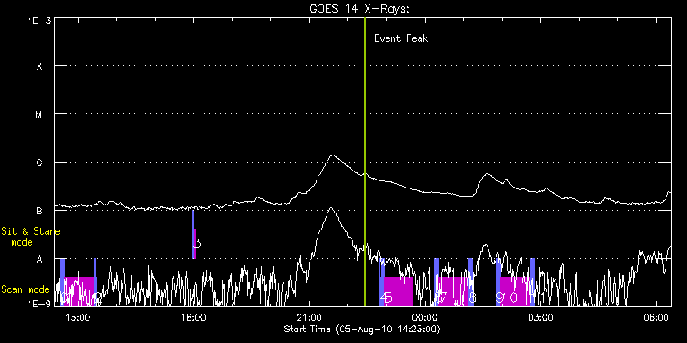 EIS Observation timeline overlay to GOES-Xray curve Code 1" 2" 40" 266" EIS Observations list for this event: STUDY ACRONYM ID DATE OBSERVED DESCRIPTION NOAA# TARGET 0 js2_decon_slot_sc_LT | 18632 | 2010/08/05 14:32:14 | EIS Slot Deconvolution Study (1 of 2) | 1092 | Active Region TIMELINE ID DATE OBSERVED FITS FILE XCEN (+W/-E) YCEN (+N/-S) DUR ----------------------------------------------------------------------------------------------------------------- 18632 | 2010/08/05 14:32:14.000 | eis_l0_20100805_143214.fits.gz | 215.26 | 163.54 | 1m23s 18632 | 2010/08/05 14:33:40.000 | eis_l0_20100805_143340.fits.gz | 215.49 | 163.54 | 1m23s 18632 | 2010/08/05 14:35:07.000 | eis_l0_20100805_143507.fits.gz | 215.73 | 163.54 | 1m22s 18632 | 2010/08/05 14:36:33.000 | eis_l0_20100805_143633.fits.gz | 215.80 | 163.54 | 1m23s 18632 | 2010/08/05 14:38:00.000 | eis_l0_20100805_143800.fits.gz | 216.03 | 163.54 | 1m22s 1 js2_decon_ref_vel_LT | 18633 | 2010/08/05 14:39:34 | EIS Slot Deconvolution Study (2 of 2) | 1092 | Active Region TIMELINE ID DATE OBSERVED FITS FILE XCEN (+W/-E) YCEN (+N/-S) DUR ----------------------------------------------------------------------------------------------------------------- 18633 | 2010/08/05 14:39:34.000 | eis_l0_20100805_143934.fits.gz | 229.74 | 163.62 | 45m7s 2 js2_decon_slot_sc_LT | 18634 | 2010/08/05 15:25:06 | EIS Slot Deconvolution Study (1 of 2) | 1092 | Active Region TIMELINE ID DATE OBSERVED FITS FILE XCEN (+W/-E) YCEN (+N/-S) DUR ----------------------------------------------------------------------------------------------------------------- 18634 | 2010/08/05 15:25:06.000 | eis_l0_20100805_152506.fits.gz | 214.88 | 163.78 | 1m23s 18634 | 2010/08/05 15:26:33.000 | eis_l0_20100805_152633.fits.gz | 215.04 | 163.93 | 1m22s 3 SYNOP005_A | 18650 | 2010/08/05 17:59:14 | | | Quiet Sun TIMELINE ID DATE OBSERVED FITS FILE XCEN (+W/-E) YCEN (+N/-S) DUR ----------------------------------------------------------------------------------------------------------------- 18650 | 2010/08/05 17:59:14.000 | eis_l0_20100805_175914.fits.gz | -19.60 | -0.65 | 1m30s 18650 | 2010/08/05 18:00:55.000 | eis_l0_20100805_180055.fits.gz | -0.02 | -0.58 | 1m30s 4 js2_decon_slot_sc_LT | 18640 | 2010/08/05 22:49:04 | EIS Slot Deconvolution Study (1 of 2) | 1092 | Active Region TIMELINE ID DATE OBSERVED FITS FILE XCEN (+W/-E) YCEN (+N/-S) DUR ----------------------------------------------------------------------------------------------------------------- 18640 | 2010/08/05 22:49:04.000 | eis_l0_20100805_224904.fits.gz | 280.13 | 166.94 | 32s 18640 | 2010/08/05 22:51:21.000 | eis_l0_20100805_225121.fits.gz | 280.44 | 167.10 | 32s 18640 | 2010/08/05 22:51:56.000 | eis_l0_20100805_225156.fits.gz | 280.44 | 167.02 | 1m23s 18640 | 2010/08/05 22:53:23.000 | eis_l0_20100805_225323.fits.gz | 280.60 | 167.10 | 1m23s 18640 | 2010/08/05 22:54:49.000 | eis_l0_20100805_225449.fits.gz | 280.83 | 167.18 | 1m23s 5 js2_decon_ref_vel_LT | 18641 | 2010/08/05 22:56:24 | EIS Slot Deconvolution Study (2 of 2) | 1092 | Active Region TIMELINE ID DATE OBSERVED FITS FILE XCEN (+W/-E) YCEN (+N/-S) DUR ----------------------------------------------------------------------------------------------------------------- 18641 | 2010/08/05 22:56:24.000 | eis_l0_20100805_225624.fits.gz | 294.54 | 167.18 | 45m6s 6 js2_decon_slot_sc_LT | 18643 | 2010/08/06 00:14:34 | EIS Slot Deconvolution Study (1 of 2) | | Active Region TIMELINE ID DATE OBSERVED FITS FILE XCEN (+W/-E) YCEN (+N/-S) DUR ----------------------------------------------------------------------------------------------------------------- 18643 | 2010/08/06 00:14:34.000 | eis_l0_20100806_001434.fits.gz | 291.95 | 167.79 | 1m23s 18643 | 2010/08/06 00:16:00.000 | eis_l0_20100806_001600.fits.gz | 292.25 | 167.64 | 1m23s 18643 | 2010/08/06 00:17:27.000 | eis_l0_20100806_001727.fits.gz | 292.33 | 167.72 | 1m23s 18643 | 2010/08/06 00:18:54.000 | eis_l0_20100806_001854.fits.gz | 292.56 | 167.87 | 1m22s 18643 | 2010/08/06 00:20:20.000 | eis_l0_20100806_002020.fits.gz | 292.72 | 167.79 | 1m23s 7 js2_decon_ref_vel_LT | 18644 | 2010/08/06 00:21:54 | EIS Slot Deconvolution Study (2 of 2) | | Active Region TIMELINE ID DATE OBSERVED FITS FILE XCEN (+W/-E) YCEN (+N/-S) DUR ----------------------------------------------------------------------------------------------------------------- 18644 | 2010/08/06 00:21:54.000 | eis_l0_20100806_002154.fits.gz | 306.68 | 167.72 | 45m7s 8 js2_decon_slot_sc_LT | 18645 | 2010/08/06 01:07:27 | EIS Slot Deconvolution Study (1 of 2) | | Active Region TIMELINE ID DATE OBSERVED FITS FILE XCEN (+W/-E) YCEN (+N/-S) DUR ----------------------------------------------------------------------------------------------------------------- 18645 | 2010/08/06 01:07:27.000 | eis_l0_20100806_010727.fits.gz | 291.93 | 168.18 | 1m23s 18645 | 2010/08/06 01:08:53.000 | eis_l0_20100806_010853.fits.gz | 292.16 | 168.18 | 1m23s 18645 | 2010/08/06 01:10:20.000 | eis_l0_20100806_011020.fits.gz | 292.39 | 168.10 | 1m22s 18645 | 2010/08/06 01:11:46.000 | eis_l0_20100806_011146.fits.gz | 292.47 | 168.18 | 1m23s 18645 | 2010/08/06 01:13:12.000 | eis_l0_20100806_011312.fits.gz | 292.54 | 168.18 | 1m23s 18645 | 2010/08/06 01:14:39.000 | eis_l0_20100806_011439.fits.gz | 292.78 | 168.18 | 1m23s 9 js2_decon_slot_sc_LT | 18646 | 2010/08/06 01:50:14 | EIS Slot Deconvolution Study (1 of 2) | | Active Region TIMELINE ID DATE OBSERVED FITS FILE XCEN (+W/-E) YCEN (+N/-S) DUR ----------------------------------------------------------------------------------------------------------------- 18646 | 2010/08/06 01:50:14.000 | eis_l0_20100806_015014.fits.gz | 303.17 | 169.57 | 1m22s 18646 | 2010/08/06 01:51:40.000 | eis_l0_20100806_015140.fits.gz | 303.48 | 169.49 | 1m23s 18646 | 2010/08/06 01:53:06.000 | eis_l0_20100806_015306.fits.gz | 303.63 | 169.57 | 1m23s 18646 | 2010/08/06 01:54:33.000 | eis_l0_20100806_015433.fits.gz | 303.86 | 169.57 | 1m23s 18646 | 2010/08/06 01:55:59.000 | eis_l0_20100