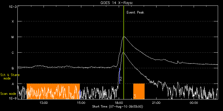 EIS Observation timeline overlay to GOES-Xray curve Code 1" 2" 40" 266" EIS Observations list for this event: STUDY ACRONYM ID DATE OBSERVED DESCRIPTION NOAA# TARGET 0 YKK_EqCHab_01W | 18652 | 2010/08/07 10:39:27 | Solar Wind Source Regions During Solar | | Coronal Hole TIMELINE ID DATE OBSERVED FITS FILE XCEN (+W/-E) YCEN (+N/-S) DUR ----------------------------------------------------------------------------------------------------------------- 18652 | 2010/08/07 10:39:27.000 | eis_l0_20100807_103927.fits.gz | -0.58 | 859.65 | 4h12m47s 1 PRY_slot_context_v3 | 18653 | 2010/08/07 14:52:25 | Solar Wind Source Regions During Solar | | Active Region TIMELINE ID DATE OBSERVED FITS FILE XCEN (+W/-E) YCEN (+N/-S) DUR ----------------------------------------------------------------------------------------------------------------- 18653 | 2010/08/07 14:52:25.000 | eis_l0_20100807_145225.fits.gz | -15.25 | 859.58 | 2m57s 2 SYNOP005_A | 18654 | 2010/08/07 18:03:43 | Sensitivity monitoring during XRT syno | | Quiet Sun TIMELINE ID DATE OBSERVED FITS FILE XCEN (+W/-E) YCEN (+N/-S) DUR ----------------------------------------------------------------------------------------------------------------- 18654 | 2010/08/07 18:03:43.000 | eis_l0_20100807_180343.fits.gz | -19.60 | -0.58 | 1m31s 3 GDZ_300x360_S2S3_30S | 18657 | 2010/08/07 19:09:27 | HOP 160: Long-term evolution of AR fro | 1095 | Active Region TIMELINE ID DATE OBSERVED FITS FILE XCEN (+W/-E) YCEN (+N/-S) DUR ----------------------------------------------------------------------------------------------------------------- 18657 | 2010/08/07 19:09:27.000 | eis_l0_20100807_190927.fits.gz | -304.03 | -399.25 | 53m18s : Check study information : Download file : View thumbnails For this event, also check for: