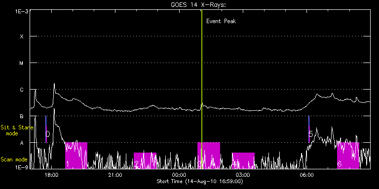 EIS Observation timeline overlay to GOES-Xray curve Code 1" 2" 40" 266" EIS Observations list for this event: STUDY ACRONYM ID DATE OBSERVED DESCRIPTION NOAA# TARGET 0 SYNOP005_A | 18741 | 2010/08/14 17:42:53 | | | Quiet Sun TIMELINE ID DATE OBSERVED FITS FILE XCEN (+W/-E) YCEN (+N/-S) DUR ----------------------------------------------------------------------------------------------------------------- 18741 | 2010/08/14 17:42:53.000 | eis_l0_20100814_174253.fits.gz | 70.78 | -0.42 | 1m30s 18741 | 2010/08/14 17:44:34.000 | eis_l0_20100814_174434.fits.gz | -0.10 | -0.65 | 1m30s 1 HPW021_VEL_120x512v1 | 18737 | 2010/08/14 18:39:10 | AR1099 | 1093 | Active Region TIMELINE ID DATE OBSERVED FITS FILE XCEN (+W/-E) YCEN (+N/-S) DUR ----------------------------------------------------------------------------------------------------------------- 18737 | 2010/08/14 18:39:10.000 | eis_l0_20100814_183910.fits.gz | 735.42 | 225.84 | 1h1m53s 2 HPW021_VEL_120x512v1 | 18738 | 2010/08/14 21:53:10 | AR1099 | 1093 | Active Region TIMELINE ID DATE OBSERVED FITS FILE XCEN (+W/-E) YCEN (+N/-S) DUR ----------------------------------------------------------------------------------------------------------------- 18738 | 2010/08/14 21:53:10.000 | eis_l0_20100814_215310.fits.gz | 751.33 | 228.31 | 1h1m53s 3 HPW021_VEL_120x512v1 | 18739 | 2010/08/15 00:52:41 | AR1099 | 1099 | Active Region TIMELINE ID DATE OBSERVED FITS FILE XCEN (+W/-E) YCEN (+N/-S) DUR ----------------------------------------------------------------------------------------------------------------- 18739 | 2010/08/15 00:52:41.000 | eis_l0_20100815_005241.fits.gz | 765.31 | 230.86 | 1h1m53s 4 HPW021_VEL_120x512v1 | 18740 | 2010/08/15 02:29:46 | AR1099 | 1099 | Active Region TIMELINE ID DATE OBSERVED FITS FILE XCEN (+W/-E) YCEN (+N/-S) DUR ----------------------------------------------------------------------------------------------------------------- 18740 | 2010/08/15 02:29:46.000 | eis_l0_20100815_022946.fits.gz | 772.65 | 232.09 | 1h1m52s 5 SYNOP005_A | 18742 | 2010/08/15 06:04:25 | | | Quiet Sun TIMELINE ID DATE OBSERVED FITS FILE XCEN (+W/-E) YCEN (+N/-S) DUR ----------------------------------------------------------------------------------------------------------------- 18742 | 2010/08/15 06:04:25.000 | eis_l0_20100815_060425.fits.gz | -19.68 | -0.58 | 1m31s 18742 | 2010/08/15 06:06:07.000 | eis_l0_20100815_060607.fits.gz | -0.02 | -0.58 | 1m30s 6 HPW021_VEL_120x512v1 | 18743 | 2010/08/15 07:25:26 | AR1099 | 1093 | Active Region TIMELINE ID DATE OBSERVED FITS FILE XCEN (+W/-E) YCEN (+N/-S) DUR ----------------------------------------------------------------------------------------------------------------- 18743 | 2010/08/15 07:25:26.000 | eis_l0_20100815_072526.fits.gz | 793.74 | 236.34 | 1h1m53s : Check study information : Download file : View thumbnails For this event, also check for: