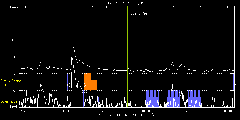 EIS Observation timeline overlay to GOES-Xray curve Code 1" 2" 40" 266" EIS Observations list for this event: STUDY ACRONYM ID DATE OBSERVED DESCRIPTION NOAA# TARGET 0 SYNOP005_A | 18745 | 2010/08/15 18:07:12 | | | Quiet Sun TIMELINE ID DATE OBSERVED FITS FILE XCEN (+W/-E) YCEN (+N/-S) DUR ----------------------------------------------------------------------------------------------------------------- 18745 | 2010/08/15 18:07:12.000 | eis_l0_20100815_180712.fits.gz | -19.52 | -0.73 | 1m30s 18745 | 2010/08/15 18:08:53.000 | eis_l0_20100815_180853.fits.gz | -0.10 | -0.50 | 1m30s 1 PRY_slot_context_v3 | 18746 | 2010/08/15 19:15:33 | | | Active Region TIMELINE ID DATE OBSERVED FITS FILE XCEN (+W/-E) YCEN (+N/-S) DUR ----------------------------------------------------------------------------------------------------------------- 18746 | 2010/08/15 19:15:33.000 | eis_l0_20100815_191533.fits.gz | -44.99 | 352.91 | 2m56s 2 nanoflare_sas_v1 | 18747 | 2010/08/15 19:20:02 | ar1097 | | Active Region TIMELINE ID DATE OBSERVED FITS FILE XCEN (+W/-E) YCEN (+N/-S) DUR ----------------------------------------------------------------------------------------------------------------- 18747 | 2010/08/15 19:20:02.000 | eis_l0_20100815_192002.fits.gz | -29.63 | 352.83 | 29m3s 18747 | 2010/08/15 19:49:09.000 | eis_l0_20100815_194909.fits.gz | -25.92 | 352.98 | 29m3s 3 PRY_slot_context_v3 | 18749 | 2010/08/15 20:22:19 | | | Active Region TIMELINE ID DATE OBSERVED FITS FILE XCEN (+W/-E) YCEN (+N/-S) DUR ----------------------------------------------------------------------------------------------------------------- 18749 | 2010/08/15 20:22:19.000 | eis_l0_20100815_202219.fits.gz | -36.41 | 352.91 | 2m57s 4 PRY_slot_context_v3 | 18751 | 2010/08/15 23:56:12 | AR1099 | 1093 | Active Region TIMELINE ID DATE OBSERVED FITS FILE XCEN (+W/-E) YCEN (+N/-S) DUR ----------------------------------------------------------------------------------------------------------------- 18751 | 2010/08/15 23:56:12.000 | eis_l0_20100815_235612.fits.gz | 836.72 | 251.17 | 2m57s 18751 | 2010/08/15 23:59:13.000 | eis_l0_20100815_235913.fits.gz | 836.87 | 251.25 | 2m57s 18751 | 2010/08/16 00:02:14.000 | eis_l0_20100816_000214.fits.gz | 836.95 | 251.25 | 2m57s 18751 | 2010/08/16 00:05:15.000 | eis_l0_20100816_000515.fits.gz | 837.18 | 251.10 | 2m56s 18751 | 2010/08/16 00:08:15.000 | eis_l0_20100816_000815.fits.gz | 837.34 | 251.25 | 2m57s 18751 | 2010/08/16 00:11:16.000 | eis_l0_20100816_001116.fits.gz | 837.49 | 251.33 | 2m57s 18751 | 2010/08/16 00:14:17.000 | eis_l0_20100816_001417.fits.gz | 837.65 | 251.33 | 2m56s 18751 | 2010/08/16 00:17:17.000 | eis_l0_20100816_001717.fits.gz | 837.80 | 251.40 | 2m56s 18751 | 2010/08/16 00:20:17.000 | eis_l0_20100816_002017.fits.gz | 837.88 | 251.40 | 2m57s 18751 | 2010/08/16 00:23:18.000 | eis_l0_20100816_002318.fits.gz | 838.11 | 251.48 | 2m56s 18751 | 2010/08/16 00:26:18.000 | eis_l0_20100816_002618.fits.gz | 838.19 | 251.48 | 2m57s 18751 | 2010/08/16 00:29:19.000 | eis_l0_20100816_002919.fits.gz | 838.26 | 251.64 | 2m56s 18751 | 2010/08/16 00:32:19.000 | eis_l0_20100816_003219.fits.gz | 838.34 | 251.56 | 2m56s 18751 | 2010/08/16 00:35:19.000 | eis_l0_20100816_003519.fits.gz | 838.57 | 251.79 | 2m56s 18751 | 2010/08/16 00:38:19.000 | eis_l0_20100816_003819.fits.gz | 838.73 | 251.64 | 2m56s 18751 | 2010/08/16 00:41:19.000 | eis_l0_20100816_004119.fits.gz | 838.80 | 251.79 | 2m56s 18751 | 2010/08/16 00:44:19.000 | eis_l0_20100816_004419.fits.gz | 838.96 | 251.87 | 2m56s 18751 | 2010/08/16 00:47:19.000 | eis_l0_20100816_004719.fits.gz | 839.19 | 251.95 | 2m56s 18751 | 2010/08/16 00:50:19.000 | eis_l0_20100816_005019.fits.gz | 839.27 | 251.79 | 2m56s 18751 | 2010/08/16 00:53:19.000 | eis_l0_20100816_005319.fits.gz | 839.50 | 251.95 | 2m56s 5 PRY_slot_context_v3 | 18752 | 2010/08/16 01:28:38 | AR1099 | 1093 | Active Region TIMELINE ID DATE OBSERVED FITS FILE XCEN (+W/-E) YCEN (+N/-S) DUR ----------------------------------------------------------------------------------------------------------------- 18752 | 2010/08/16 01:28:38.000 | eis_l0_20100816_012838.fits.gz | 841.12 | 252.49 | 2m56s 18752 | 2010/08/16 01:31:38.000 | eis_l0_20100816_013138.fits.gz | 841.12 | 252.64 | 2m57s 18752 | 2010/08/16 01:34:39.000 | eis_l0_20100816_013439.fits.gz | 841.35 | 252.64 | 2m56s 18752 | 2010/08/16 01:37:40.000 | eis_l0_20100816_013740.fits.gz | 841.51 | 252.64 | 2m55s 18752 | 2010/08/16 01:40:40.000 | eis_l0_20100816_014040.fits.gz | 841.51 | 252.72 | 2m55s 18752 | 2010/08/16 01:43:40.000 | eis_l0_20100816_014340.fits.gz | 841.74 | 252.72 | 2m56s 18752 | 2010/08/16 01:46:40.000 | eis_l0_20100816_014640.fits.gz | 841.89 | 252.79 | 2m56s 18752 | 2010/08/16 01:49:41.000 | eis_l0_20100816_014941.fits.gz | 842.05 | 252.79 | 2m56s 18752 | 2010/08/16 01:52:41.000 | eis_l0_20100816_015241.fits.gz | 842.20 | 252.79 | 2m56s 18752 | 2010/08/16 01:55:41.000 | eis_l0_20100816_015541.fits.gz | 842.28 | 252.87 | 2m56s 18752 | 2010/08/16 01:58:42.000 | eis_l0_20100816_015842.fits.gz | 842.43 | 253.03 | 2m56s 18752 | 2010/08/16 02:01:42.000 | eis_l0_20100816_020142.fits.gz | 842.59 | 253.10 | 2m55s 18752 | 2010/08/16 02:04:41.000 | eis_l0_20100816_020441.fits.gz | 842.59 | 253.10 | 2m57s 18752 | 2010/08/16 02:07:42.000 | eis_l0_20100816_020742.fits.gz | 842.82 | 253.10 | 2m56s 18752 | 2010/08/16 02:10:42.000 | eis_l0_20100816_021042.fits.gz | 842.90 | 253.10 | 2m56s 18752 | 2010/08/16 02:13:42.000 | eis_l0_20100816_021342.fits.gz | 843.13 | 253.18 | 2m57s 18752 | 2010/08/16 02:16:43.000 | eis_l0_20100816_021643.fits.gz | 843.28 | 253.26 | 2m56s 18752 | 2010/08/16 02:19:43.000 | eis_l0_20100816_021943.fits.gz | 843.36 | 253.49 | 2m57s 18752 | 2010/08/16 02:22:44.000 | eis_l0_20100816_022244.fits.gz | 843.52 | 253.34 | 2m56s 18752 | 2010/08/16 02:25:44.000 | eis_l0_20100816_022544.fits.gz | 843.67 | 253.41 | 2m57s 6 PRY_slot_context_v3 | 18753 | 2010/08/16 03:06:06 | AR1099 | 1093 | Active Region TIMELINE ID DATE OBSERVED FITS FILE XCEN