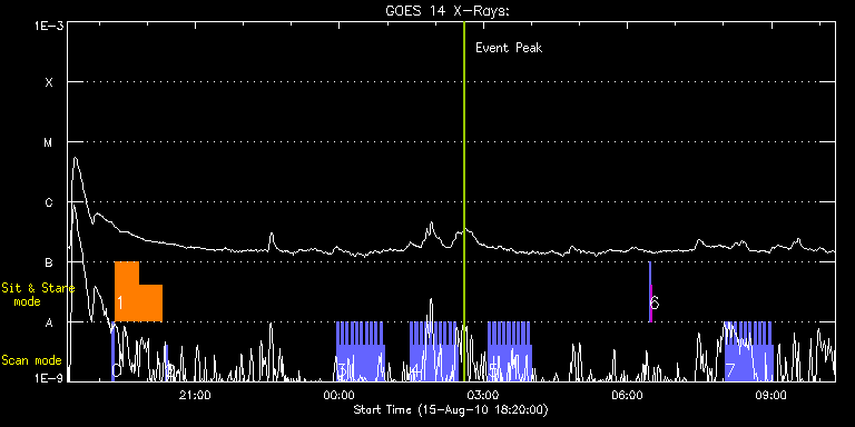 EIS Observation timeline overlay to GOES-Xray curve Code 1" 2" 40" 266" EIS Observations list for this event: STUDY ACRONYM ID DATE OBSERVED DESCRIPTION NOAA# TARGET 0 PRY_slot_context_v3 | 18746 | 2010/08/15 19:15:33 | | | Active Region TIMELINE ID DATE OBSERVED FITS FILE XCEN (+W/-E) YCEN (+N/-S) DUR ----------------------------------------------------------------------------------------------------------------- 18746 | 2010/08/15 19:15:33.000 | eis_l0_20100815_191533.fits.gz | -44.99 | 352.91 | 2m56s 1 nanoflare_sas_v1 | 18747 | 2010/08/15 19:20:02 | ar1097 | | Active Region TIMELINE ID DATE OBSERVED FITS FILE XCEN (+W/-E) YCEN (+N/-S) DUR ----------------------------------------------------------------------------------------------------------------- 18747 | 2010/08/15 19:20:02.000 | eis_l0_20100815_192002.fits.gz | -29.63 | 352.83 | 29m3s 18747 | 2010/08/15 19:49:09.000 | eis_l0_20100815_194909.fits.gz | -25.92 | 352.98 | 29m3s 2 PRY_slot_context_v3 | 18749 | 2010/08/15 20:22:19 | | | Active Region TIMELINE ID DATE OBSERVED FITS FILE XCEN (+W/-E) YCEN (+N/-S) DUR ----------------------------------------------------------------------------------------------------------------- 18749 | 2010/08/15 20:22:19.000 | eis_l0_20100815_202219.fits.gz | -36.41 | 352.91 | 2m57s 3 PRY_slot_context_v3 | 18751 | 2010/08/15 23:56:12 | AR1099 | 1093 | Active Region TIMELINE ID DATE OBSERVED FITS FILE XCEN (+W/-E) YCEN (+N/-S) DUR ----------------------------------------------------------------------------------------------------------------- 18751 | 2010/08/15 23:56:12.000 | eis_l0_20100815_235612.fits.gz | 836.72 | 251.17 | 2m57s 18751 | 2010/08/15 23:59:13.000 | eis_l0_20100815_235913.fits.gz | 836.87 | 251.25 | 2m57s 18751 | 2010/08/16 00:02:14.000 | eis_l0_20100816_000214.fits.gz | 836.95 | 251.25 | 2m57s 18751 | 2010/08/16 00:05:15.000 | eis_l0_20100816_000515.fits.gz | 837.18 | 251.10 | 2m56s 18751 | 2010/08/16 00:08:15.000 | eis_l0_20100816_000815.fits.gz | 837.34 | 251.25 | 2m57s 18751 | 2010/08/16 00:11:16.000 | eis_l0_20100816_001116.fits.gz | 837.49 | 251.33 | 2m57s 18751 | 2010/08/16 00:14:17.000 | eis_l0_20100816_001417.fits.gz | 837.65 | 251.33 | 2m56s 18751 | 2010/08/16 00:17:17.000 | eis_l0_20100816_001717.fits.gz | 837.80 | 251.40 | 2m56s 18751 | 2010/08/16 00:20:17.000 | eis_l0_20100816_002017.fits.gz | 837.88 | 251.40 | 2m57s 18751 | 2010/08/16 00:23:18.000 | eis_l0_20100816_002318.fits.gz | 838.11 | 251.48 | 2m56s 18751 | 2010/08/16 00:26:18.000 | eis_l0_20100816_002618.fits.gz | 838.19 | 251.48 | 2m57s 18751 | 2010/08/16 00:29:19.000 | eis_l0_20100816_002919.fits.gz | 838.26 | 251.64 | 2m56s 18751 | 2010/08/16 00:32:19.000 | eis_l0_20100816_003219.fits.gz | 838.34 | 251.56 | 2m56s 18751 | 2010/08/16 00:35:19.000 | eis_l0_20100816_003519.fits.gz | 838.57 | 251.79 | 2m56s 18751 | 2010/08/16 00:38:19.000 | eis_l0_20100816_003819.fits.gz | 838.73 | 251.64 | 2m56s 18751 | 2010/08/16 00:41:19.000 | eis_l0_20100816_004119.fits.gz | 838.80 | 251.79 | 2m56s 18751 | 2010/08/16 00:44:19.000 | eis_l0_20100816_004419.fits.gz | 838.96 | 251.87 | 2m56s 18751 | 2010/08/16 00:47:19.000 | eis_l0_20100816_004719.fits.gz | 839.19 | 251.95 | 2m56s 18751 | 2010/08/16 00:50:19.000 | eis_l0_20100816_005019.fits.gz | 839.27 | 251.79 | 2m56s 18751 | 2010/08/16 00:53:19.000 | eis_l0_20100816_005319.fits.gz | 839.50 | 251.95 | 2m56s 4 PRY_slot_context_v3 | 18752 | 2010/08/16 01:28:38 | AR1099 | 1093 | Active Region TIMELINE ID DATE OBSERVED FITS FILE XCEN (+W/-E) YCEN (+N/-S) DUR ----------------------------------------------------------------------------------------------------------------- 18752 | 2010/08/16 01:28:38.000 | eis_l0_20100816_012838.fits.gz | 841.12 | 252.49 | 2m56s 18752 | 2010/08/16 01:31:38.000 | eis_l0_20100816_013138.fits.gz | 841.12 | 252.64 | 2m57s 18752 | 2010/08/16 01:34:39.000 | eis_l0_20100816_013439.fits.gz | 841.35 | 252.64 | 2m56s 18752 | 2010/08/16 01:37:40.000 | eis_l0_20100816_013740.fits.gz | 841.51 | 252.64 | 2m55s 18752 | 2010/08/16 01:40:40.000 | eis_l0_20100816_014040.fits.gz | 841.51 | 252.72 | 2m55s 18752 | 2010/08/16 01:43:40.000 | eis_l0_20100816_014340.fits.gz | 841.74 | 252.72 | 2m56s 18752 | 2010/08/16 01:46:40.000 | eis_l0_20100816_014640.fits.gz | 841.89 | 252.79 | 2m56s 18752 | 2010/08/16 01:49:41.000 | eis_l0_20100816_014941.fits.gz | 842.05 | 252.79 | 2m56s 18752 | 2010/08/16 01:52:41.000 | eis_l0_20100816_015241.fits.gz | 842.20 | 252.79 | 2m56s 18752 | 2010/08/16 01:55:41.000 | eis_l0_20100816_015541.fits.gz | 842.28 | 252.87 | 2m56s 18752 | 2010/08/16 01:58:42.000 | eis_l0_20100816_015842.fits.gz | 842.43 | 253.03 | 2m56s 18752 | 2010/08/16 02:01:42.000 | eis_l0_20100816_020142.fits.gz | 842.59 | 253.10 | 2m55s 18752 | 2010/08/16 02:04:41.000 | eis_l0_20100816_020441.fits.gz | 842.59 | 253.10 | 2m57s 18752 | 2010/08/16 02:07:42.000 | eis_l0_20100816_020742.fits.gz | 842.82 | 253.10 | 2m56s 18752 | 2010/08/16 02:10:42.000 | eis_l0_20100816_021042.fits.gz | 842.90 | 253.10 | 2m56s 18752 | 2010/08/16 02:13:42.000 | eis_l0_20100816_021342.fits.gz | 843.13 | 253.18 | 2m57s 18752 | 2010/08/16 02:16:43.000 | eis_l0_20100816_021643.fits.gz | 843.28 | 253.26 | 2m56s 18752 | 2010/08/16 02:19:43.000 | eis_l0_20100816_021943.fits.gz | 843.36 | 253.49 | 2m57s 18752 | 2010/08/16 02:22:44.000 | eis_l0_20100816_022244.fits.gz | 843.52 | 253.34 | 2m56s 18752 | 2010/08/16 02:25:44.000 | eis_l0_20100816_022544.fits.gz | 843.67 | 253.41 | 2m57s 5 PRY_slot_context_v3 | 18753 | 2010/08/16 03:06:06 | AR1099 | 1093 | Active Region TIMELINE ID DATE OBSERVED FITS FILE XCEN (+W/-E) YCEN (+N/-S) DUR ----------------------------------------------------------------------------------------------------------------- 18753 | 2010/08/16 03:06:06.000 | eis_l0_20100816_030606.fits.gz | 845.37 | 254.11 | 2m57s 18753 | 2010/08/16 03:09:07.000 | eis_l0_20100816_030907.fits.gz | 845.53 | 254.11 | 2m57s 18753 | 2010/08/16 03:12:08.000 | eis_l0_20100816_031208.fits.gz | 845.68 | 254.18 | 2m56s 18753