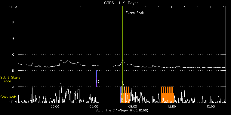 EIS Observation timeline overlay to GOES-Xray curve Code 1" 2" 40" 266" EIS Observations list for this event: STUDY ACRONYM ID DATE OBSERVED DESCRIPTION NOAA# TARGET 0 SYNOP005_A | 19154 | 2010/09/11 06:11:13 | | | Quiet Sun TIMELINE ID DATE OBSERVED FITS FILE XCEN (+W/-E) YCEN (+N/-S) DUR ----------------------------------------------------------------------------------------------------------------- 19154 | 2010/09/11 06:11:13.000 | eis_l0_20100911_061113.fits.gz | -19.60 | -0.50 | 1m30s 19154 | 2010/09/11 06:12:54.000 | eis_l0_20100911_061254.fits.gz | -0.10 | -0.50 | 1m30s 1 PRY_slot_context_v3 | 19155 | 2010/09/11 08:00:33 | HOP 132: wide-fov scan of filament/pla | | Active Region TIMELINE ID DATE OBSERVED FITS FILE XCEN (+W/-E) YCEN (+N/-S) DUR ----------------------------------------------------------------------------------------------------------------- 19155 | 2010/09/11 08:00:33.000 | eis_l0_20100911_080033.fits.gz | 79.07 | 362.26 | 2m56s 2 cam_artb_rhessi_lite | 19156 | 2010/09/11 08:03:54 | HOP 132: small-fov scan of filament/pl | | Active Region TIMELINE ID DATE OBSERVED FITS FILE XCEN (+W/-E) YCEN (+N/-S) DUR ----------------------------------------------------------------------------------------------------------------- 19156 | 2010/09/11 08:03:54.000 | eis_l0_20100911_080354.fits.gz | 137.96 | 344.26 | 4m49s 19156 | 2010/09/11 08:08:49.000 | eis_l0_20100911_080849.fits.gz | 138.50 | 344.33 | 4m49s 19156 | 2010/09/11 08:13:43.000 | eis_l0_20100911_081343.fits.gz | 139.19 | 344.26 | 4m49s 19156 | 2010/09/11 08:18:38.000 | eis_l0_20100911_081838.fits.gz | 139.73 | 344.18 | 4m49s 19156 | 2010/09/11 08:23:33.000 | eis_l0_20100911_082333.fits.gz | 140.35 | 344.26 | 4m49s 19156 | 2010/09/11 08:28:27.000 | eis_l0_20100911_082827.fits.gz | 141.05 | 344.26 | 4m49s 19156 | 2010/09/11 08:33:22.000 | eis_l0_20100911_083322.fits.gz | 141.66 | 344.33 | 4m49s 19156 | 2010/09/11 08:38:17.000 | eis_l0_20100911_083817.fits.gz | 142.28 | 344.26 | 4m49s 19156 | 2010/09/11 08:43:12.000 | eis_l0_20100911_084312.fits.gz | 142.98 | 344.33 | 4m49s 3 cam_artb_rhessi_lite | 19163 | 2010/09/11 11:10:14 | HOP132 | | Active Region TIMELINE ID DATE OBSERVED FITS FILE XCEN (+W/-E) YCEN (+N/-S) DUR ----------------------------------------------------------------------------------------------------------------- 19163 | 2010/09/11 11:10:14.000 | eis_l0_20100911_111014.fits.gz | 118.16 | 363.64 | 4m49s 19163 | 2010/09/11 11:15:09.000 | eis_l0_20100911_111509.fits.gz | 118.86 | 363.64 | 4m49s 19163 | 2010/09/11 11:20:04.000 | eis_l0_20100911_112004.fits.gz | 119.48 | 363.64 | 4m49s 19163 | 2010/09/11 11:24:58.000 | eis_l0_20100911_112458.fits.gz | 120.10 | 363.72 | 4m49s 19163 | 2010/09/11 11:29:53.000 | eis_l0_20100911_112953.fits.gz | 120.71 | 363.64 | 4m49s 19163 | 2010/09/11 11:34:48.000 | eis_l0_20100911_113448.fits.gz | 121.41 | 363.64 | 4m49s 19163 | 2010/09/11 11:39:43.000 | eis_l0_20100911_113943.fits.gz | 122.03 | 363.64 | 4m48s 19163 | 2010/09/11 11:44:37.000 | eis_l0_20100911_114437.fits.gz | 122.57 | 363.64 | 4m49s 19163 | 2010/09/11 11:49:32.000 | eis_l0_20100911_114932.fits.gz | 123.18 | 363.72 | 4m48s 19163 | 2010/09/11 11:54:26.000 | eis_l0_20100911_115426.fits.gz | 123.80 | 363.80 | 4m49s 19163 | 2010/09/11 11:59:21.000 | eis_l0_20100911_115921.fits.gz | 124.42 | 363.80 | 4m49s 19163 | 2010/09/11 12:04:16.000 | eis_l0_20100911_120416.fits.gz | 125.12 | 363.80 | 4m49s : Check study information : Download file : View thumbnails For this event, also check for: